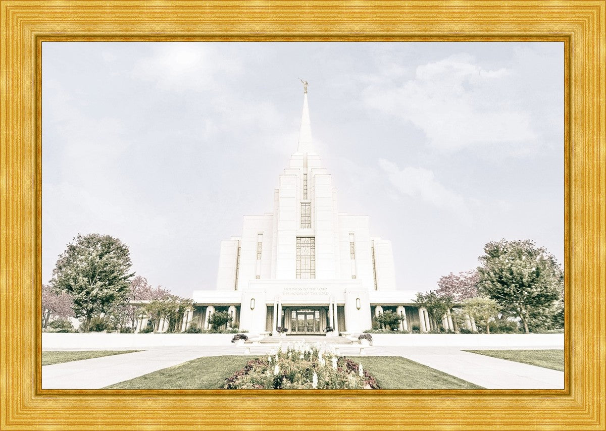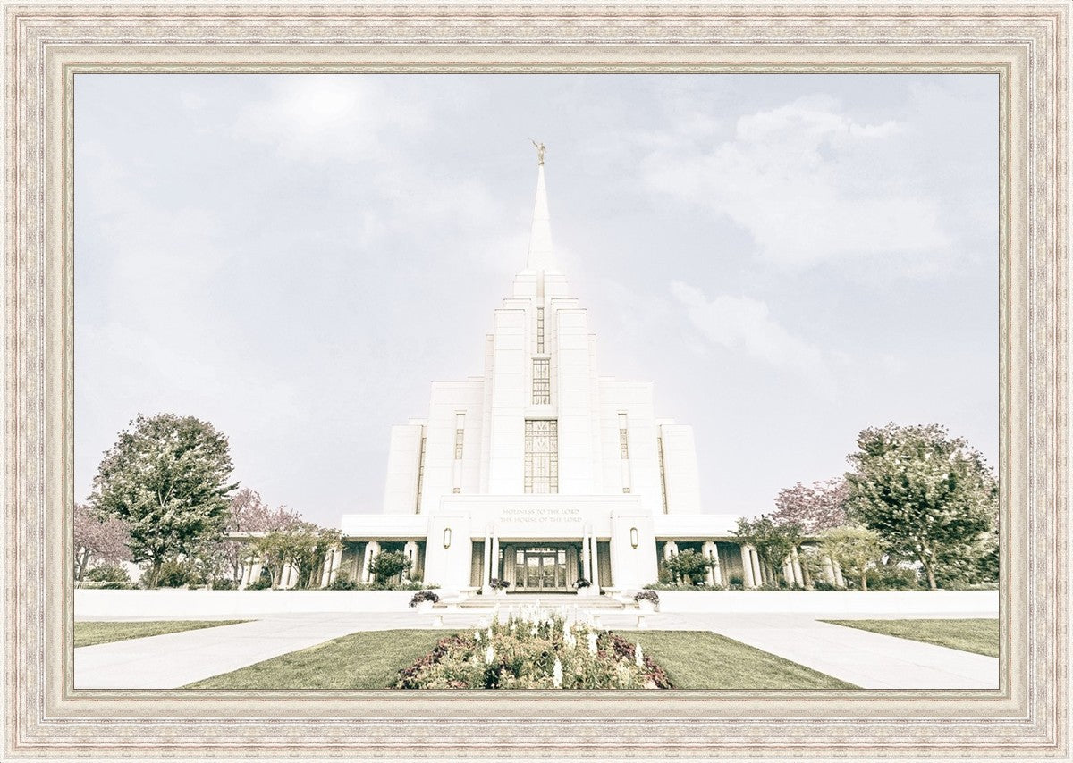 Each artistic rendition of the temple seeks to provide solitude by removing distractions while honoring its original design. Peace is found in the choice of a consistent, gentle color palette that embraces a natural, textured look and the timeless character that all great art should possess. The luminance and radiance in each image aim to infuse a heavenly ambiance into your living space.