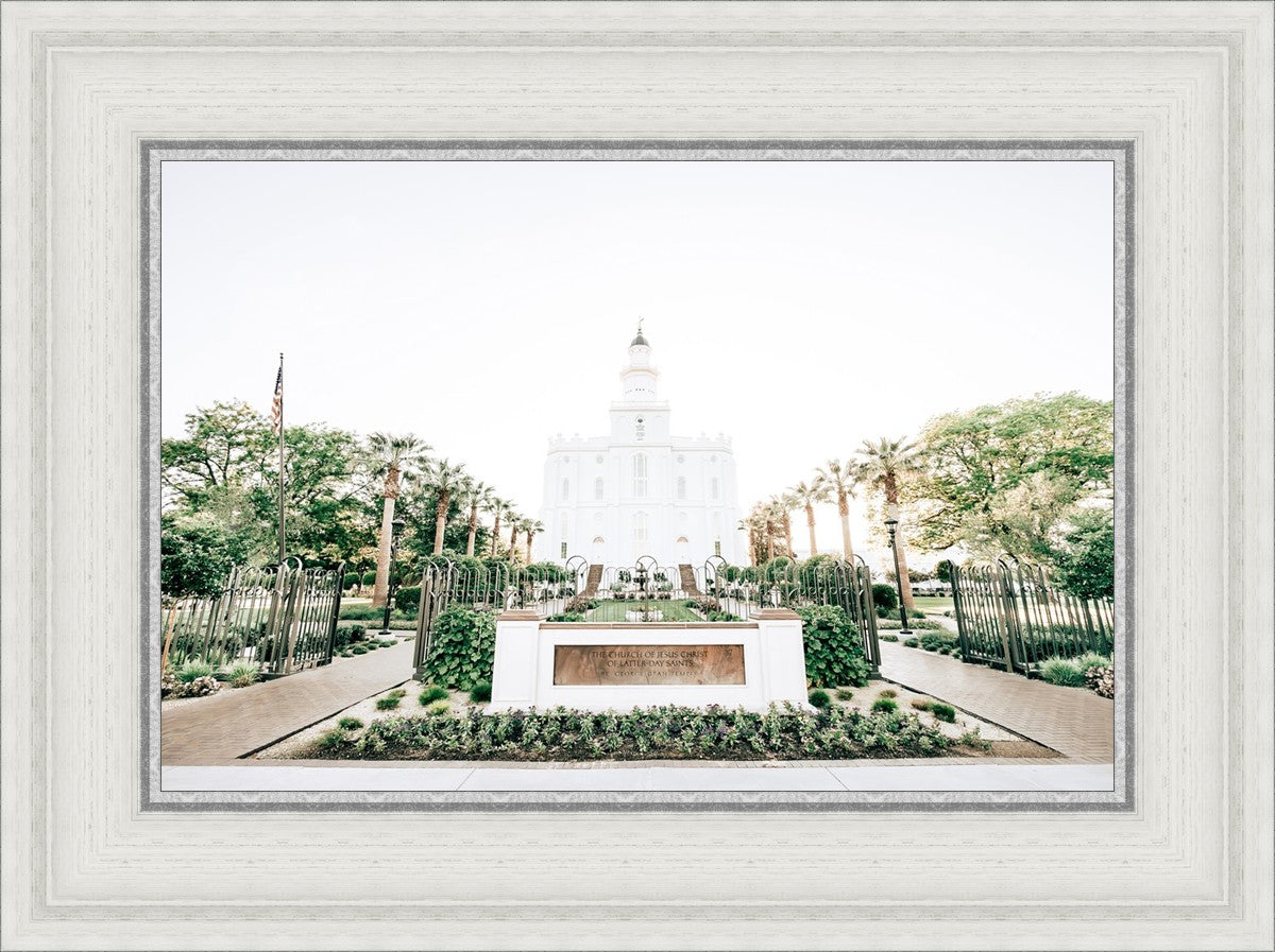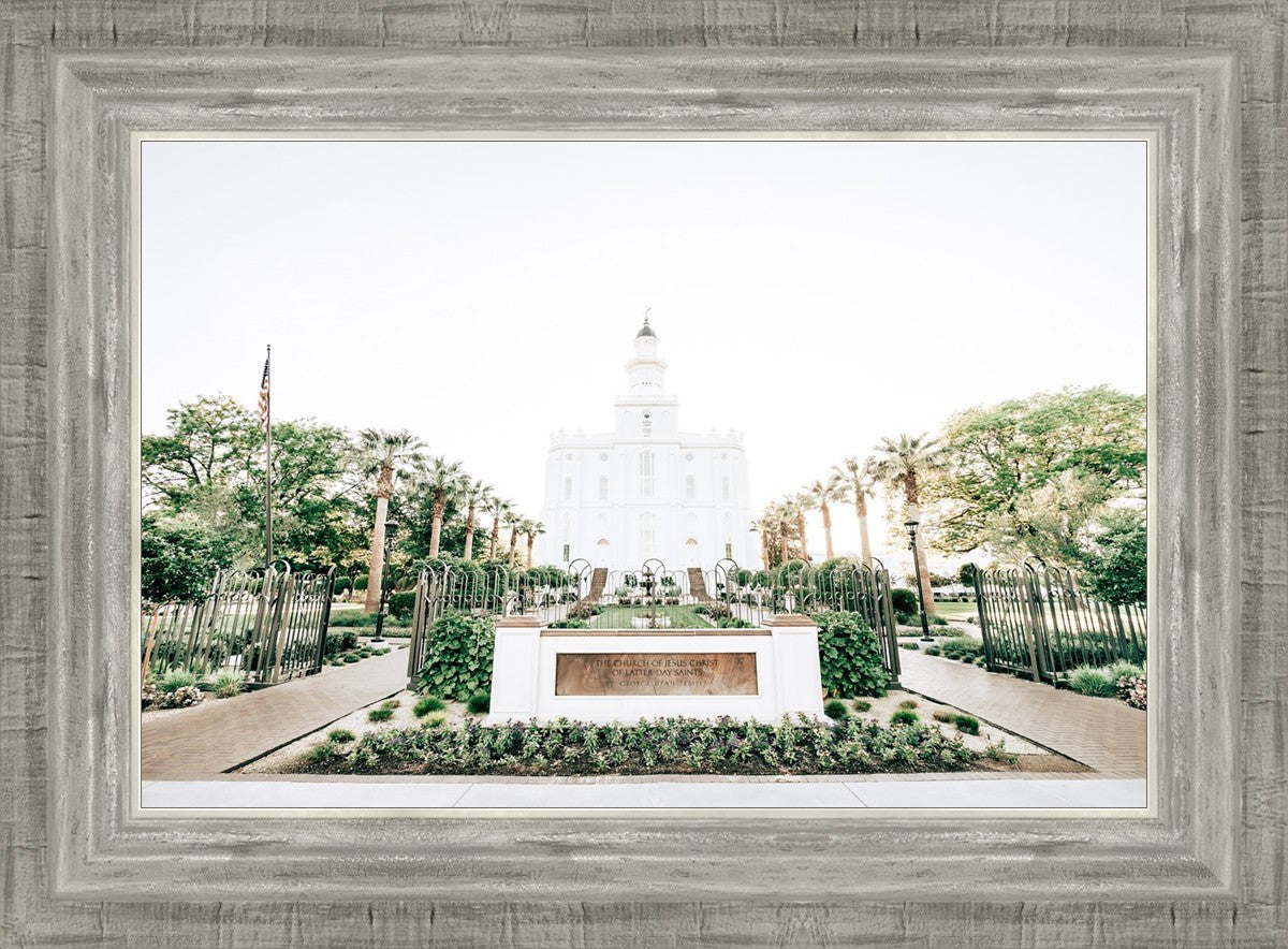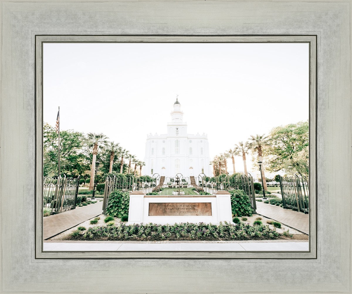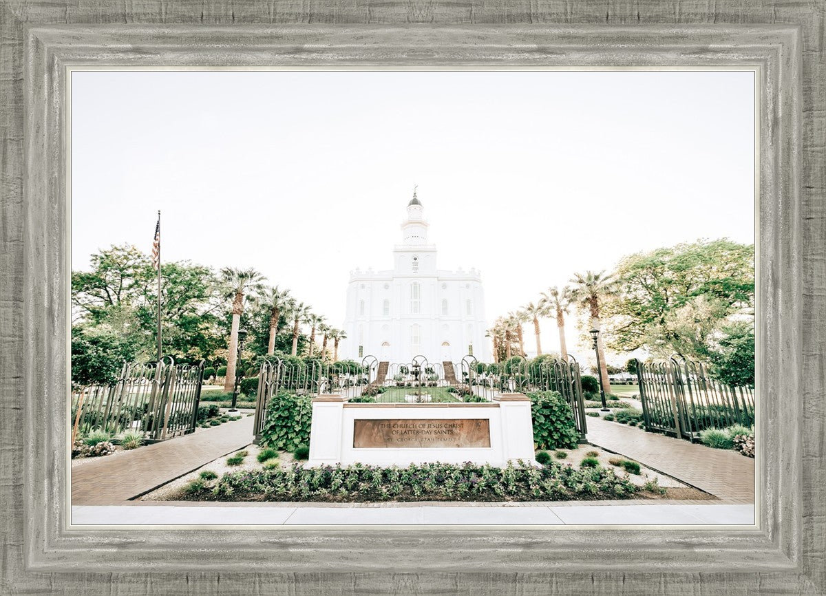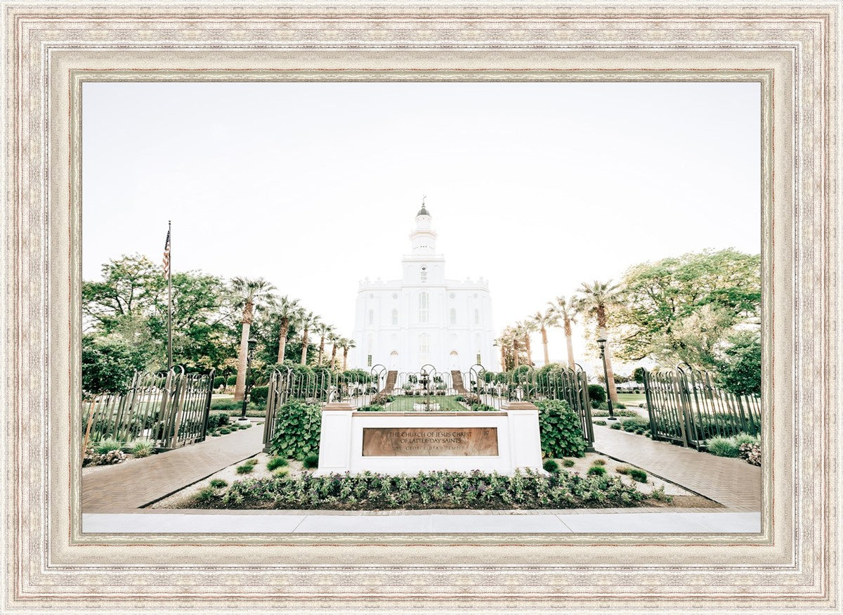 Each artistic rendition of the temple seeks to provide solitude by removing distractions while honoring its original design. Peace is found in the choice of a consistent, gentle color palette that embraces a natural, textured look and the timeless character that all great art should possess. The luminance and radiance in each image aim to infuse a heavenly ambiance into your living space.