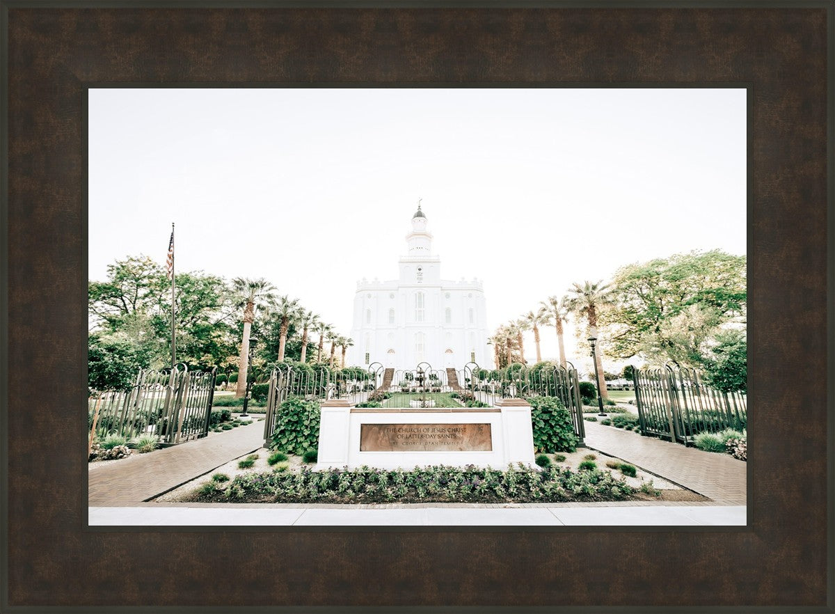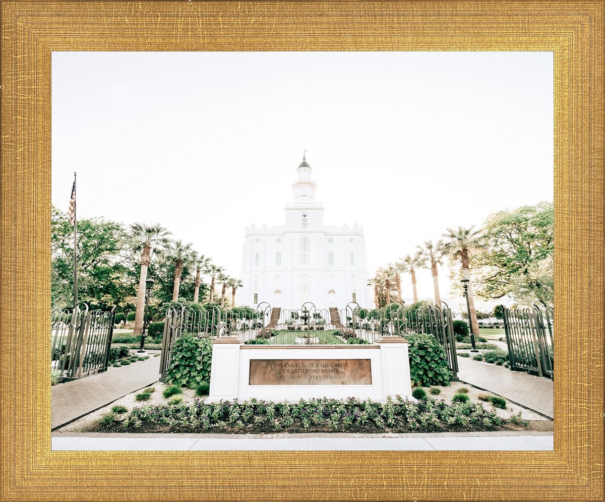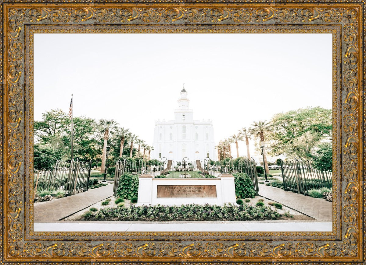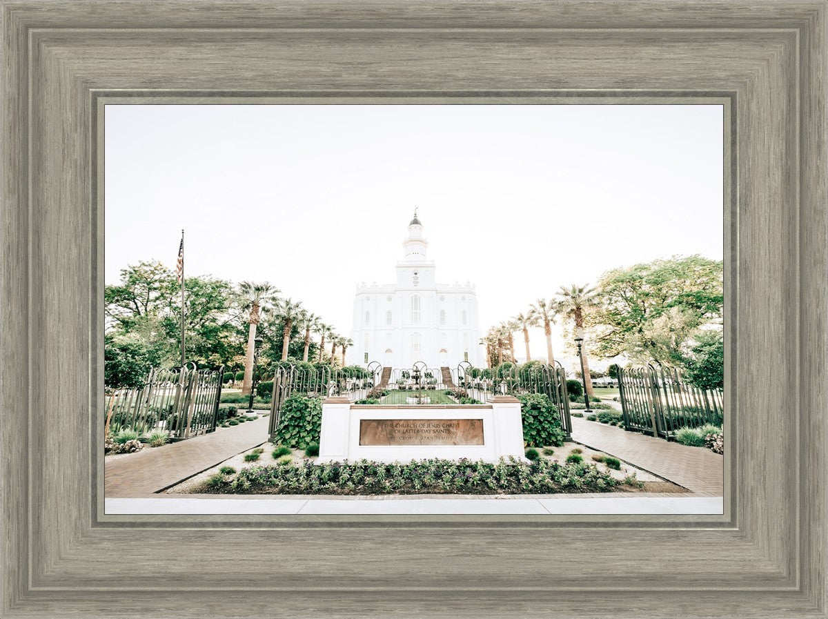 Each artistic rendition of the temple seeks to provide solitude by removing distractions while honoring its original design. Peace is found in the choice of a consistent, gentle color palette that embraces a natural, textured look and the timeless character that all great art should possess. The luminance and radiance in each image aim to infuse a heavenly ambiance into your living space.