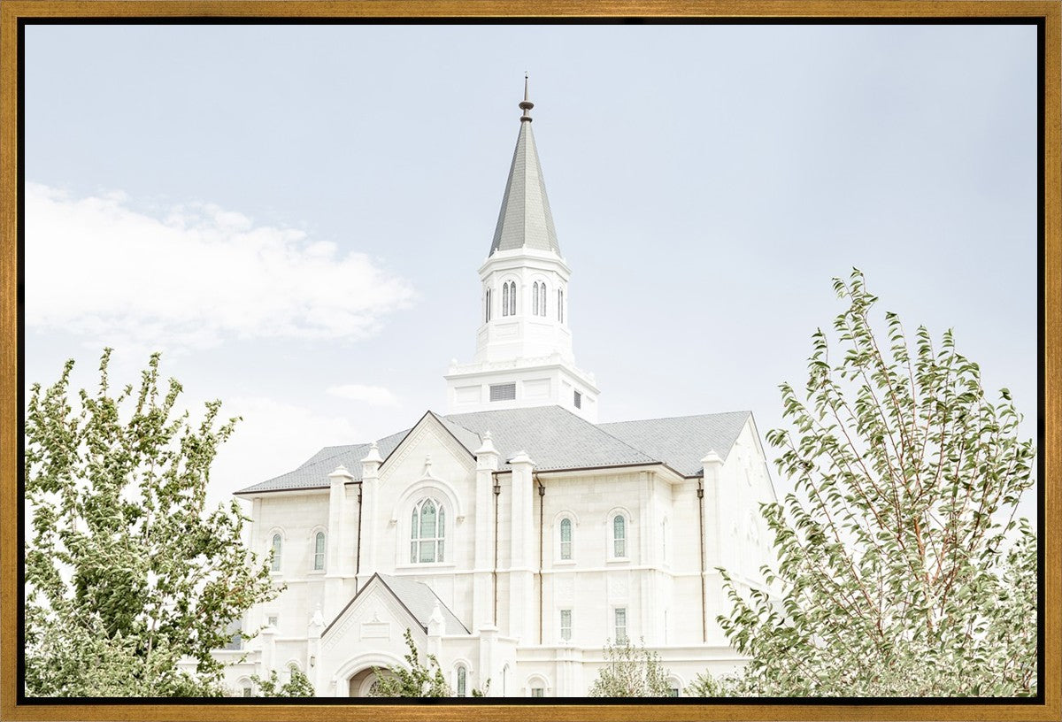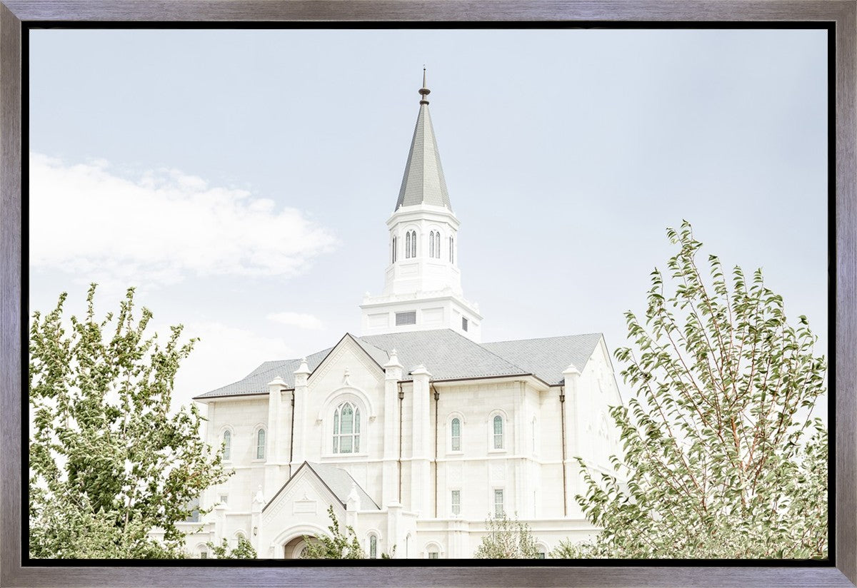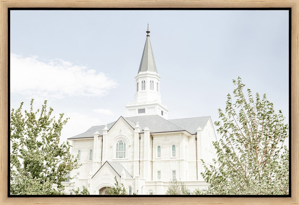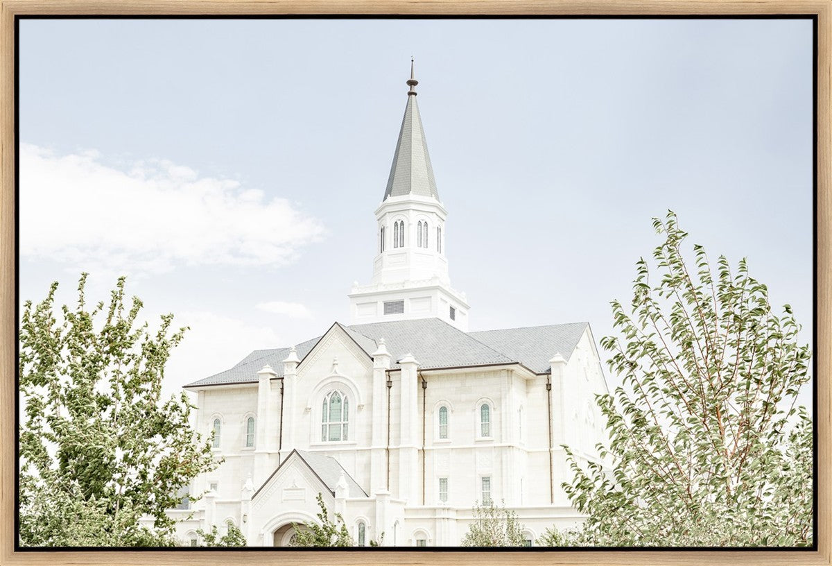 Each artistic rendition of the temple seeks to provide solitude by removing distractions while honoring its original design. Peace is found in the choice of a consistent, gentle color palette that embraces a natural, textured look and the timeless character that all great art should possess. The luminance and radiance in each image aim to infuse a heavenly ambiance into your living space.