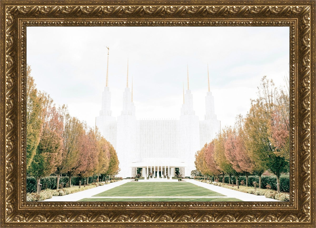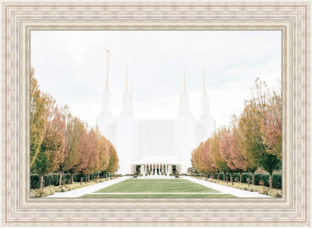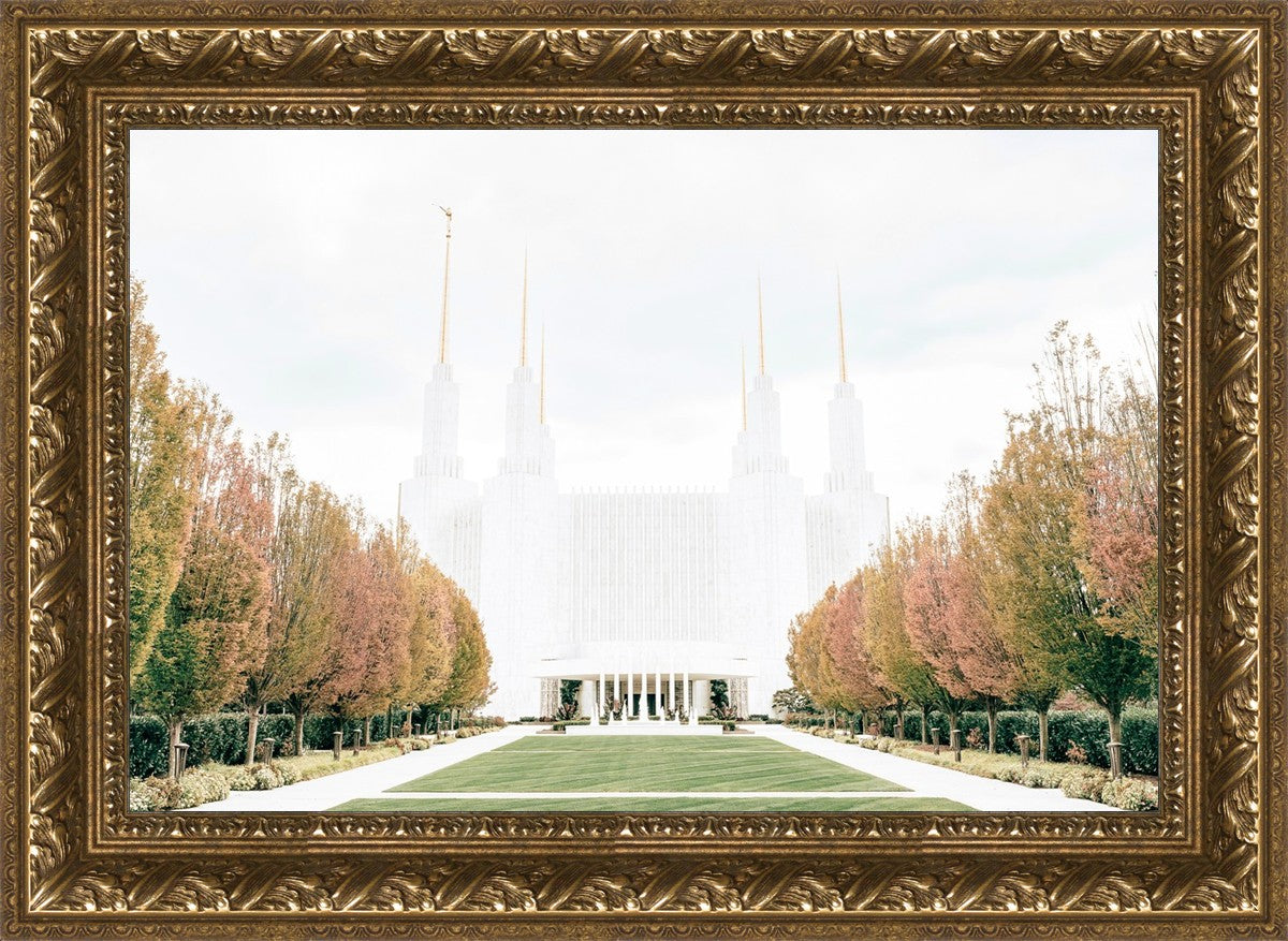 Each artistic rendition of the temple seeks to provide solitude by removing distractions while honoring its original design. Peace is found in the choice of a consistent, gentle color palette that embraces a natural, textured look and the timeless character that all great art should possess. The luminance and radiance in each image aim to infuse a heavenly ambiance into your living space.