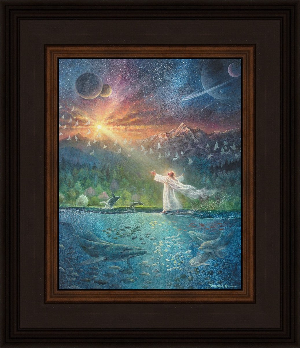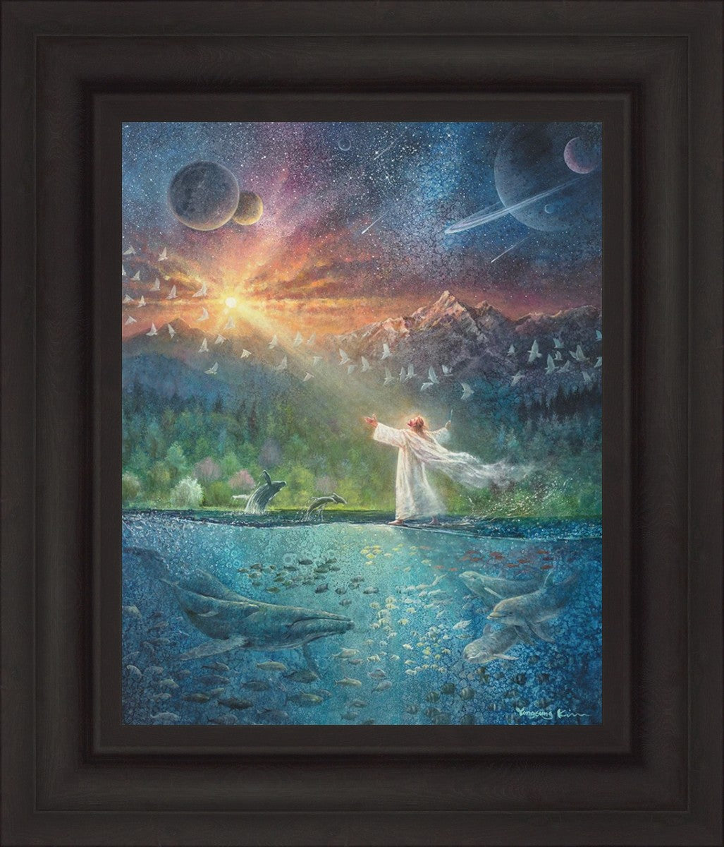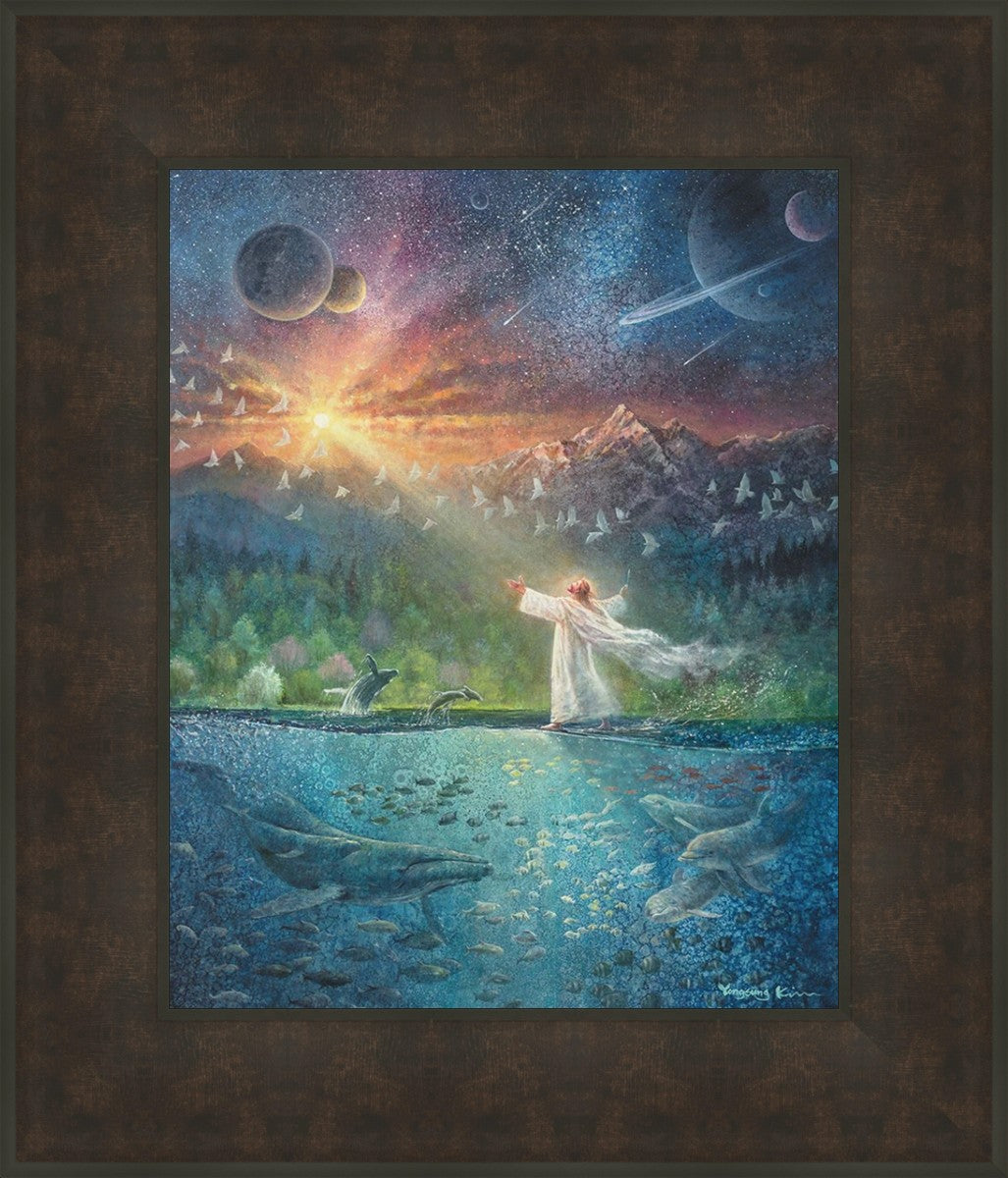 My struggle over all that time was to capture these initial emotions and vision. I wanted to show ALL creation - the sky, the sun, the moon, the Milky Way, the stars, the land, and the sea. In this, I would bring together all the creatures, all the creations of God in nature and have them praising God, according to the direction of the Creator, Jesus. This was a beautiful and majestic scene to just simply imagine.