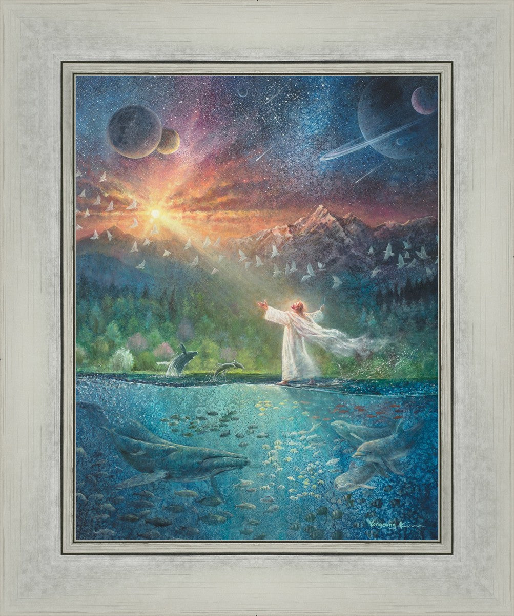 Additionally and to reemphasize, one of Yongsung Kim's most beloved topics to paint is that of Jesus walking on water. Christ reaching in the water to save Peter from drowning is one of the greatest stories in the Bible. Jesus walking on water and then reaching in the water to save His drowning disciple is a parable for us all. It's an awe inspiring example of Christ, His character and love for each of us.
