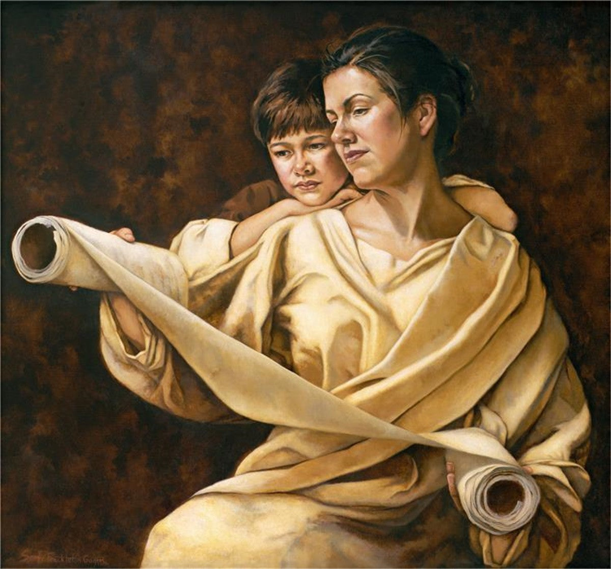 Several years ago I painted Teaching the Scriptures. The inspiration came from the scriptural account of Eunice teaching her son, Timothy, the Holy Scriptures.