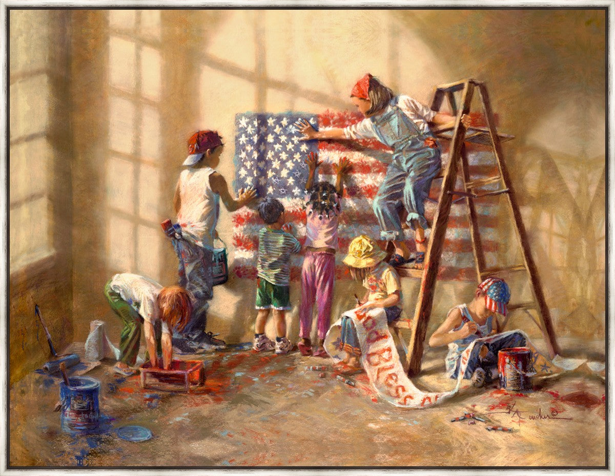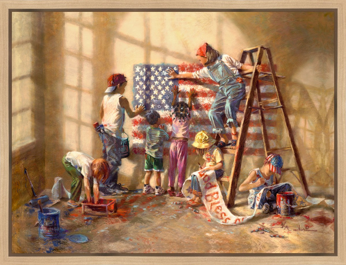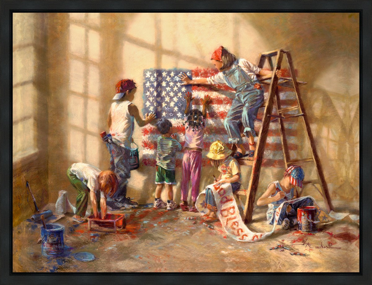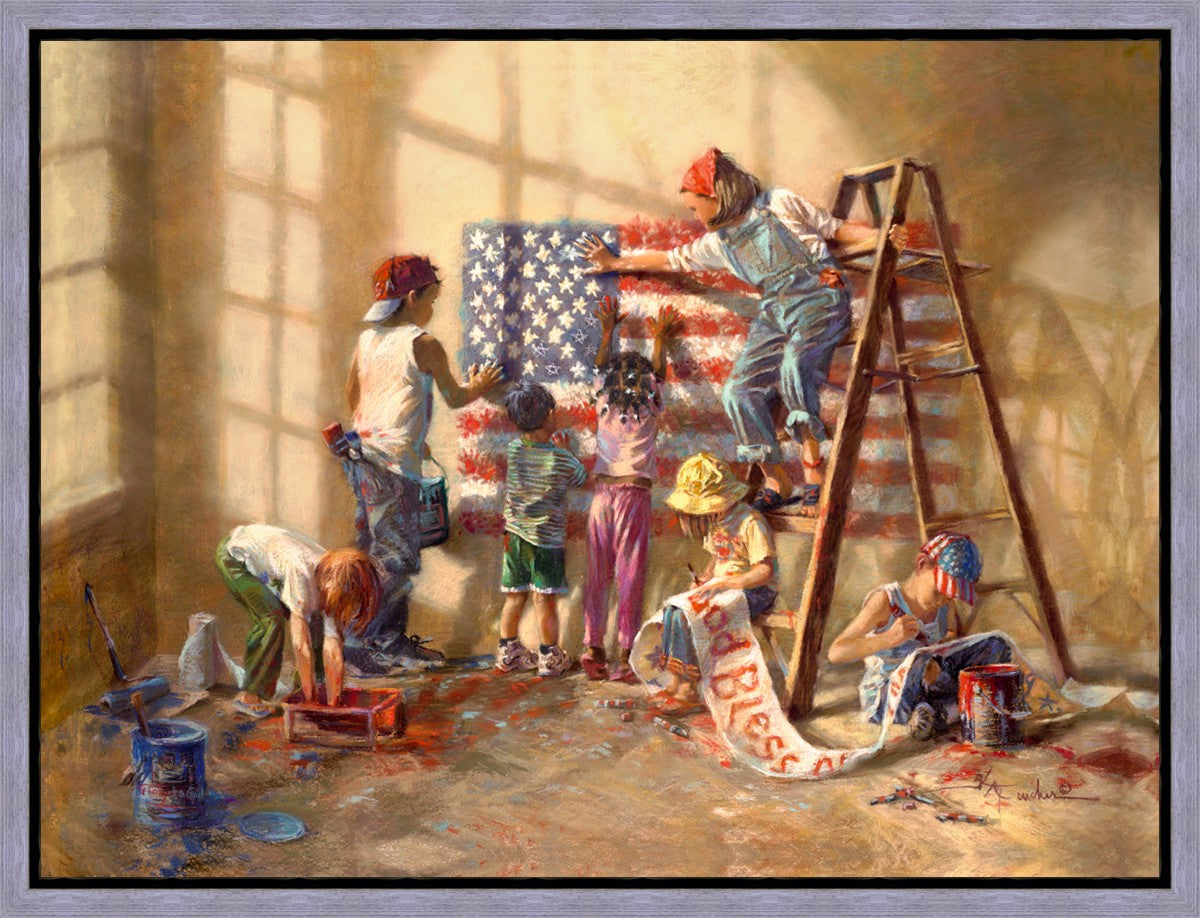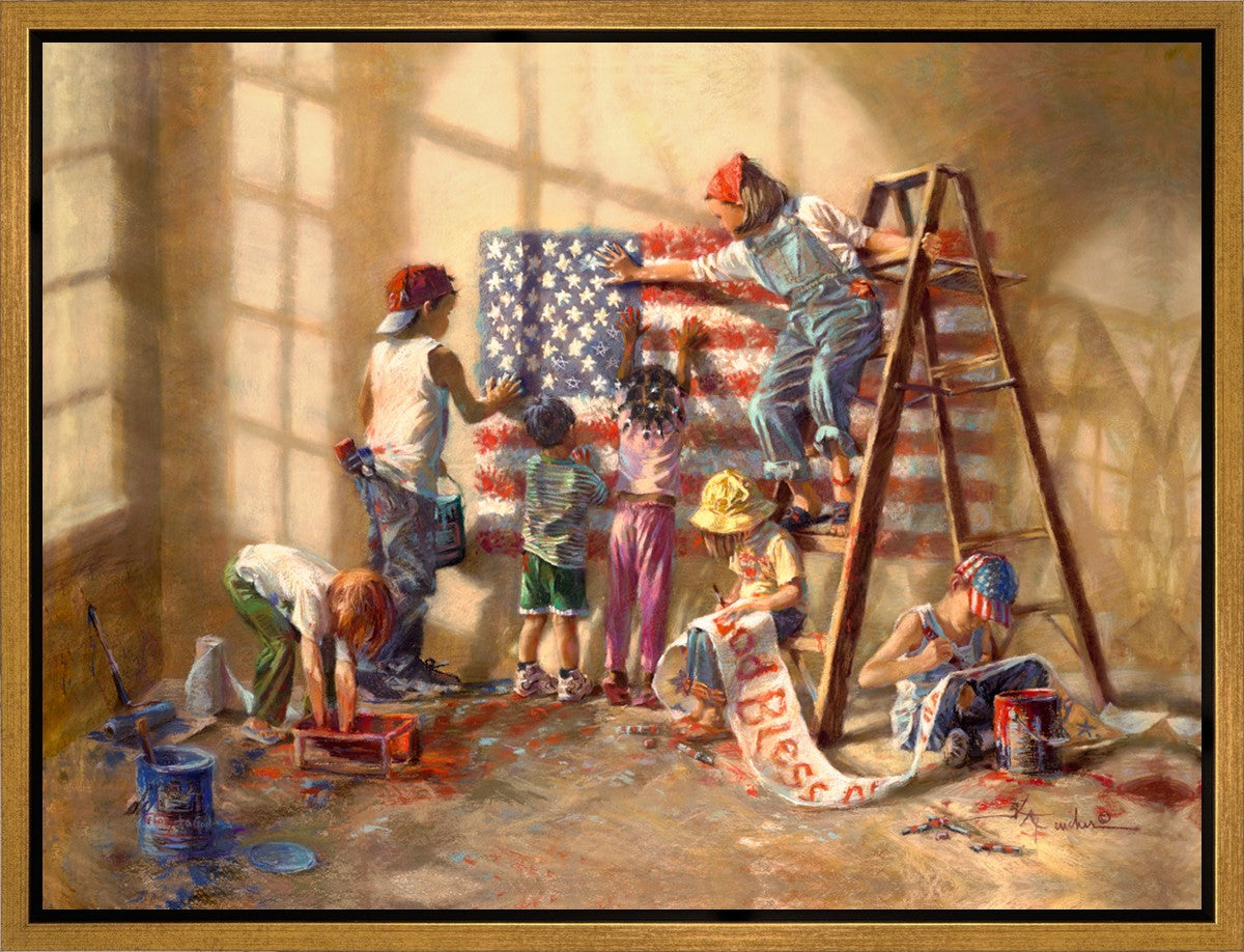 Kathryn Fincher creates meaningful artwork that moves the soul. She is renowned for her paintings of children in the style of Norman Rockwell. Classically trained, her attention to detail and lighting are the source for many international awards and collections. Kathy’s paintings of children were deemed a national treasure when she received a Grammy Award for the Visual Arts by the Save the Arts Foundation. Her painting, The Dream Keepers, was introduced in the Oval Office and later inducted into the permanent collection of the Presidential Library of G.W. Bush. Based on the painting, Fincher designed The Dream Keepers 911 Memorial, the largest children’s memorial featuring seven children restoring the American Dream by shaping the flag with their handprints.
