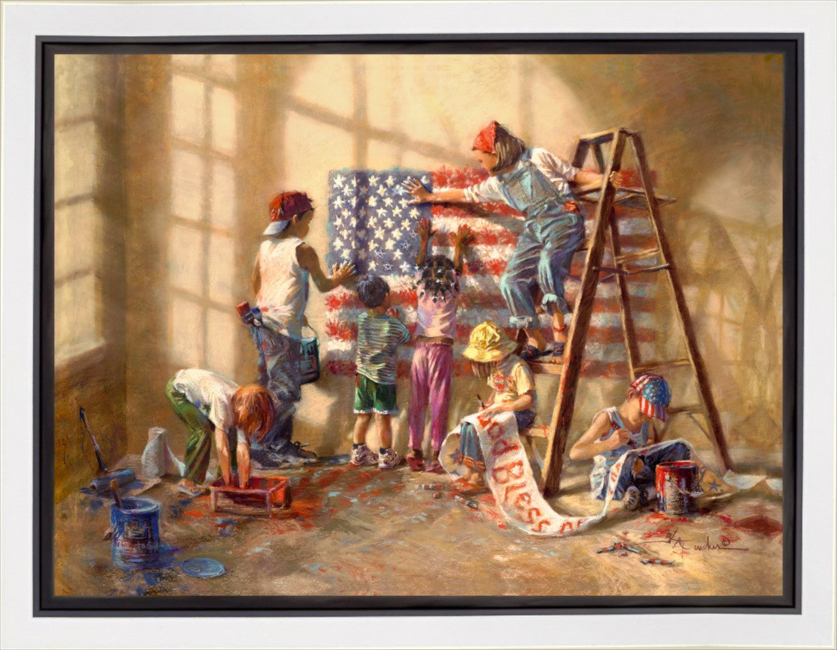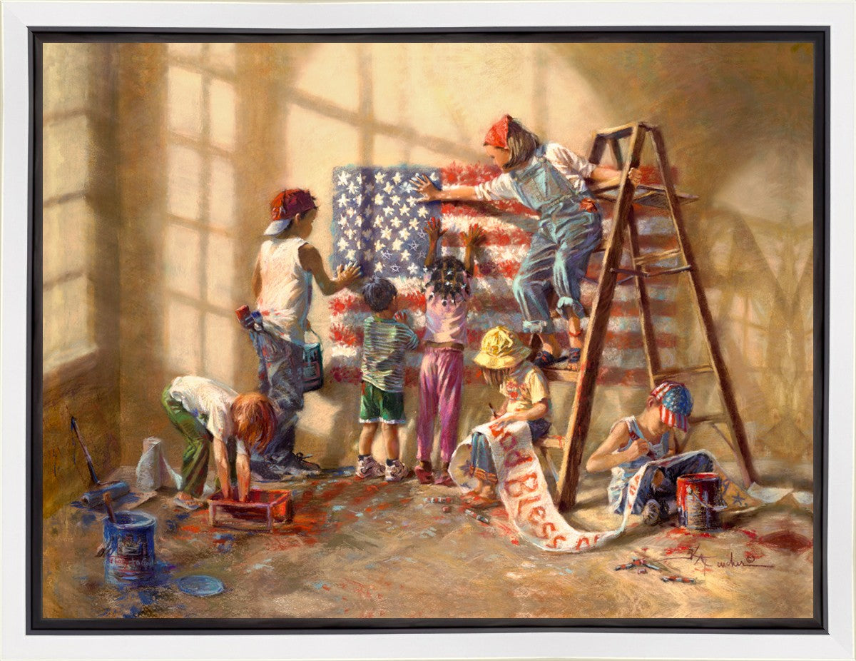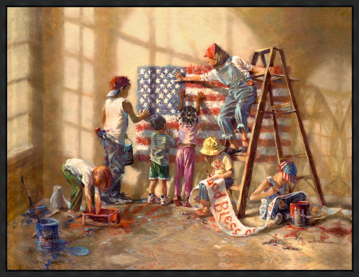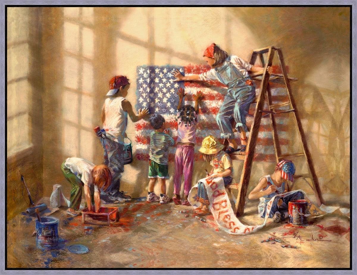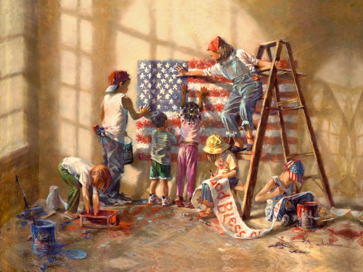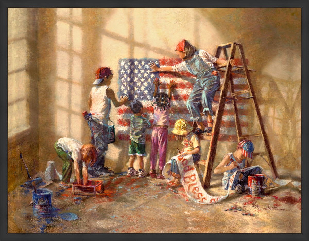 Kathryn Fincher creates meaningful artwork that moves the soul. She is renowned for her paintings of children in the style of Norman Rockwell. Classically trained, her attention to detail and lighting are the source for many international awards and collections. Kathy’s paintings of children were deemed a national treasure when she received a Grammy Award for the Visual Arts by the Save the Arts Foundation. Her painting, The Dream Keepers, was introduced in the Oval Office and later inducted into the permanent collection of the Presidential Library of G.W. Bush. Based on the painting, Fincher designed The Dream Keepers 911 Memorial, the largest children’s memorial featuring seven children restoring the American Dream by shaping the flag with their handprints.