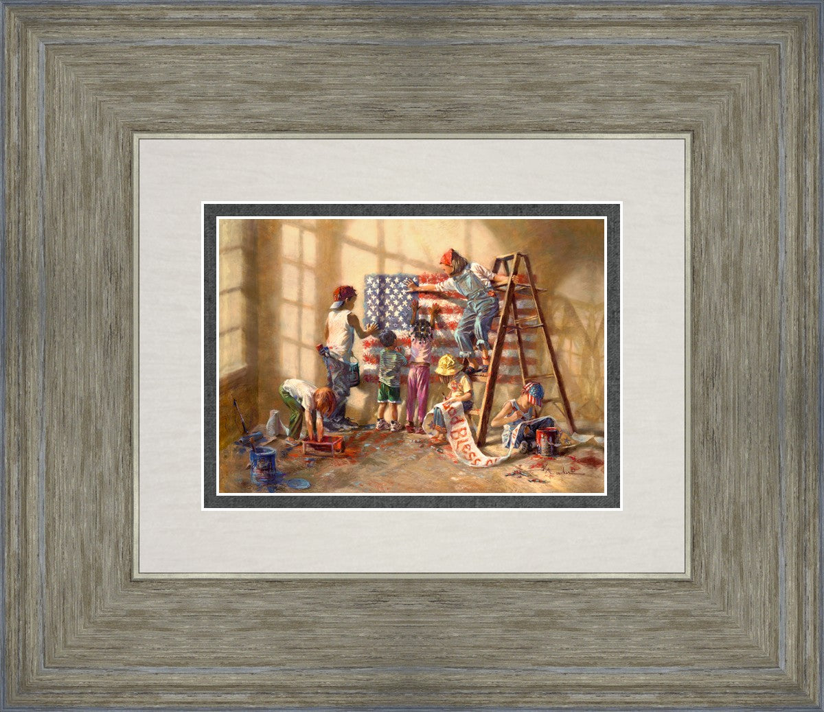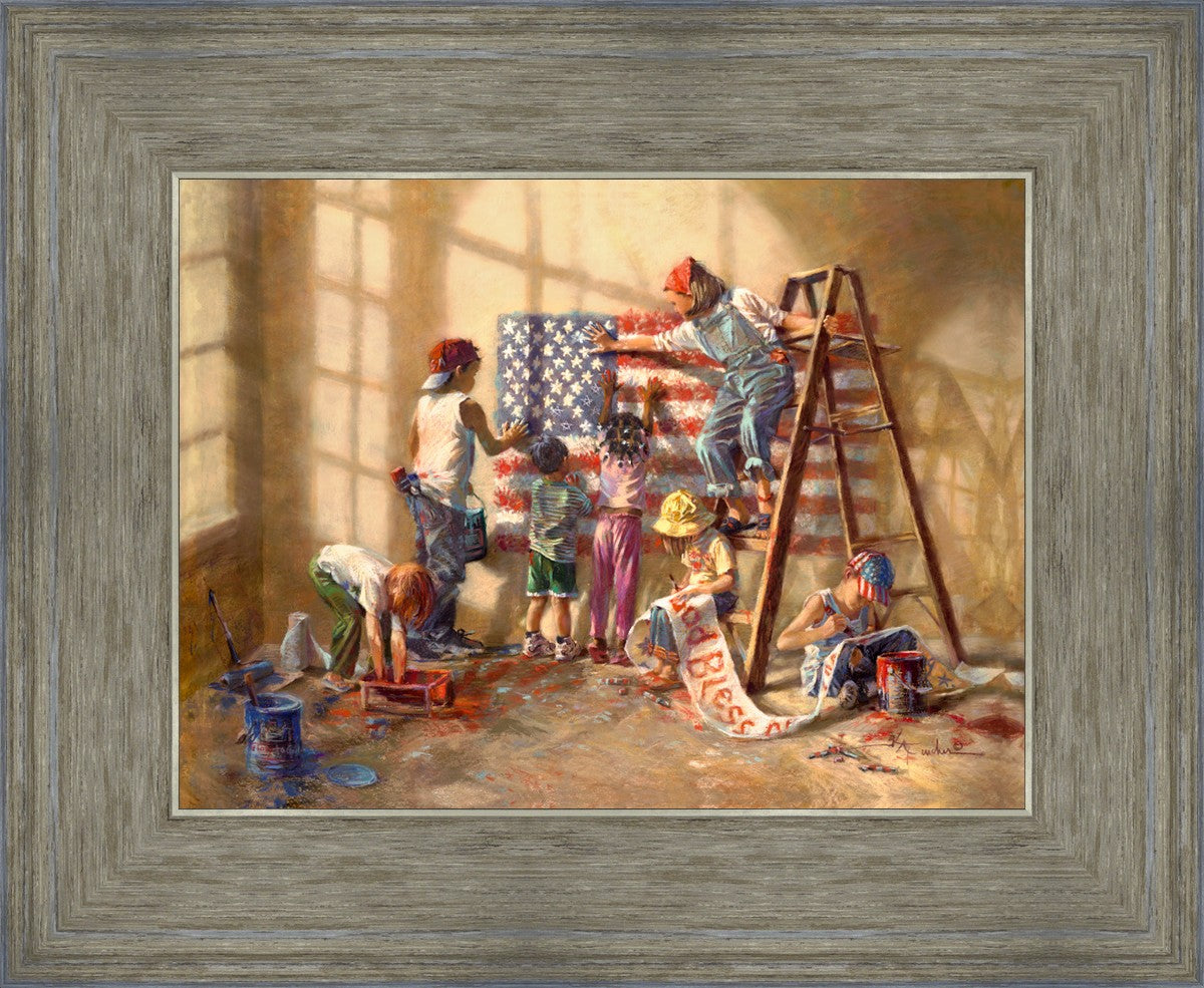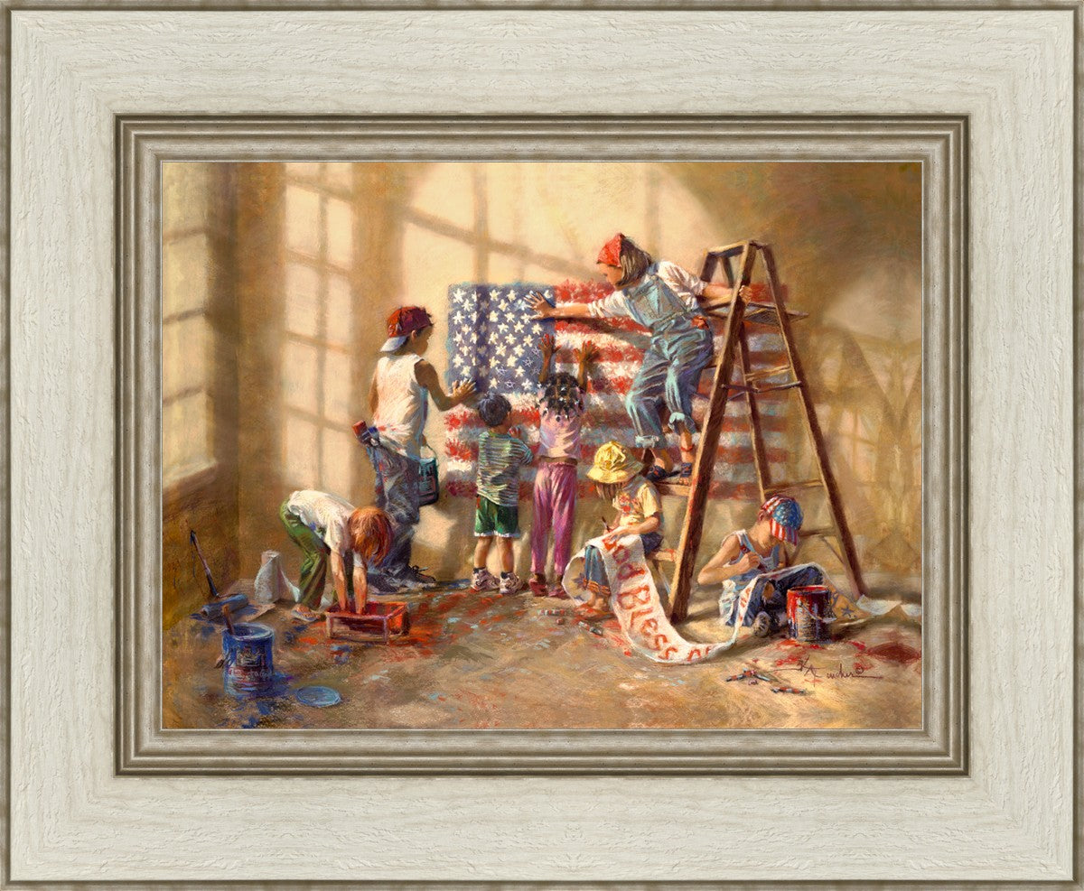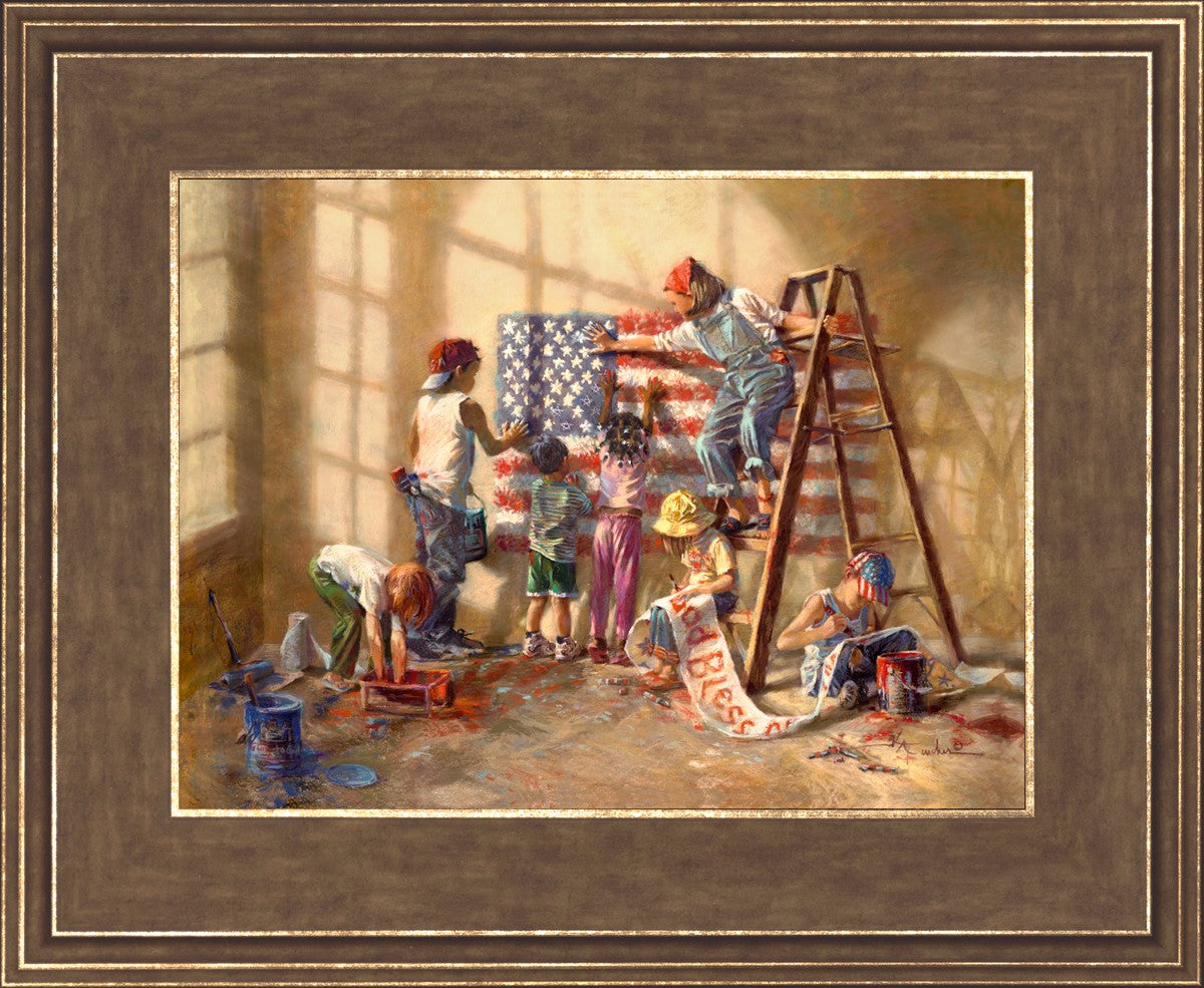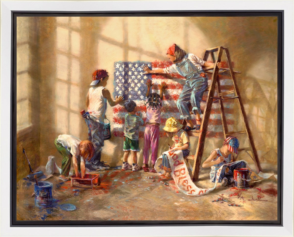 Kathryn Fincher creates meaningful artwork that moves the soul. She is renowned for her paintings of children in the style of Norman Rockwell. Classically trained, her attention to detail and lighting are the source for many international awards and collections. Kathy’s paintings of children were deemed a national treasure when she received a Grammy Award for the Visual Arts by the Save the Arts Foundation. Her painting, The Dream Keepers, was introduced in the Oval Office and later inducted into the permanent collection of the Presidential Library of G.W. Bush. Based on the painting, Fincher designed The Dream Keepers 911 Memorial, the largest children’s memorial featuring seven children restoring the American Dream by shaping the flag with their handprints.