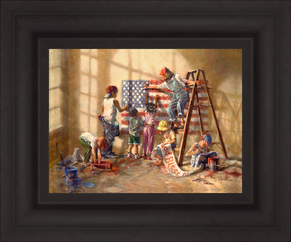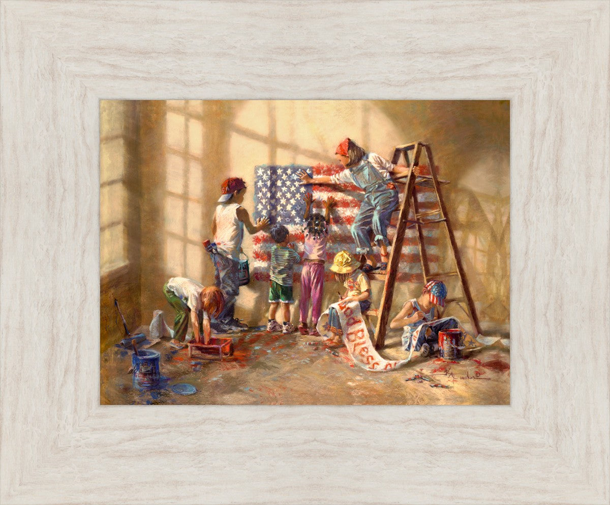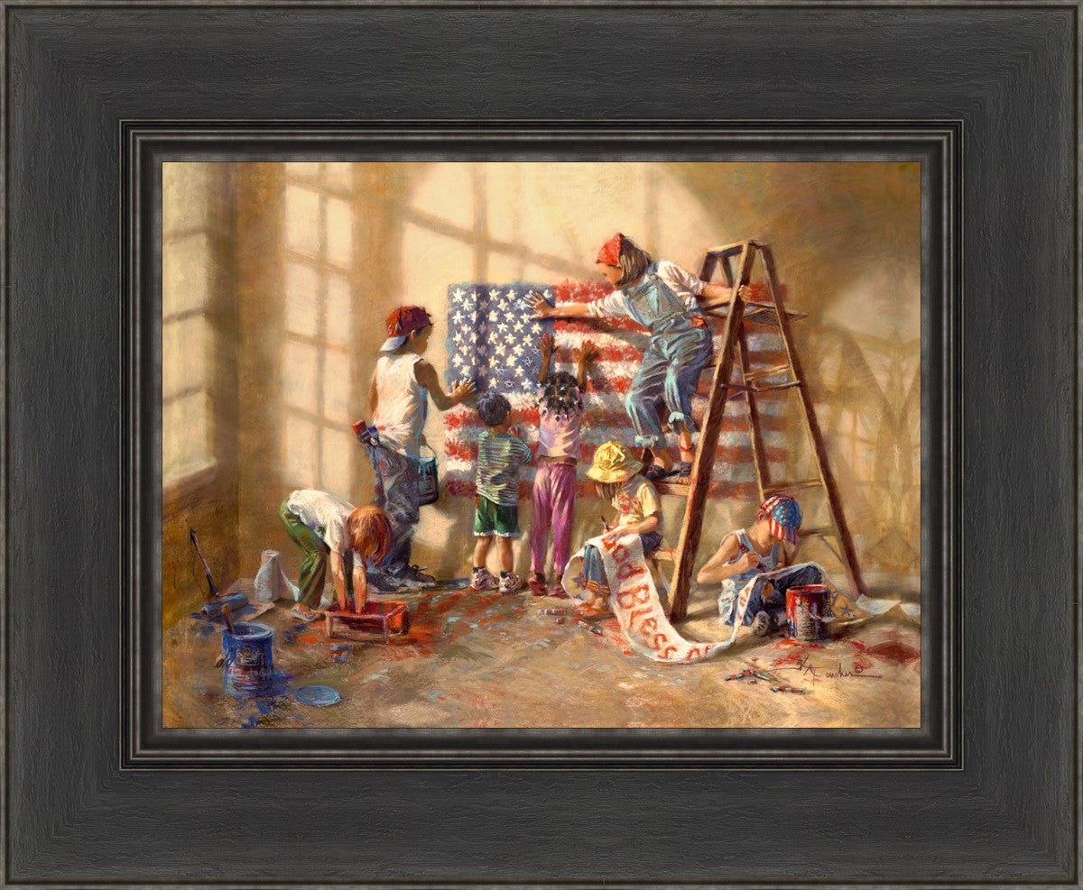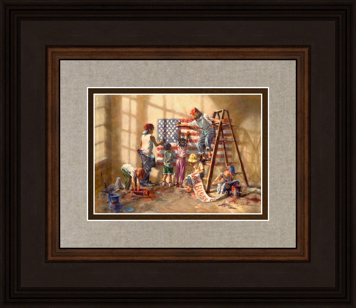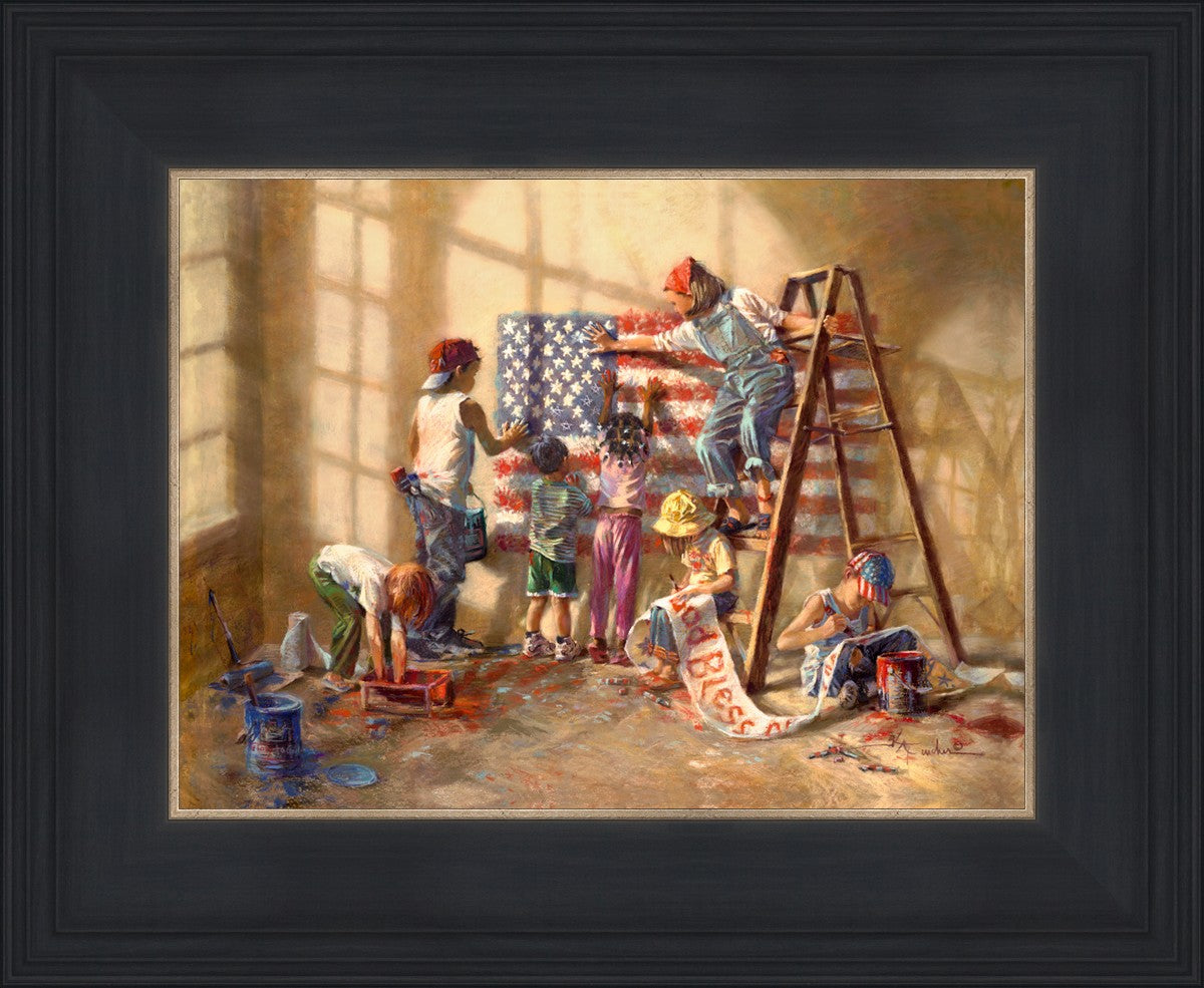 Kathryn Fincher creates meaningful artwork that moves the soul. She is renowned for her paintings of children in the style of Norman Rockwell. Classically trained, her attention to detail and lighting are the source for many international awards and collections. Kathy’s paintings of children were deemed a national treasure when she received a Grammy Award for the Visual Arts by the Save the Arts Foundation. Her painting, The Dream Keepers, was introduced in the Oval Office and later inducted into the permanent collection of the Presidential Library of G.W. Bush. Based on the painting, Fincher designed The Dream Keepers 911 Memorial, the largest children’s memorial featuring seven children restoring the American Dream by shaping the flag with their handprints.