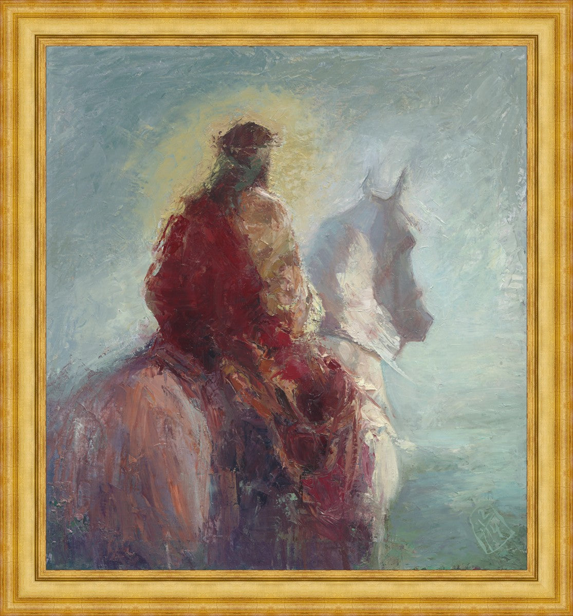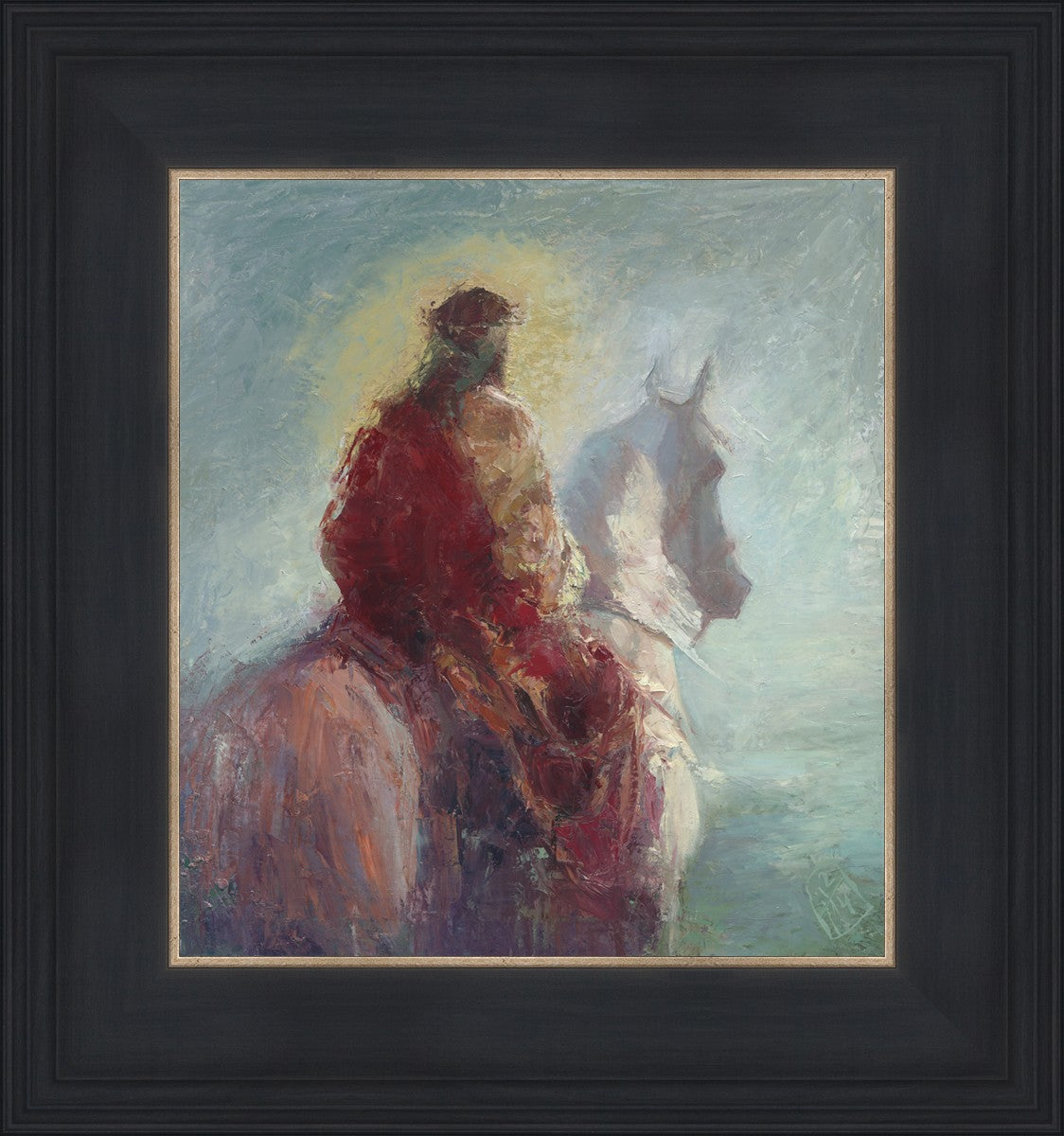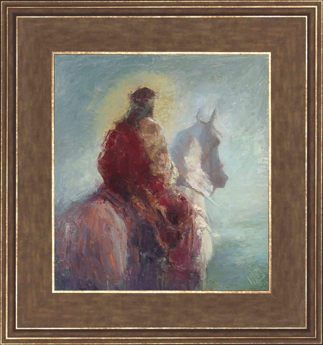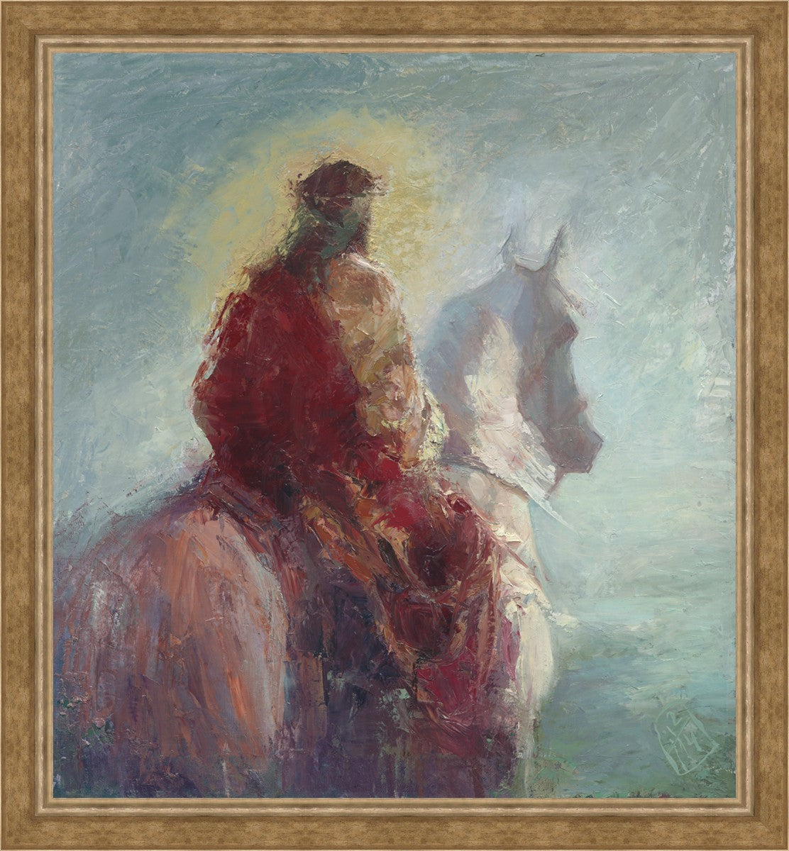 Based upon my dream, where I saw the Messiah riding a white horse. I have never seen His face, only saw Him from the back. I would never dare to paint His portrait, since it's very personal for everyone. In this painting He is painted during His Second Coming as a King who is leading the Heavenly hosts. As my friend mentioned, to be behind Messiah's back is the best location one can find himself during His Second Coming.