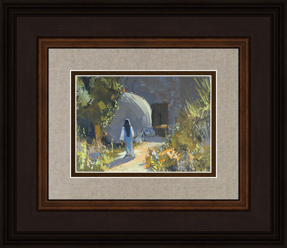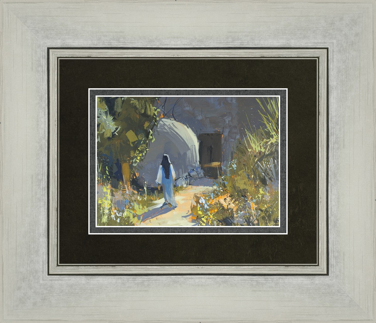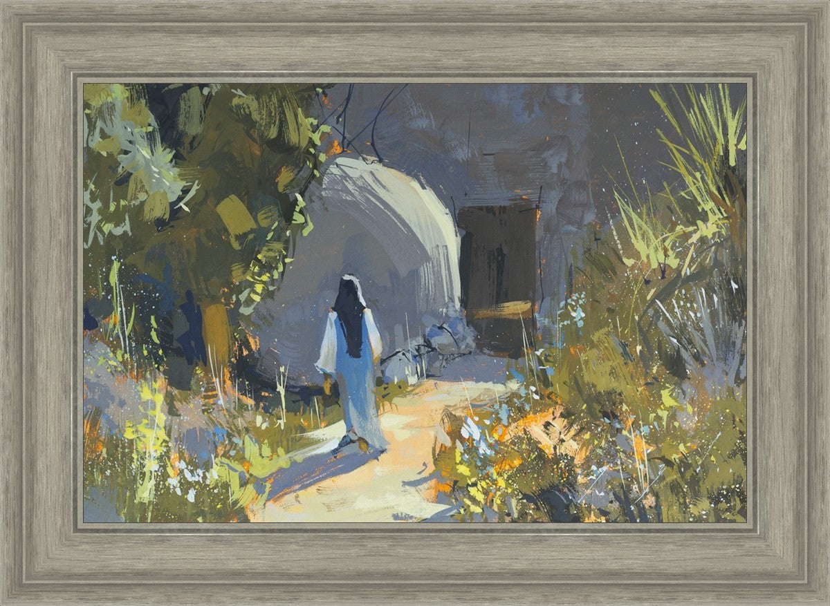This is when Mary Magdalene comes to visit the tomb where Christ was buried early Sunday morning. She finds the tomb empty and witnesses the risen Lord. I want this scene to be beautiful, full of color, flowers and life. This is moments before she see Christ and knows that he is alive. This is a moment mixed with emotions and wonder.
