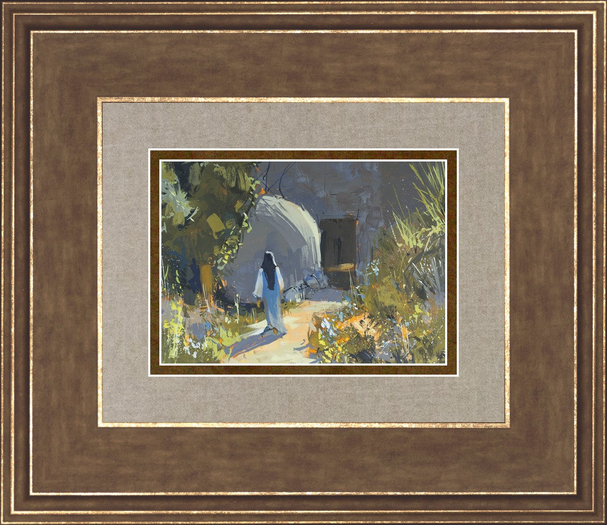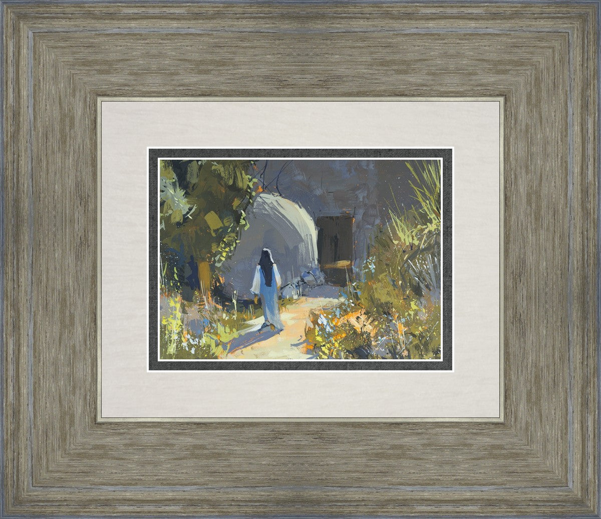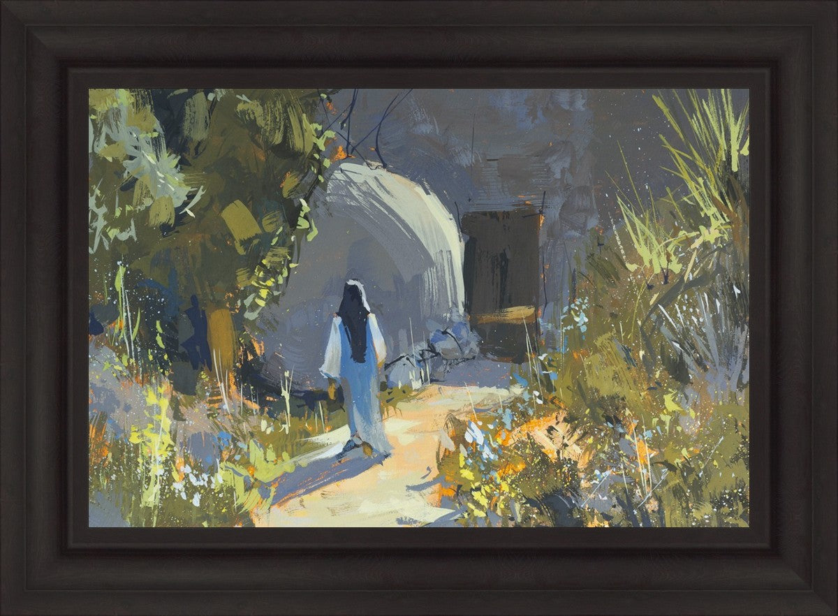 This is when Mary Magdalene comes to visit the tomb where Christ was buried early Sunday morning. She finds the tomb empty and witnesses the risen Lord. I want this scene to be beautiful, full of color, flowers and life. This is moments before she see Christ and knows that he is alive. This is a moment mixed with emotions and wonder.