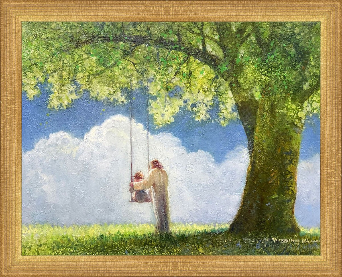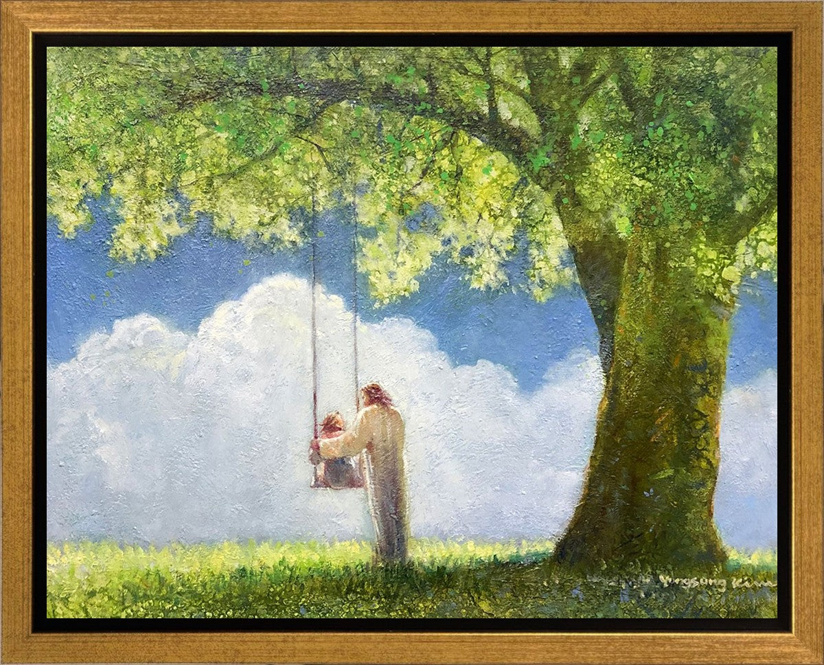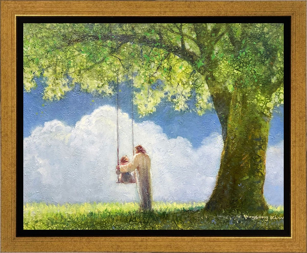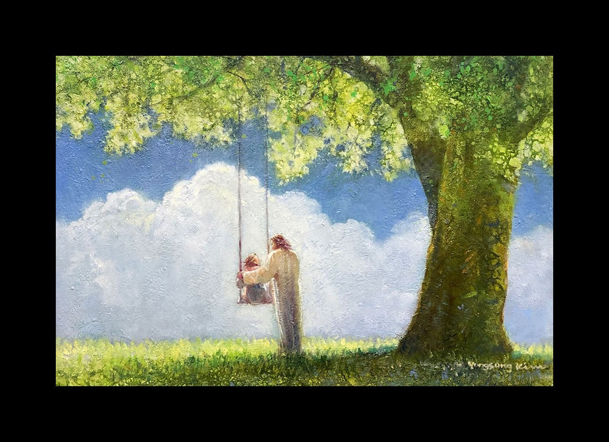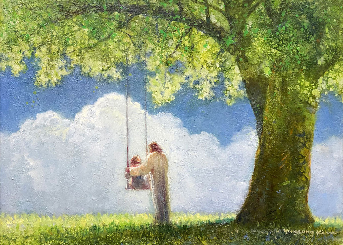"The Greatest in the Kingdom of Heaven" by Yongsung Kim: Jesus pushing a girl on a swing