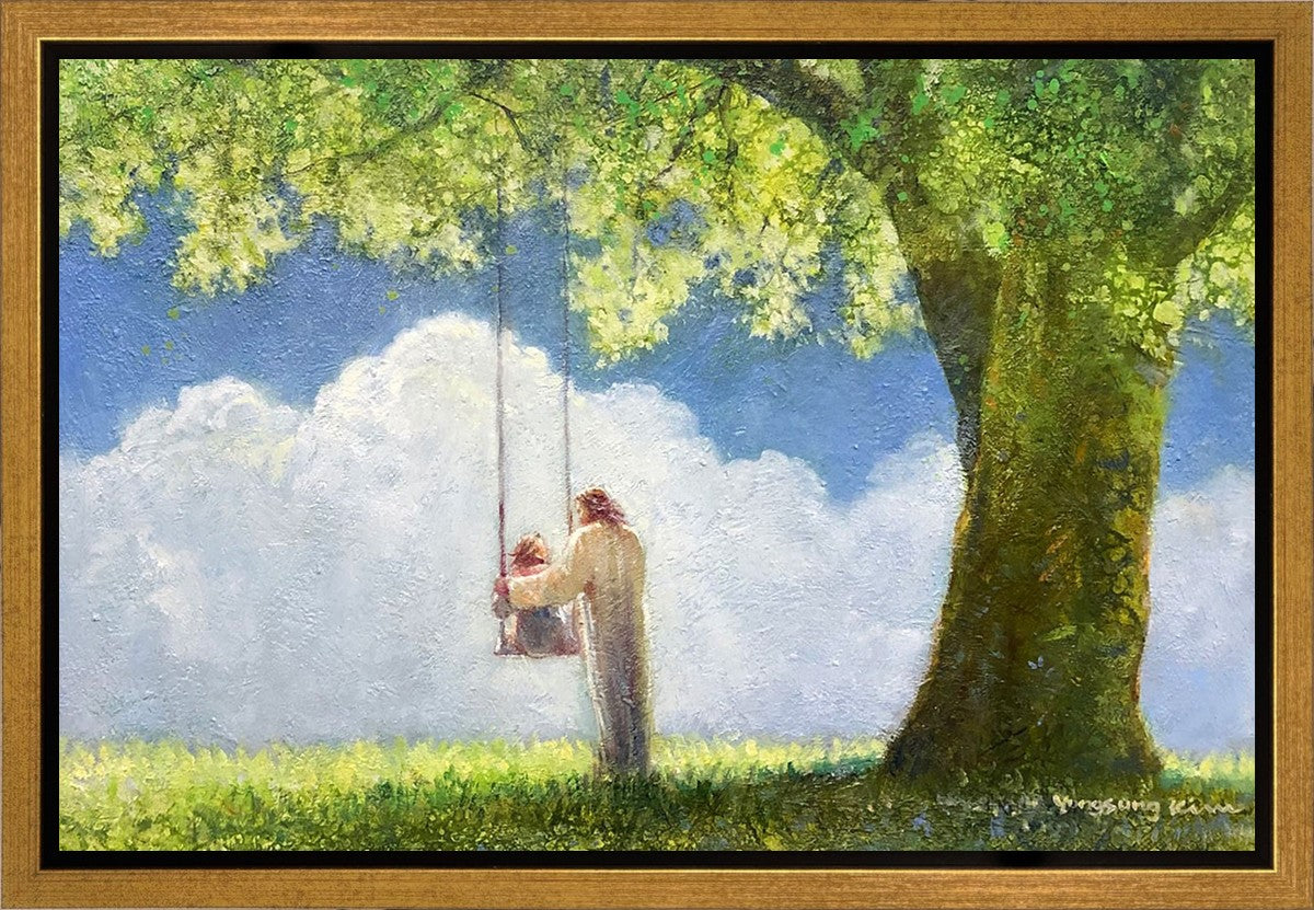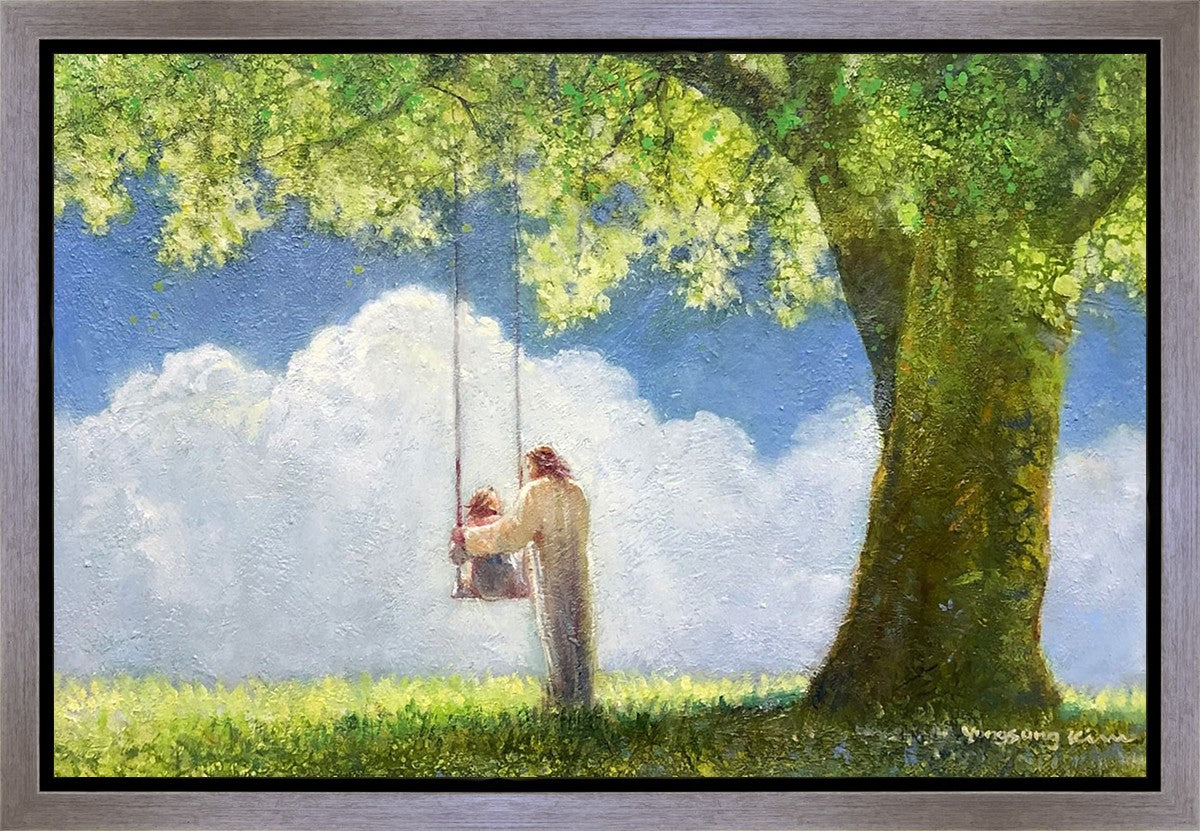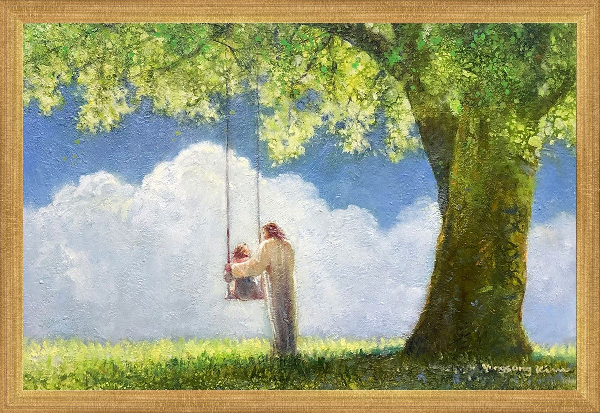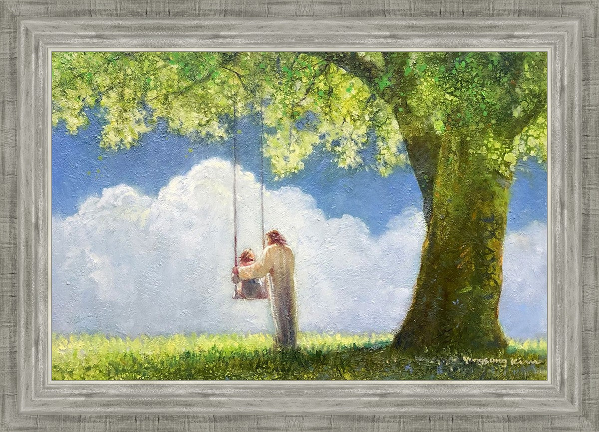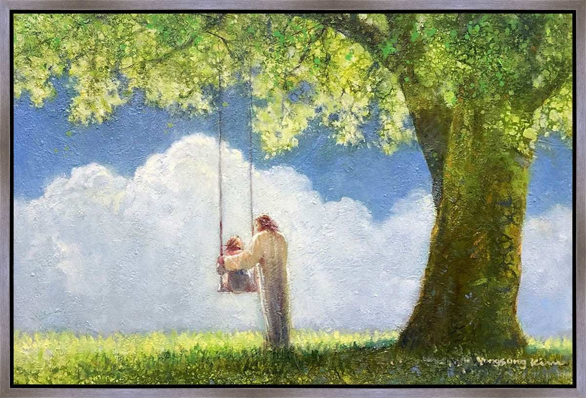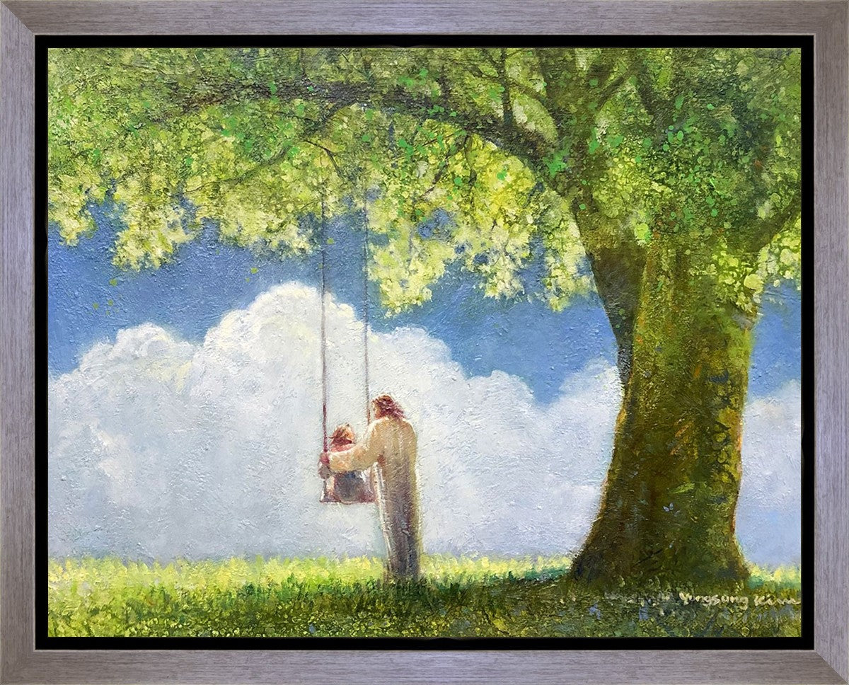 "The Greatest in the Kingdom of Heaven" by Yongsung Kim: Jesus pushing a girl on a swing