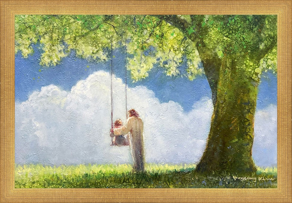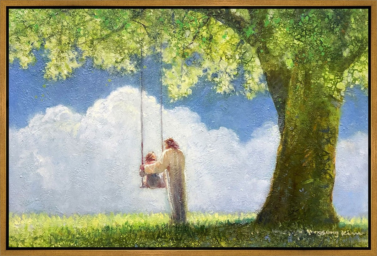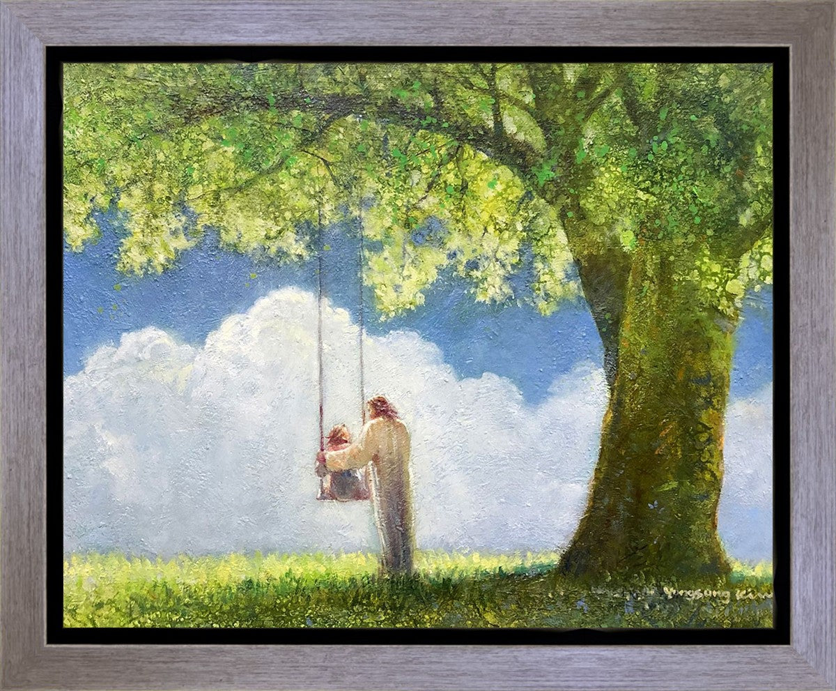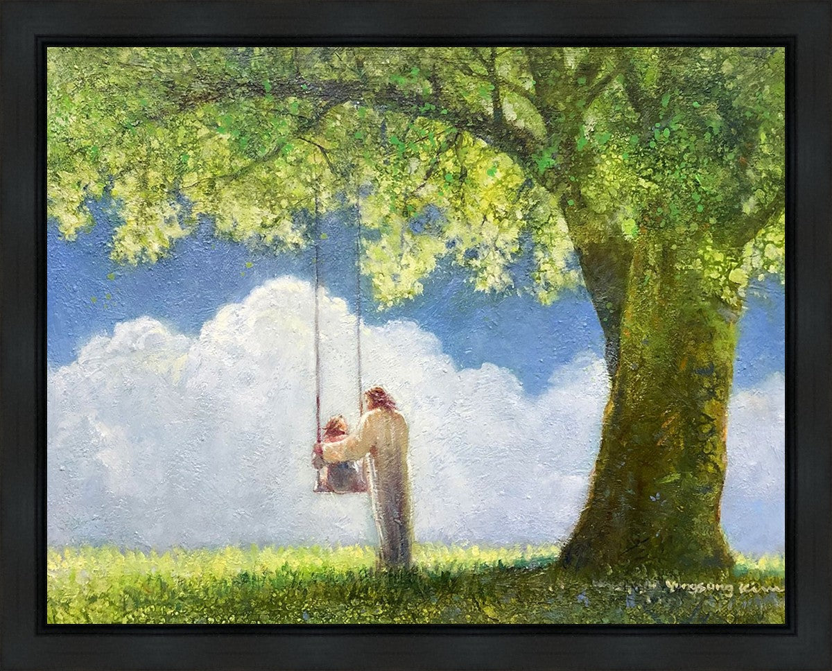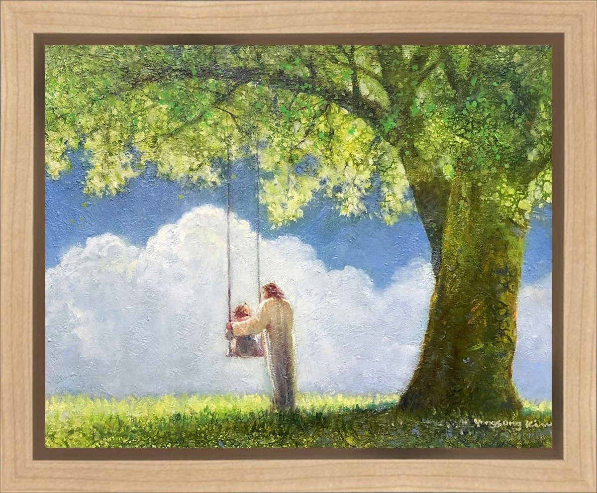 "The Greatest in the Kingdom of Heaven" by Yongsung Kim: Jesus pushing a girl on a swing
