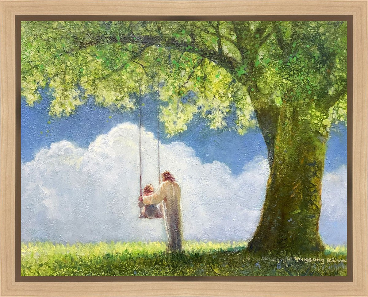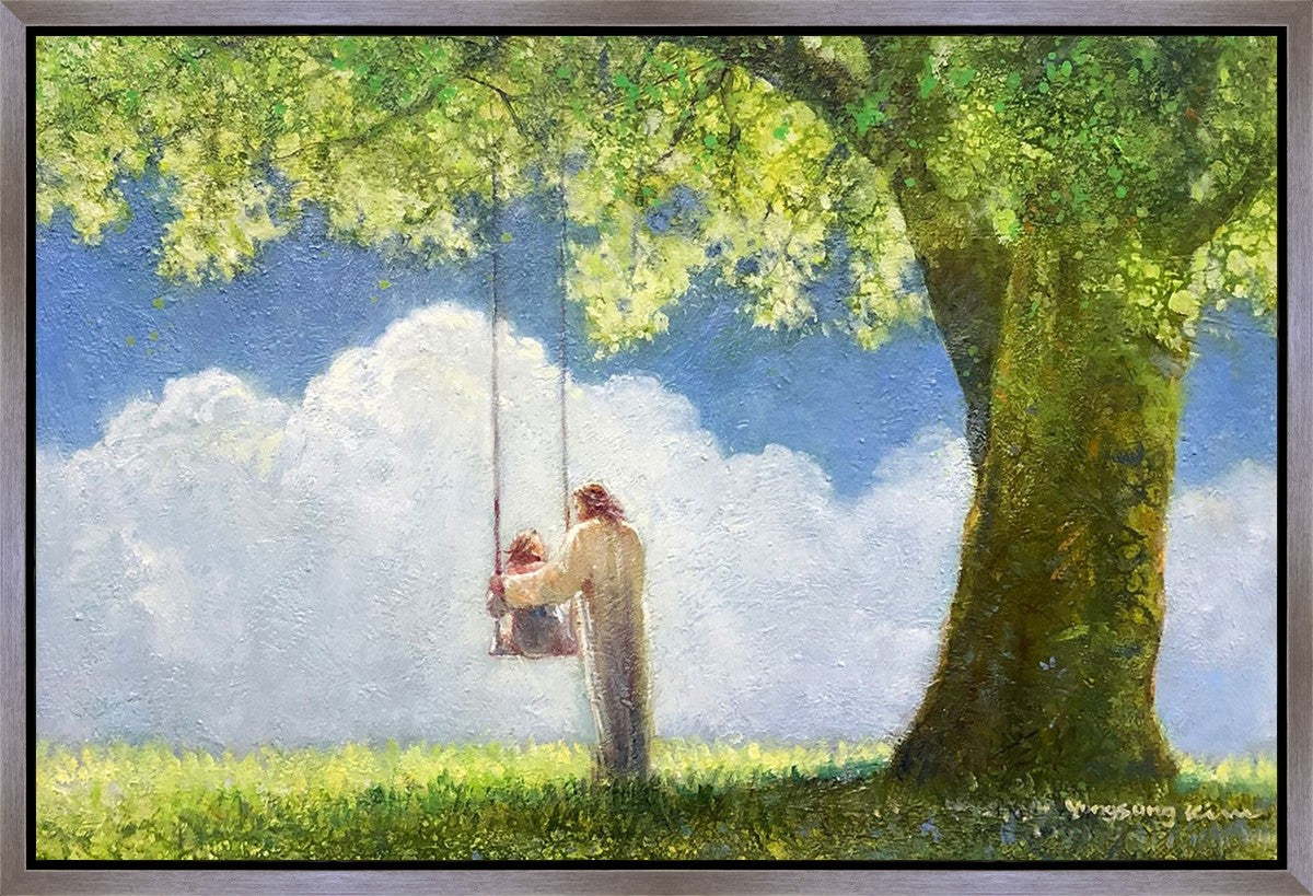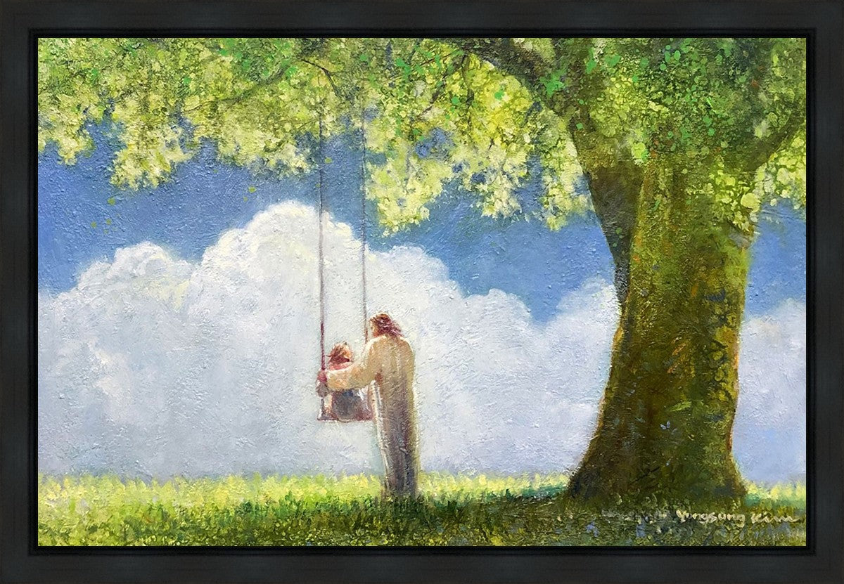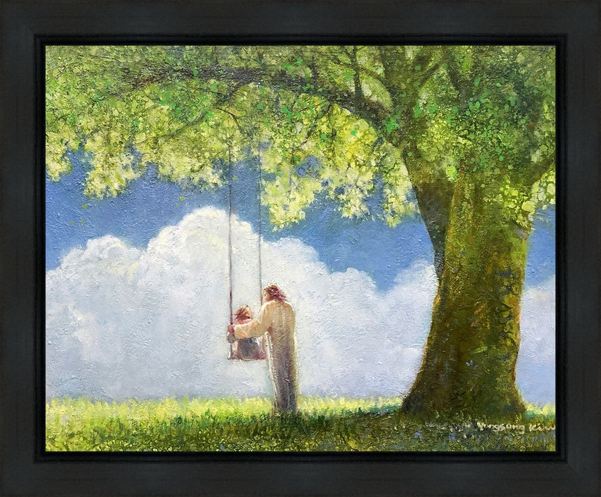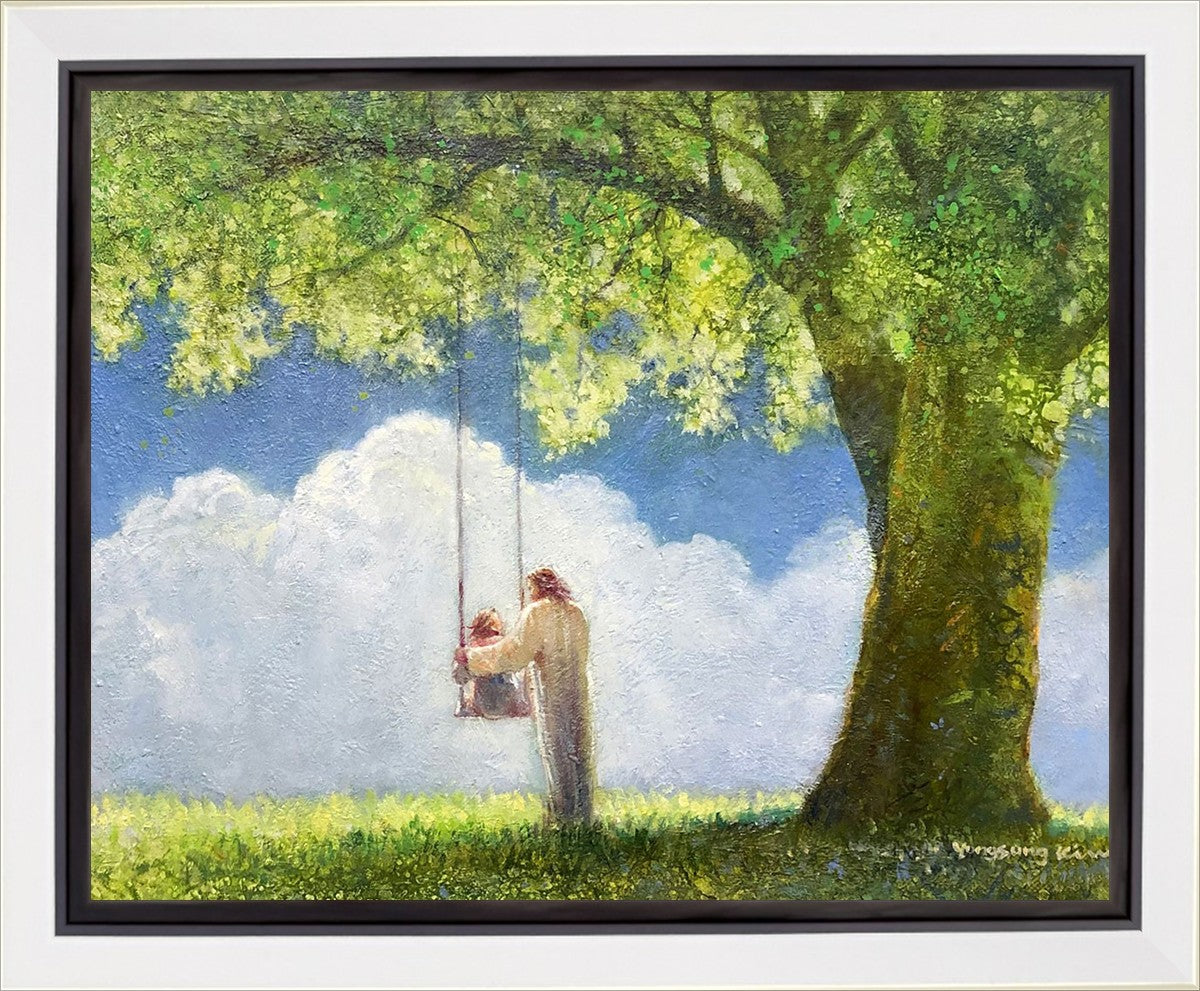 "The Greatest in the Kingdom of Heaven" by Yongsung Kim: Jesus pushing a girl on a swing