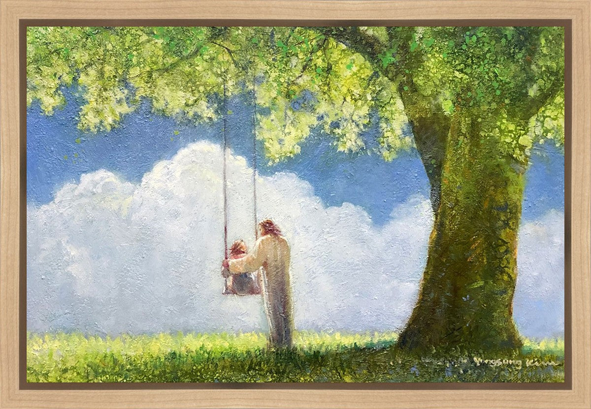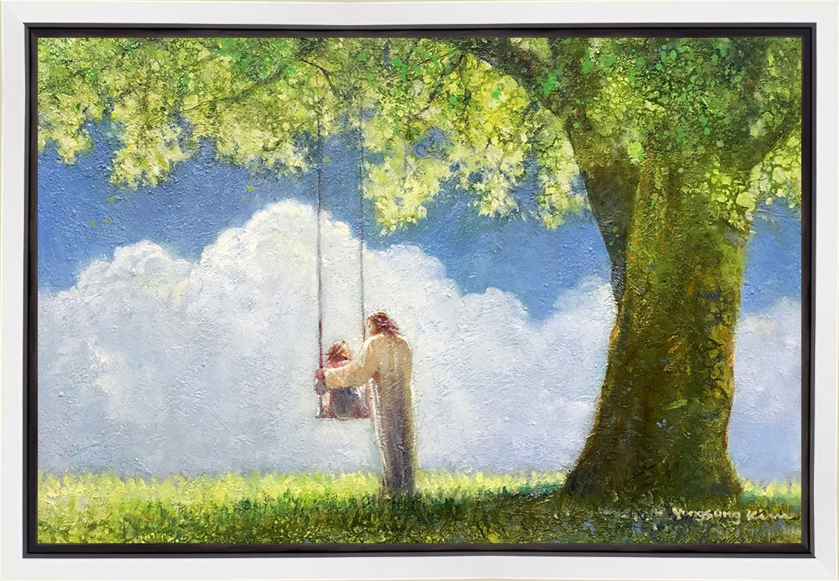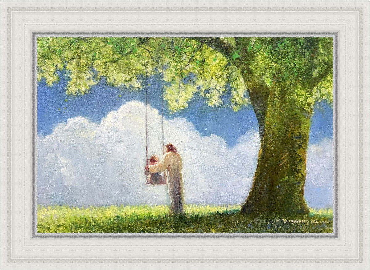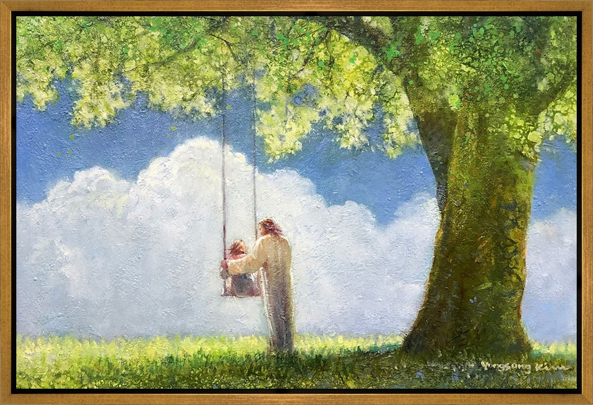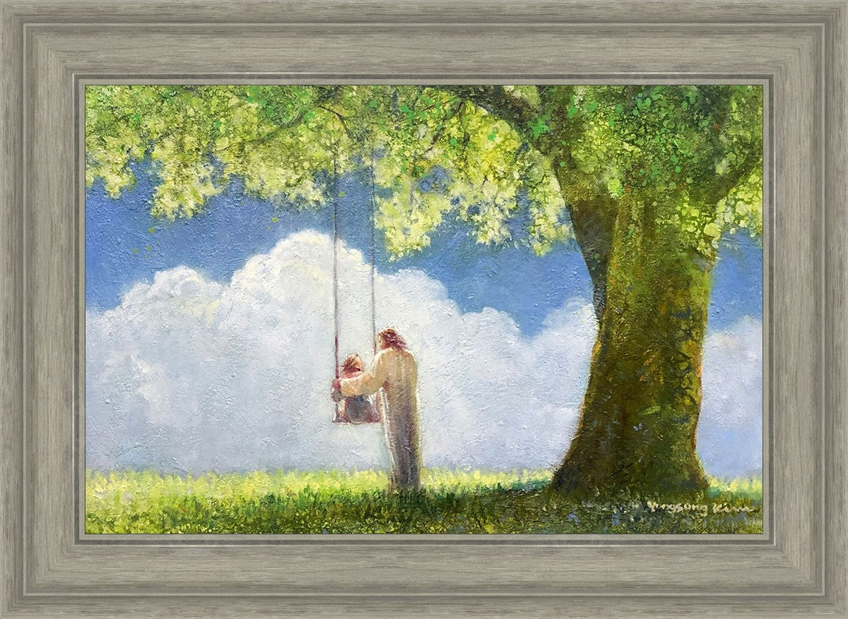 "The Greatest in the Kingdom of Heaven" by Yongsung Kim: Jesus pushing a girl on a swing