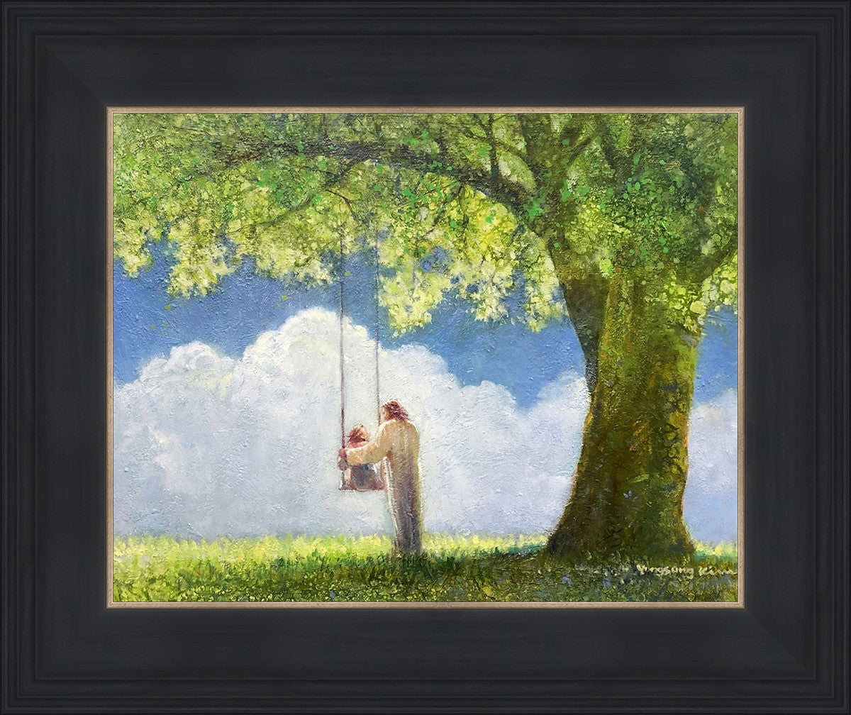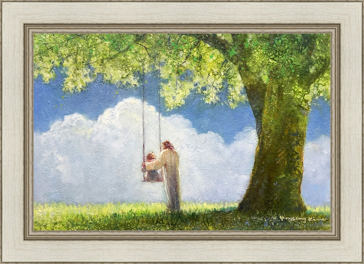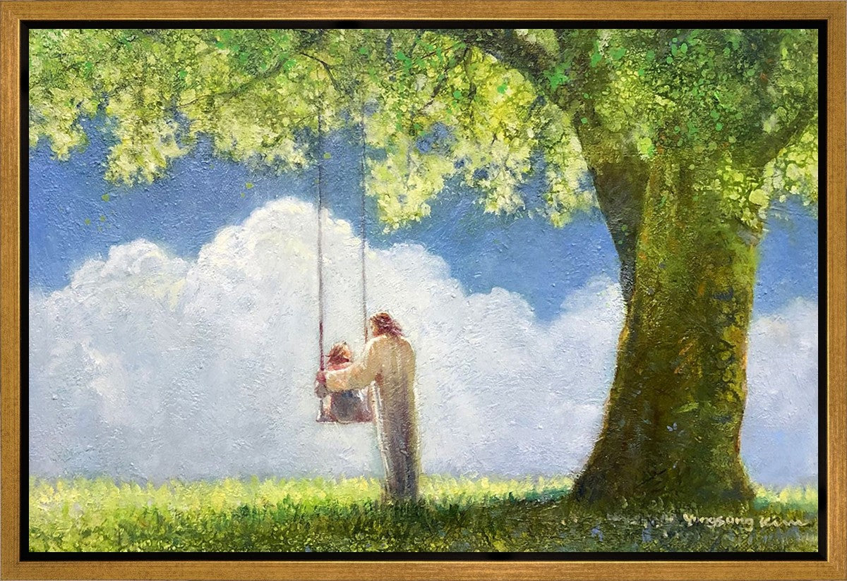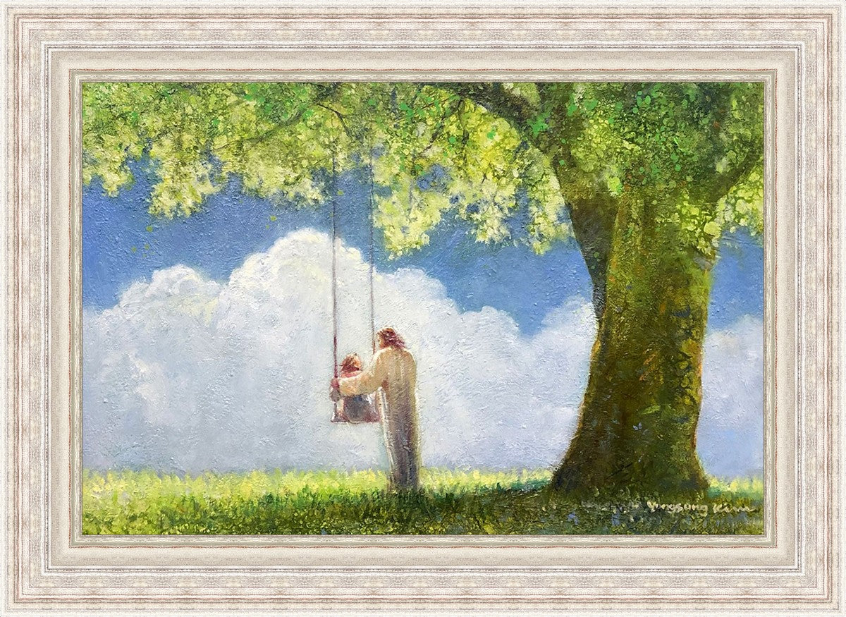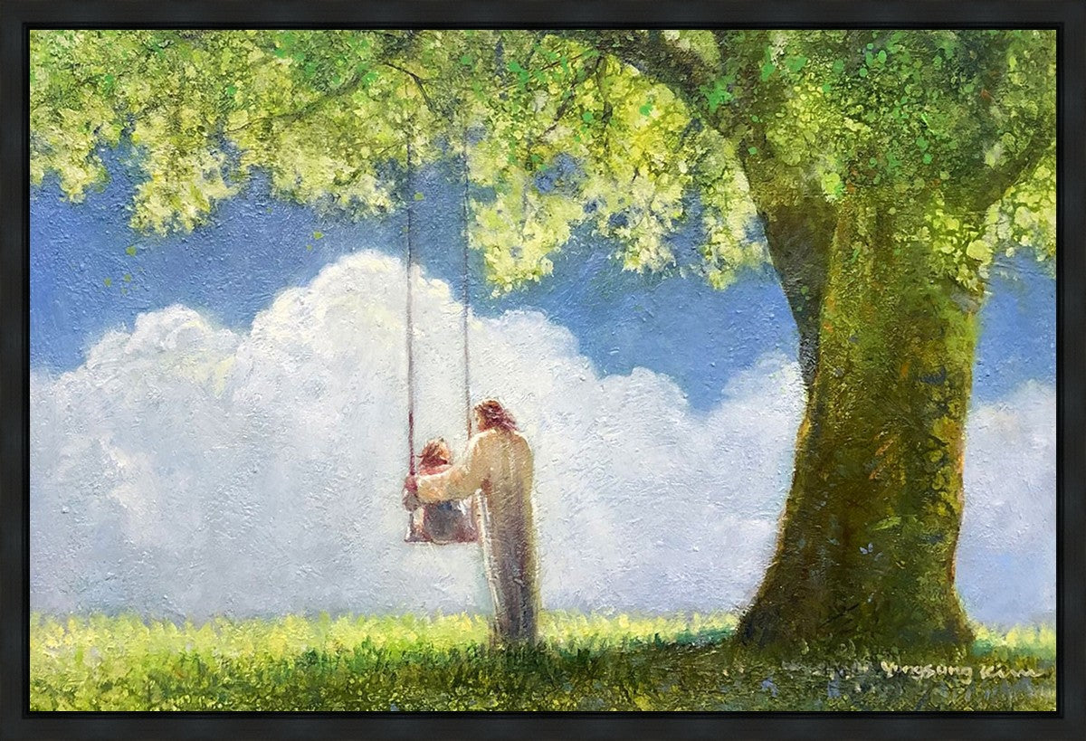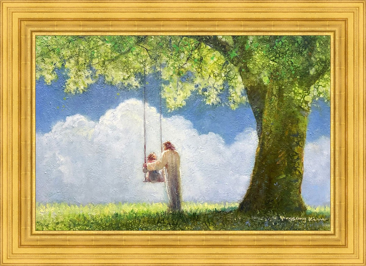 "The Greatest in the Kingdom of Heaven" by Yongsung Kim: Jesus pushing a girl on a swing