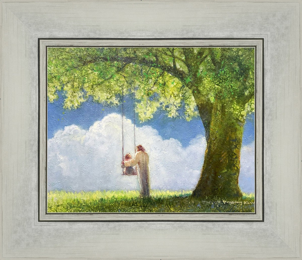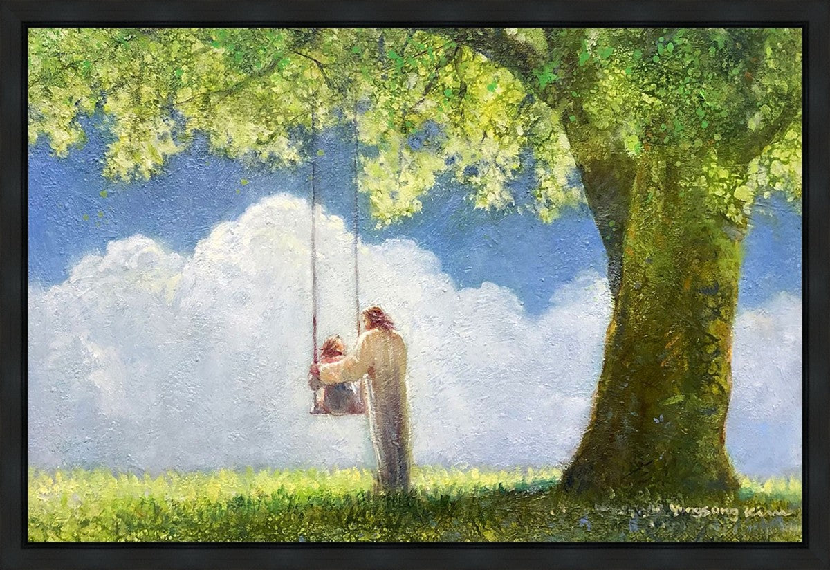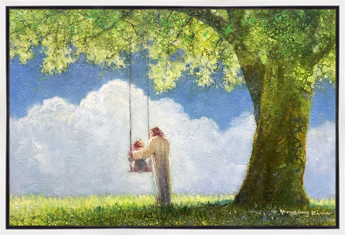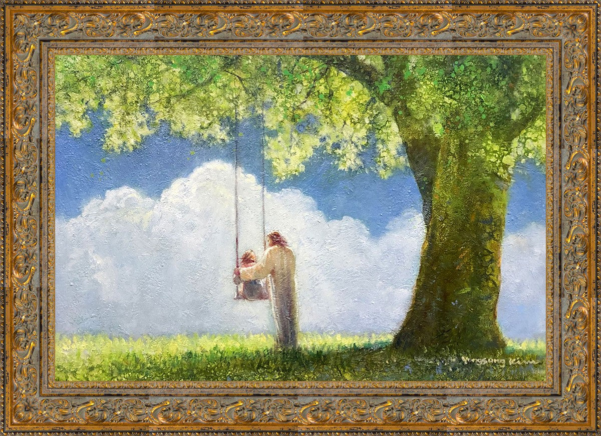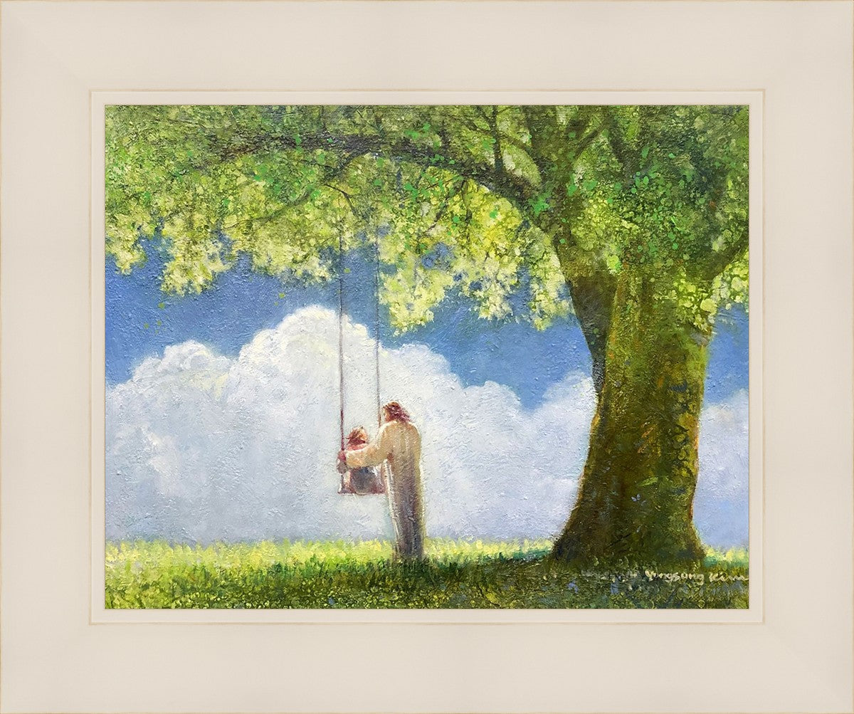 "The Greatest in the Kingdom of Heaven" by Yongsung Kim: Jesus pushing a girl on a swing