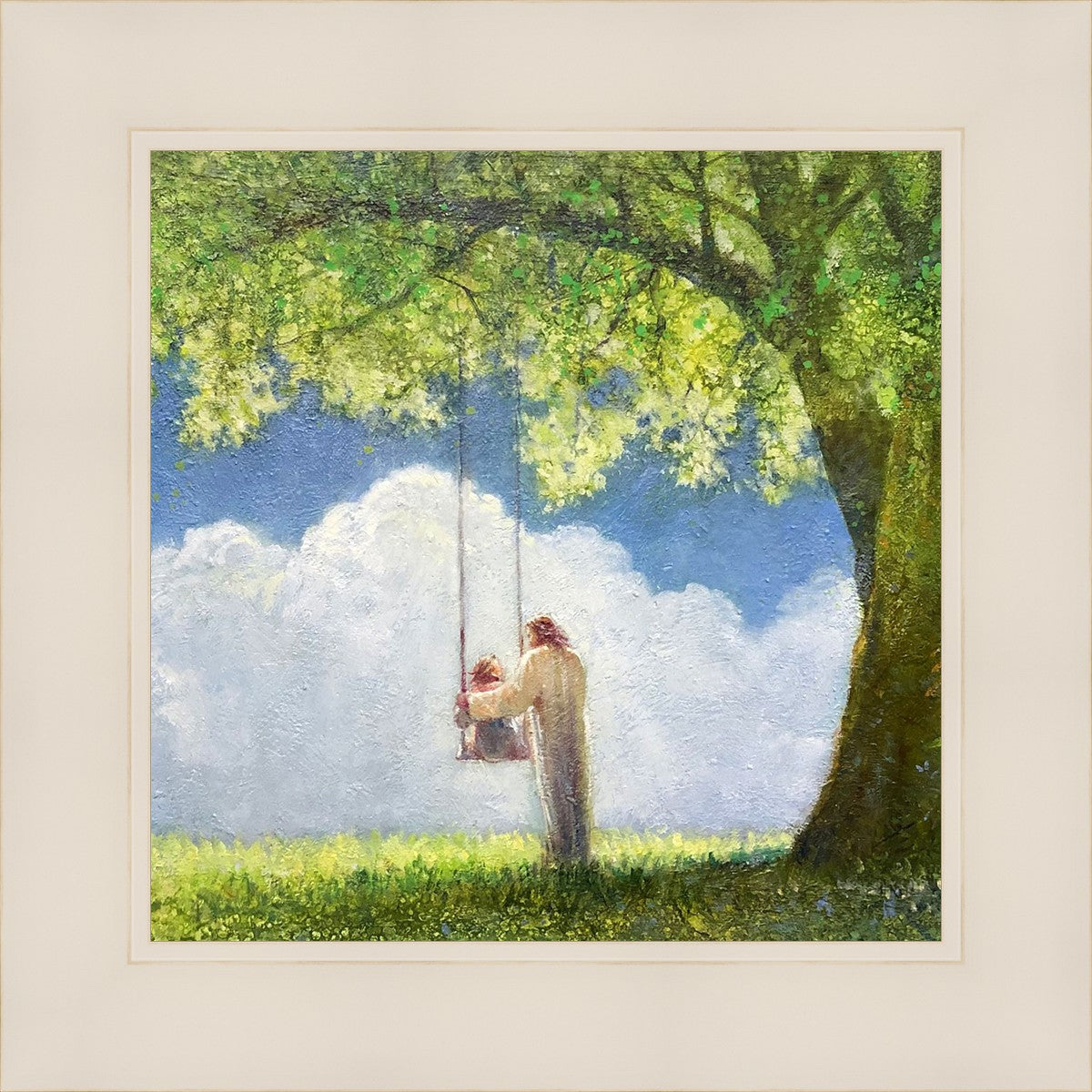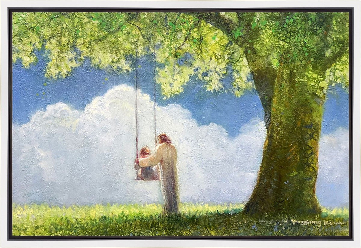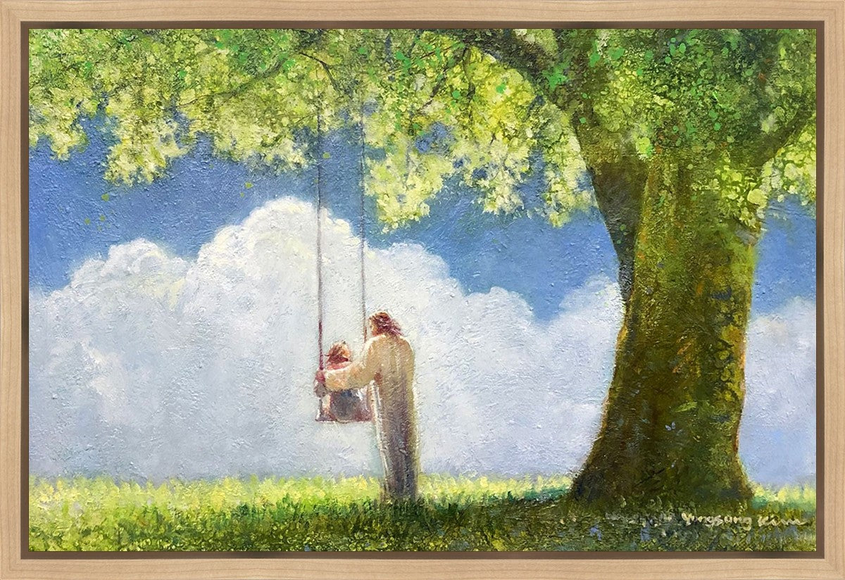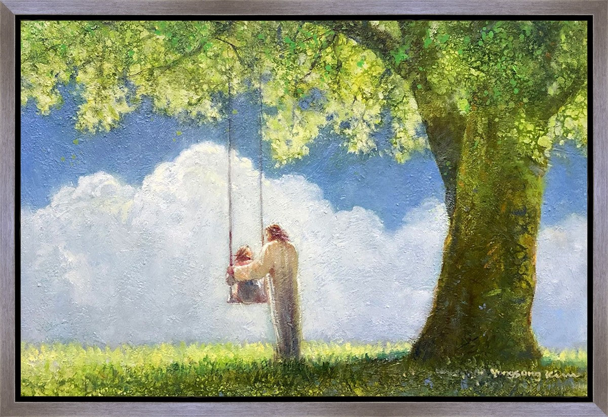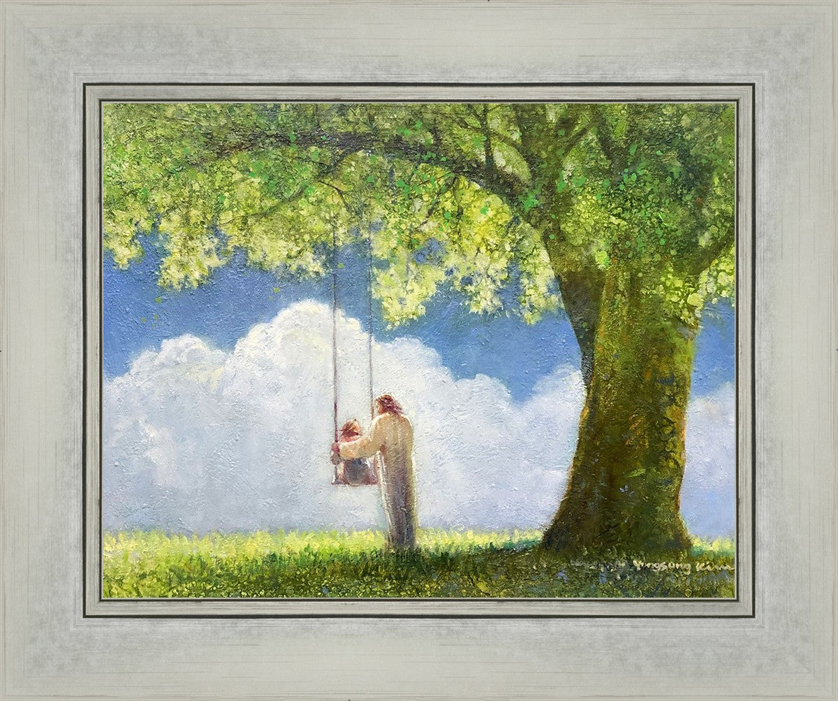 "The Greatest in the Kingdom of Heaven" by Yongsung Kim: Jesus pushing a girl on a swing