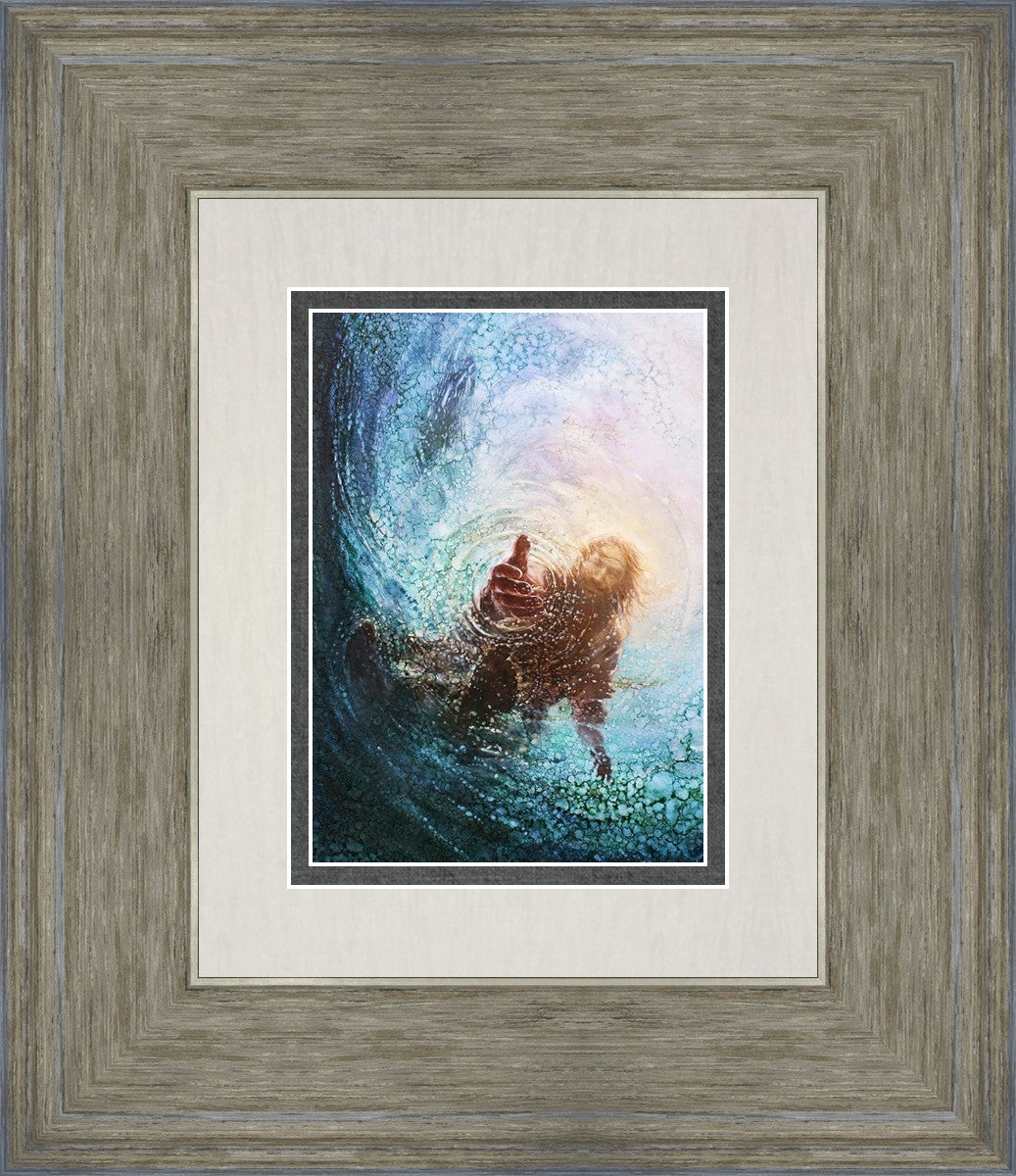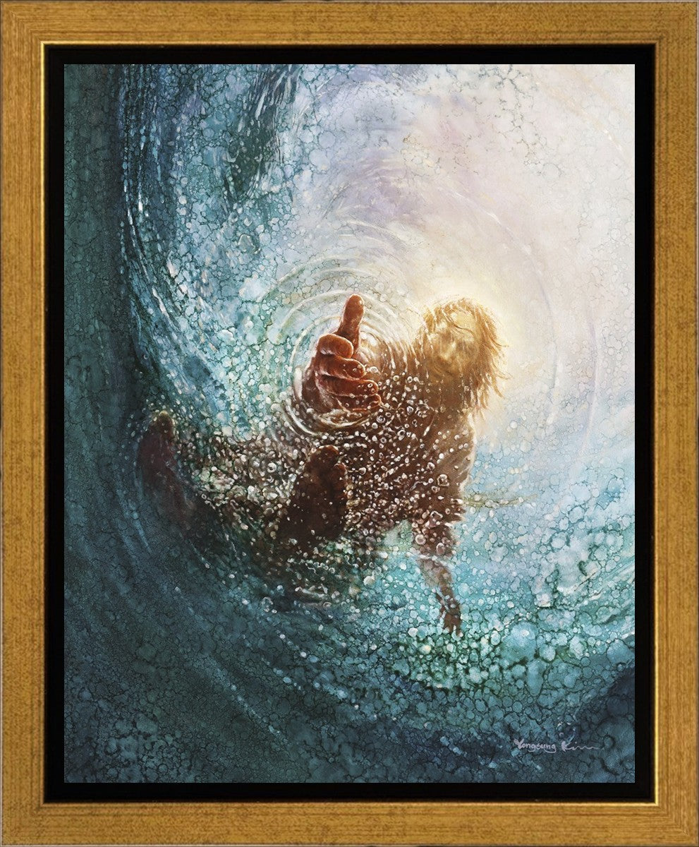 Experience the inspiring Hand of God painting by Yongsung Kim. Witness Jesus' hand reaching into the water to save Peter.