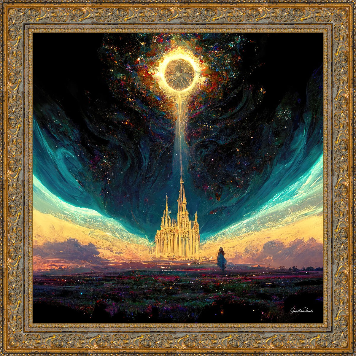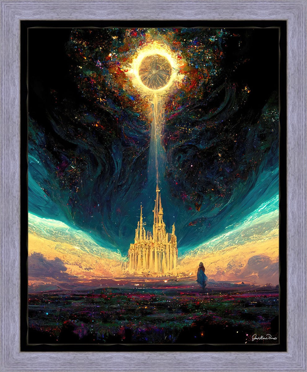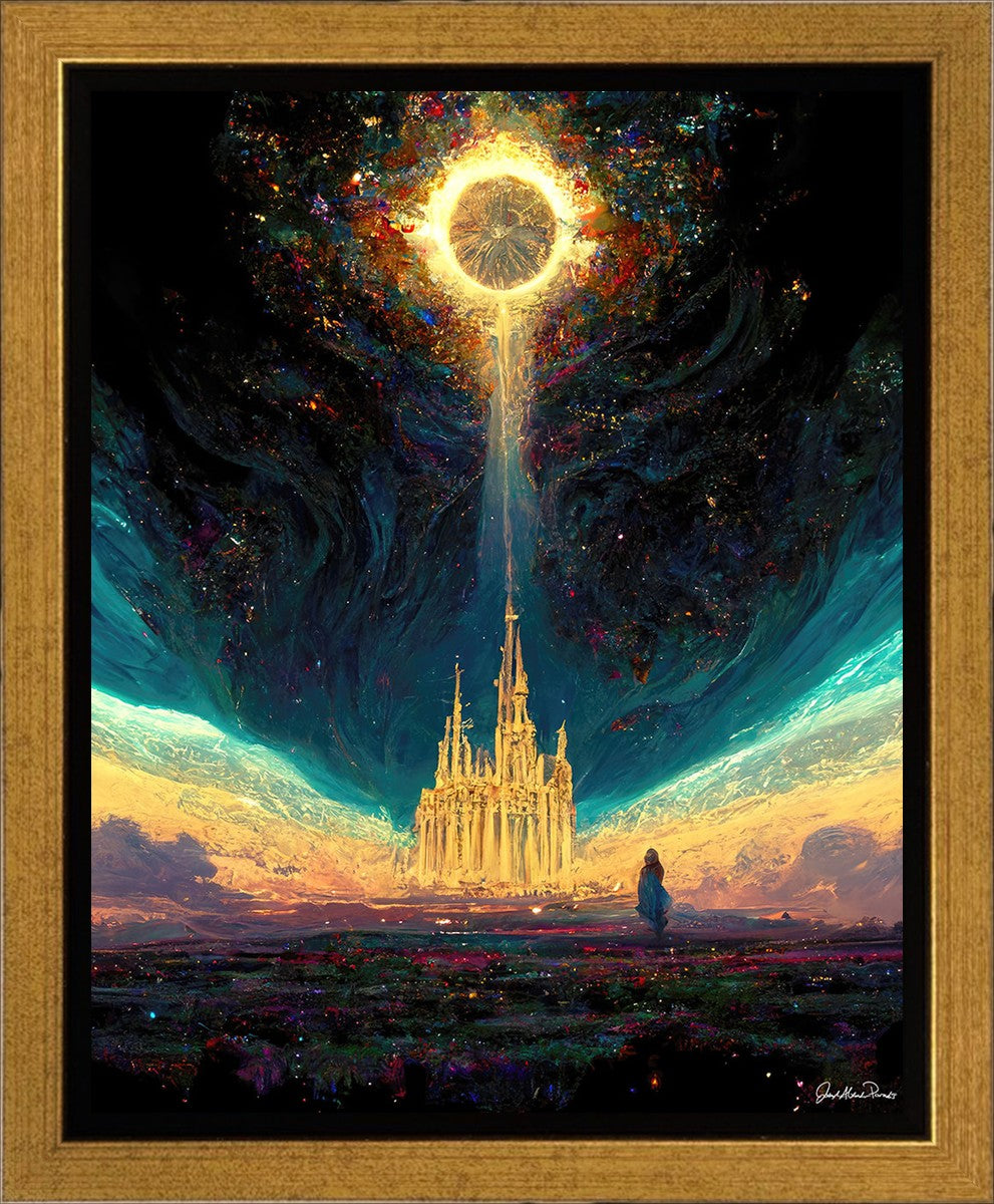 Reproduced from the artist’s original digital file created with Midjourney, Adobe Photoshop, Adobe Fresco, & TopazLabs. Created 2023.