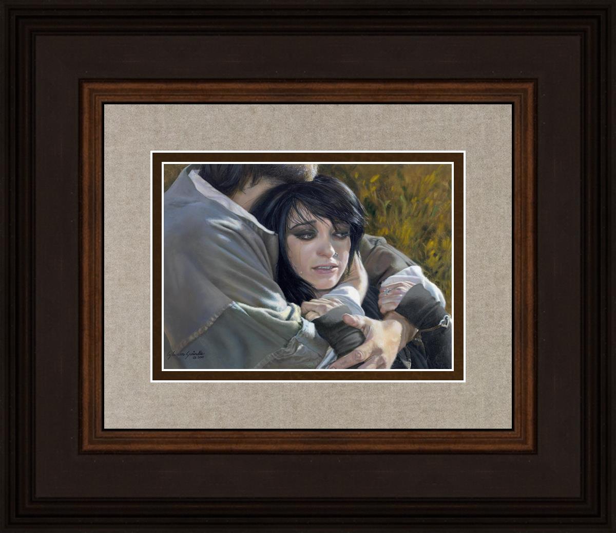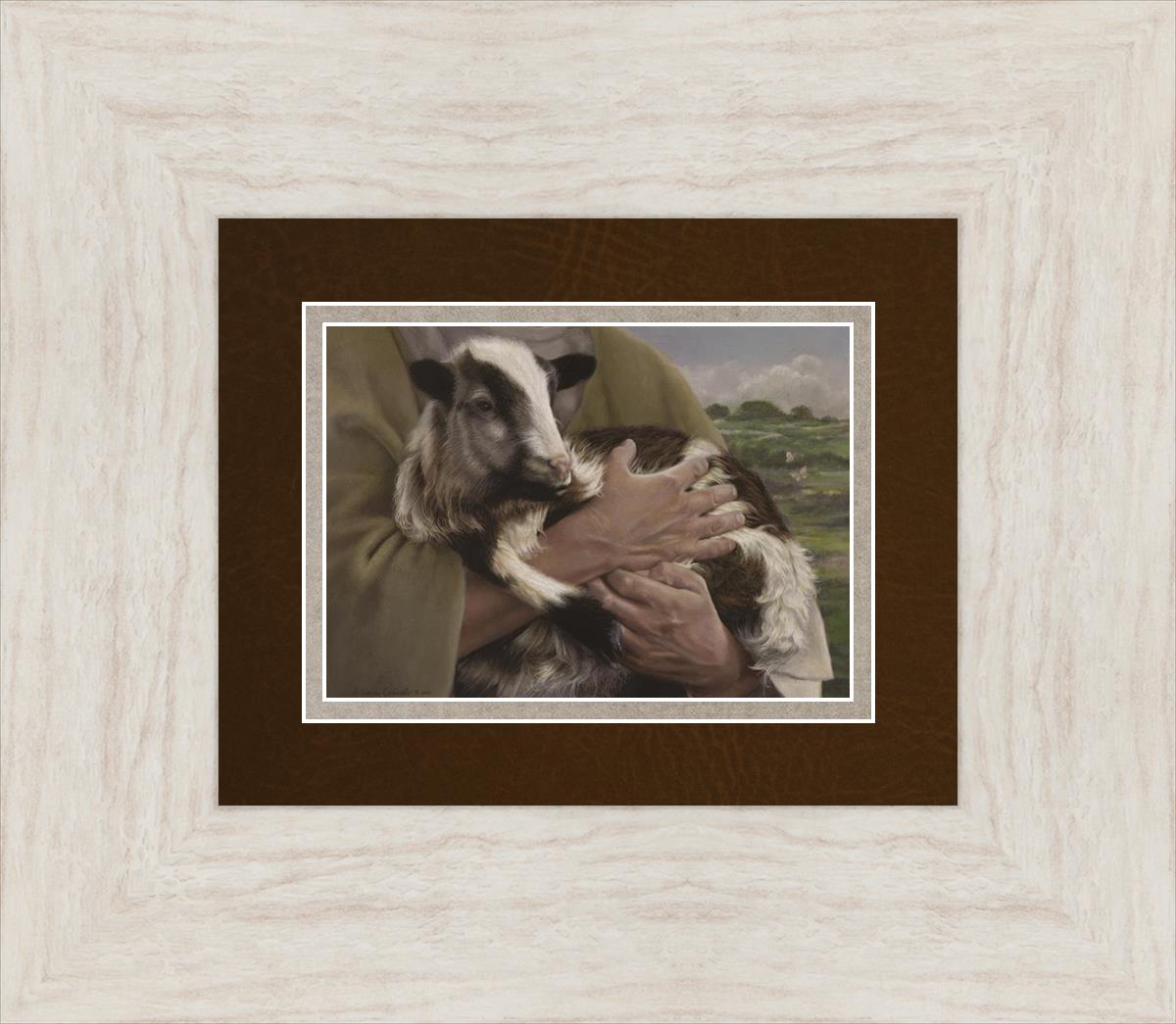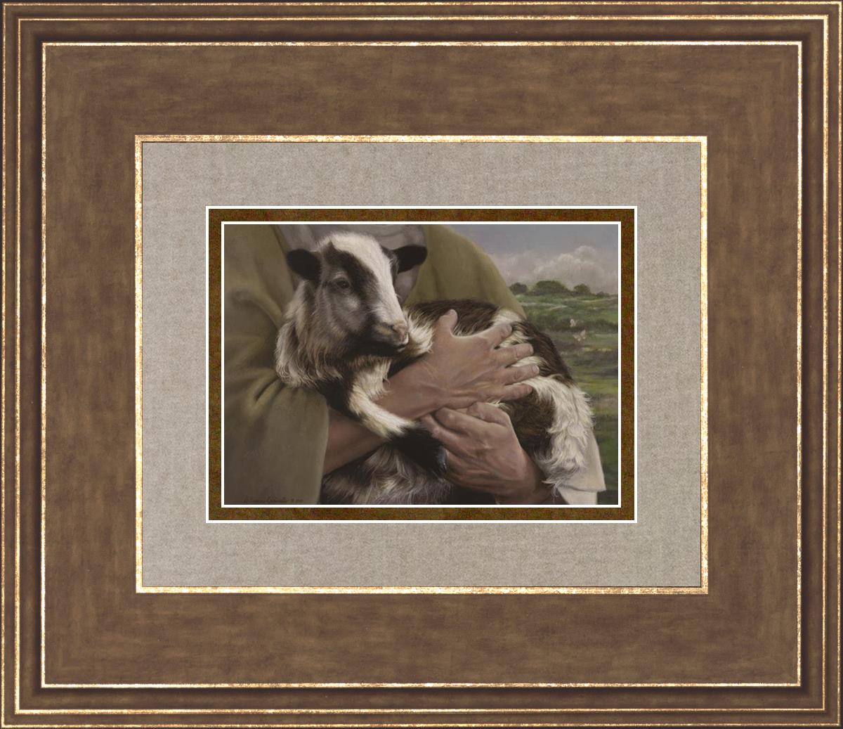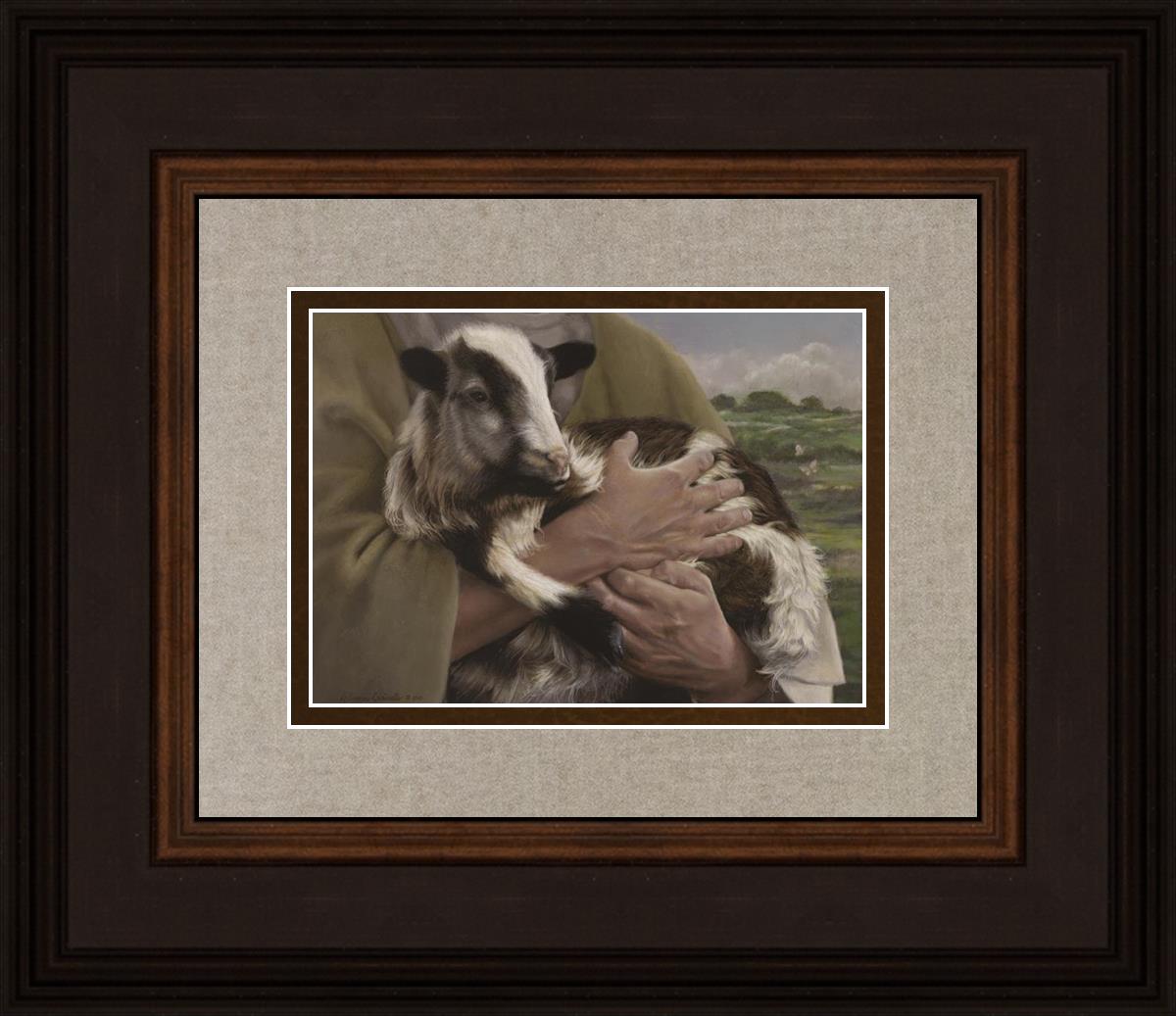 In the parable, one of the shepherd´s sheep has gone astray and become lost. The shepherd leaves the rest of his sheep safely in the fold to go in search of the lost one. When he finds the sheep he throws it on his shoulders and returns to the others, rejoicing with his friends and neighbors over finding the one that was lost. The parable concludes, ®...likewise joy shall be in heaven over one sinner that repenteth....® God is the shepherd and we are His sheep. Each of us wanders from His safety and becomes lost at times. The parable reminds us that God knows each one of us and He will search after us and bring us safely home. I included a butterfly in the background, a symbol thought by many to represent the soul, to remind us that every soul is precious in the sight of God and none of us are forgotten to Him.