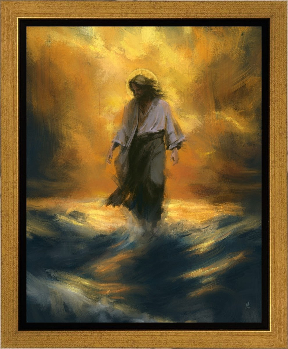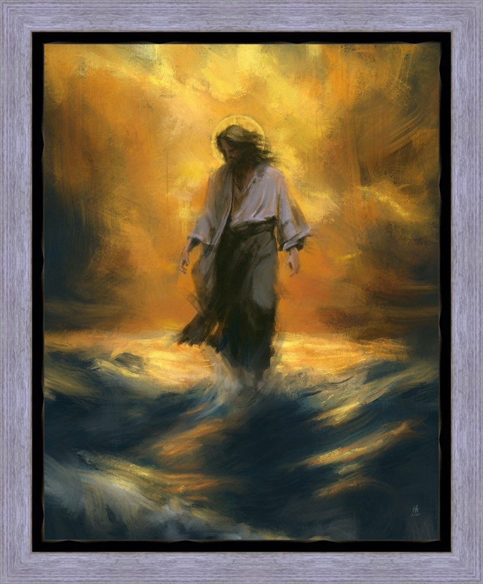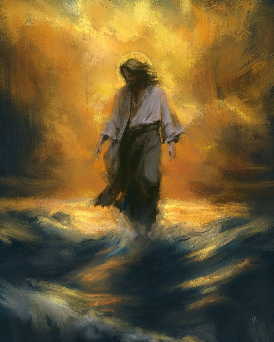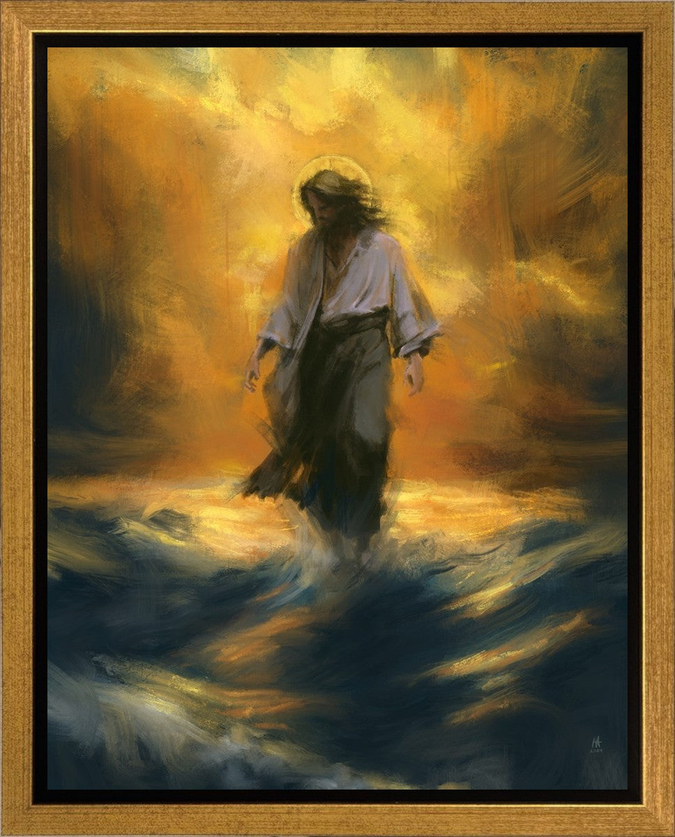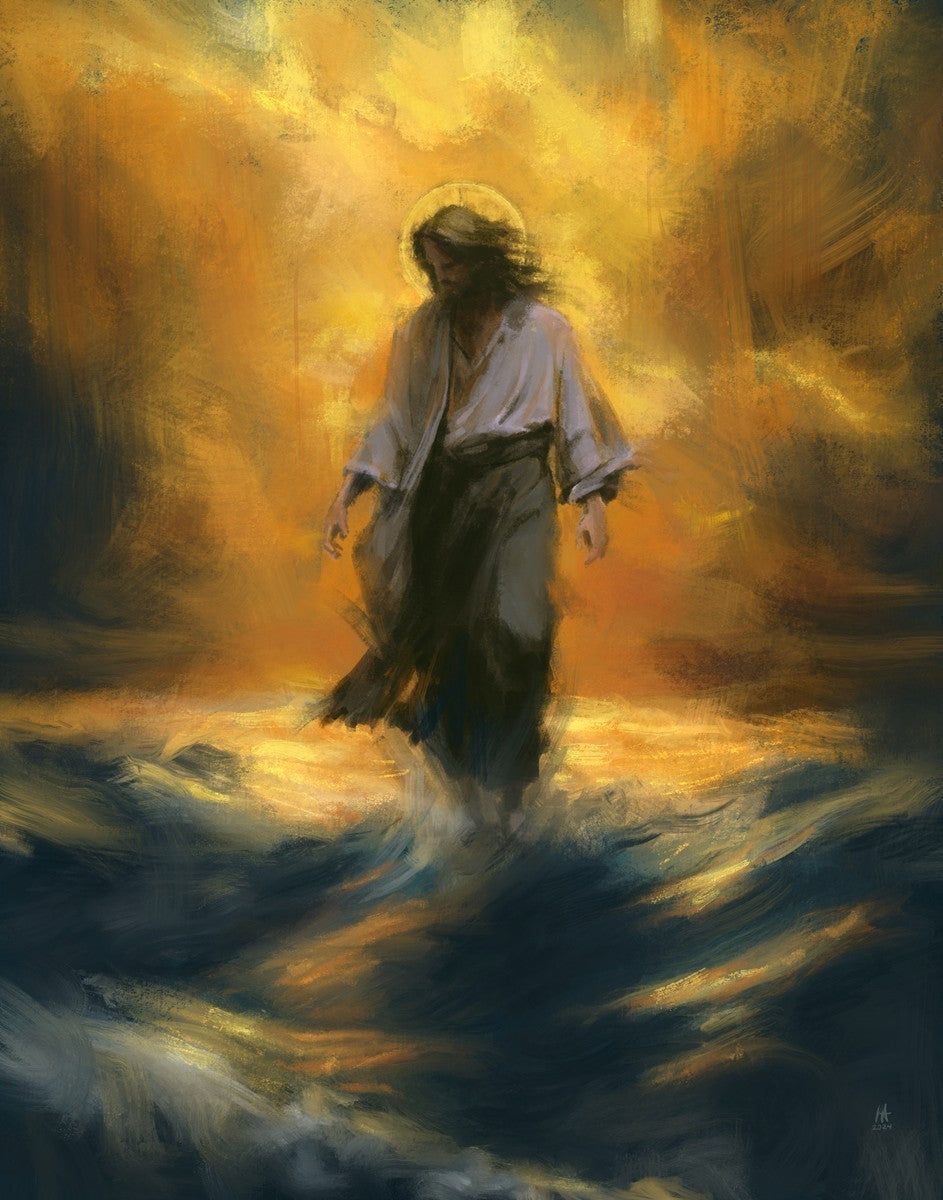 In the depths of a raging tempest, a figure emerges, a beacon of calm amidst the chaos. Inspired by Matthew 14:22-33, I labored to capture the profound contrast between the tempestuous sea and the serene figure of the Savior Jesus Christ. The disciples, adrift in a storm of fear and doubt, mirror our own human struggles. As Jesus walked towards them, his voice, a clarion call of courage, pierced the tempestuous roar, saying "Take courage! Be not afraid!" Jesus' presence, a beacon of strength and calm, offers a message of hope and reassurance.