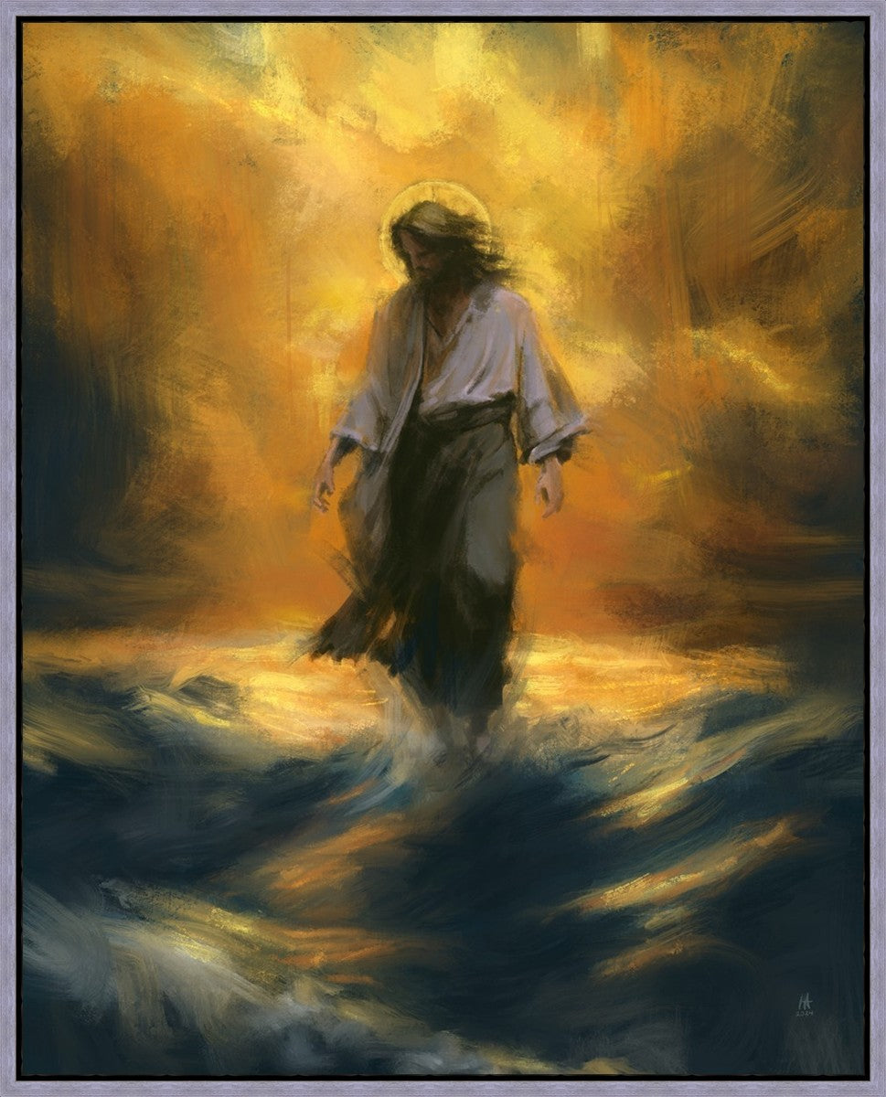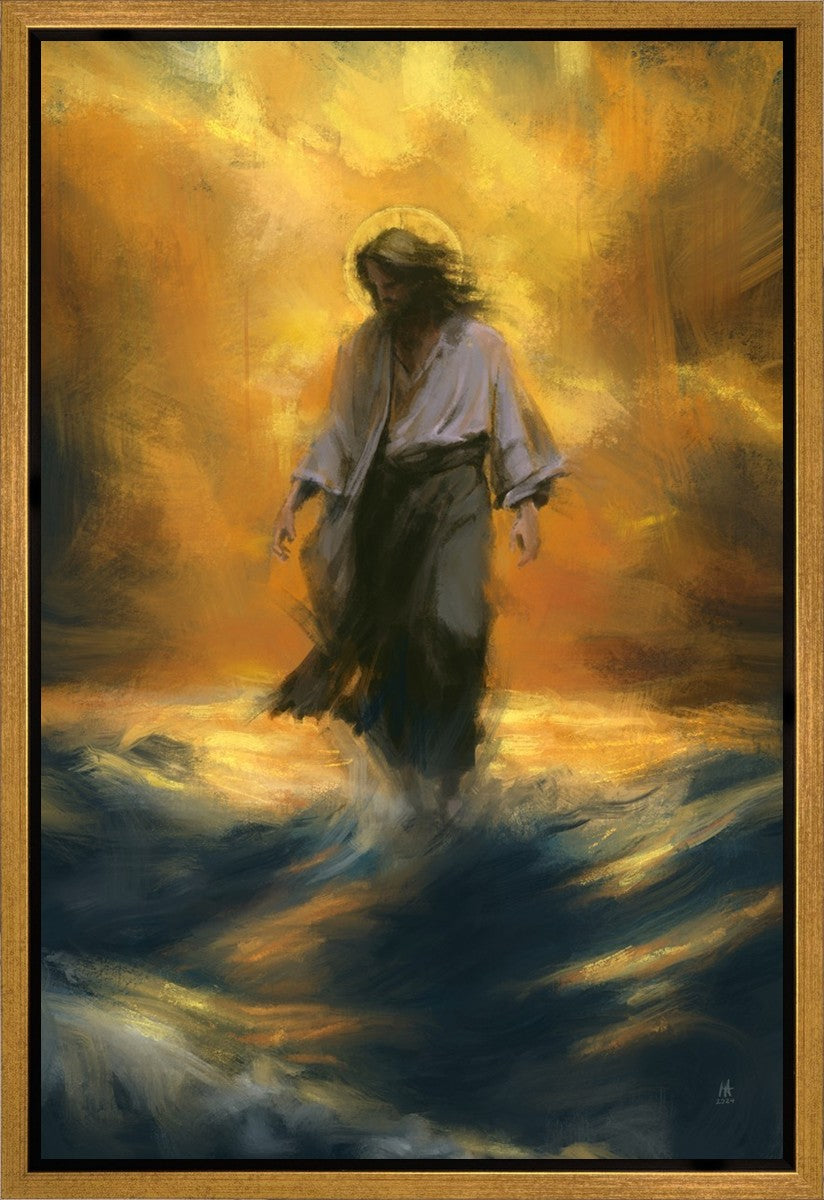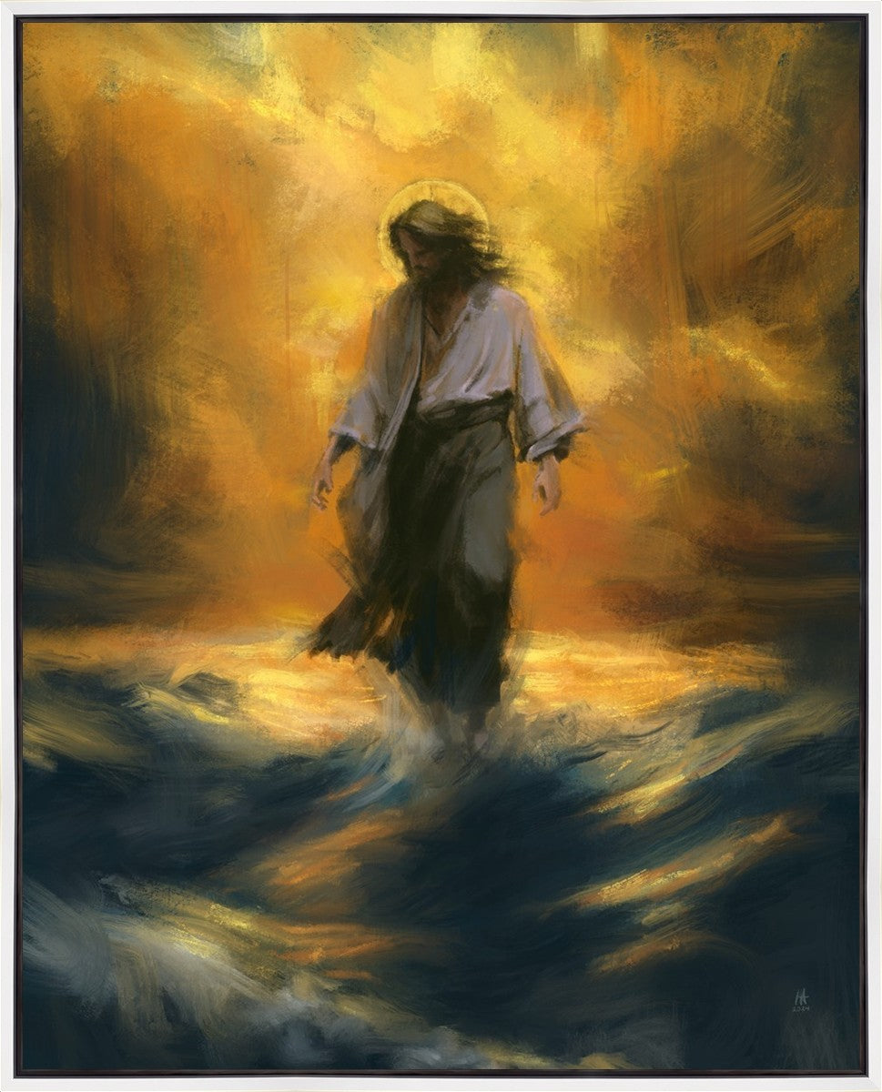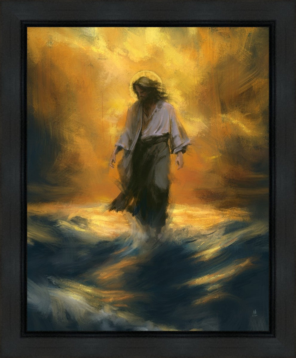 In the depths of a raging tempest, a figure emerges, a beacon of calm amidst the chaos. Inspired by Matthew 14:22-33, I labored to capture the profound contrast between the tempestuous sea and the serene figure of the Savior Jesus Christ. The disciples, adrift in a storm of fear and doubt, mirror our own human struggles. As Jesus walked towards them, his voice, a clarion call of courage, pierced the tempestuous roar, saying "Take courage! Be not afraid!" Jesus' presence, a beacon of strength and calm, offers a message of hope and reassurance.