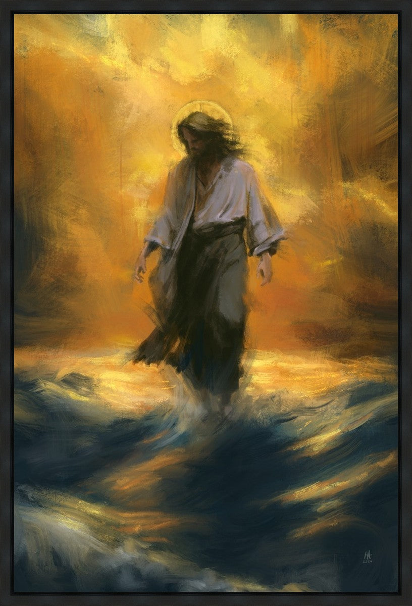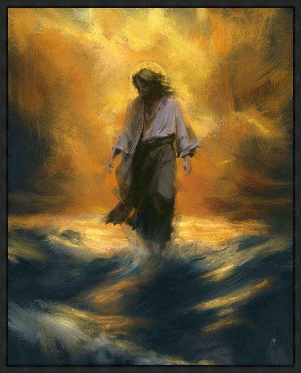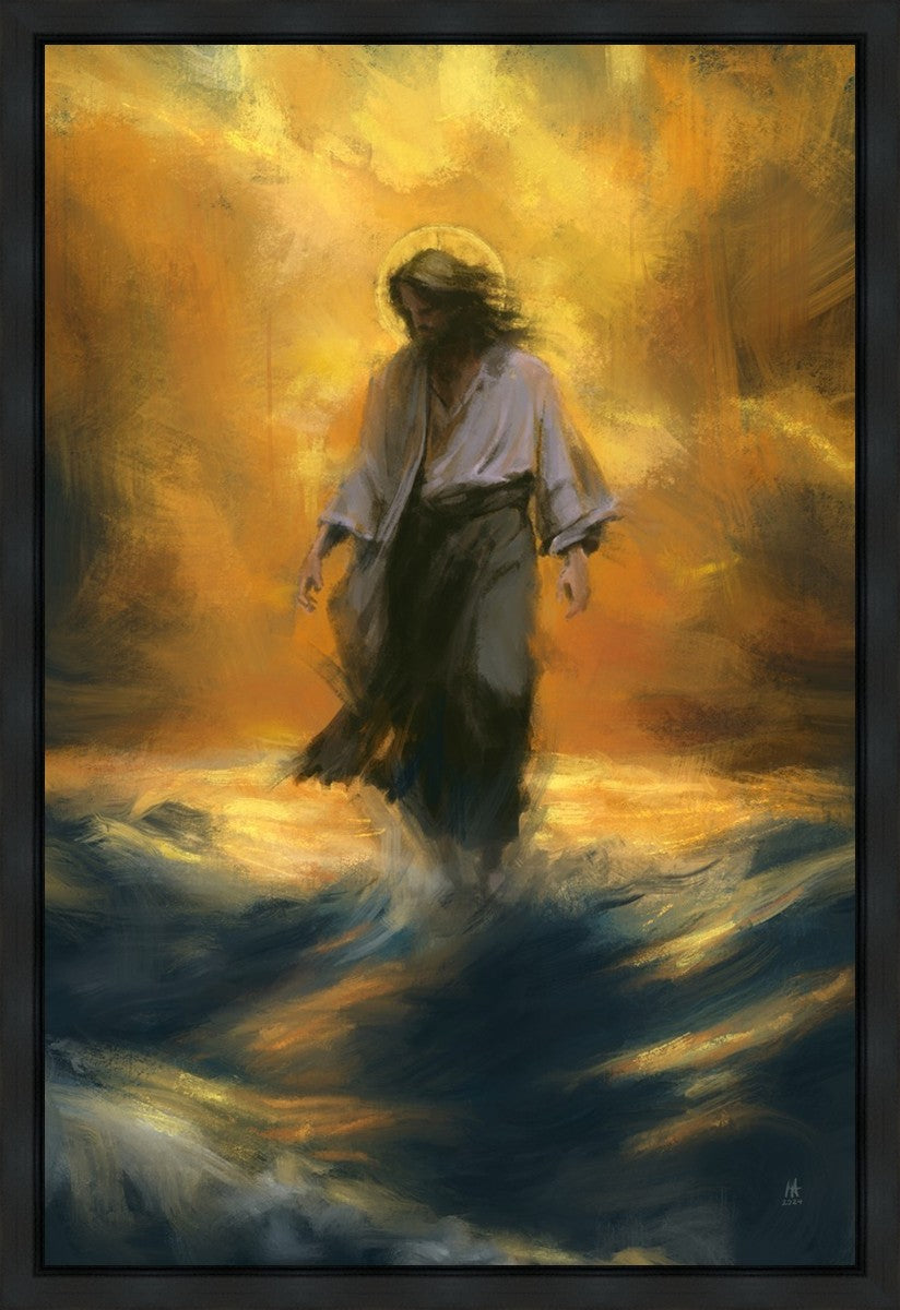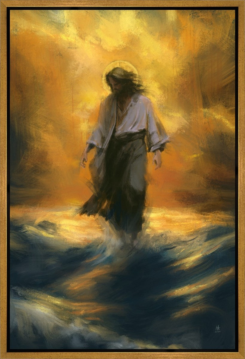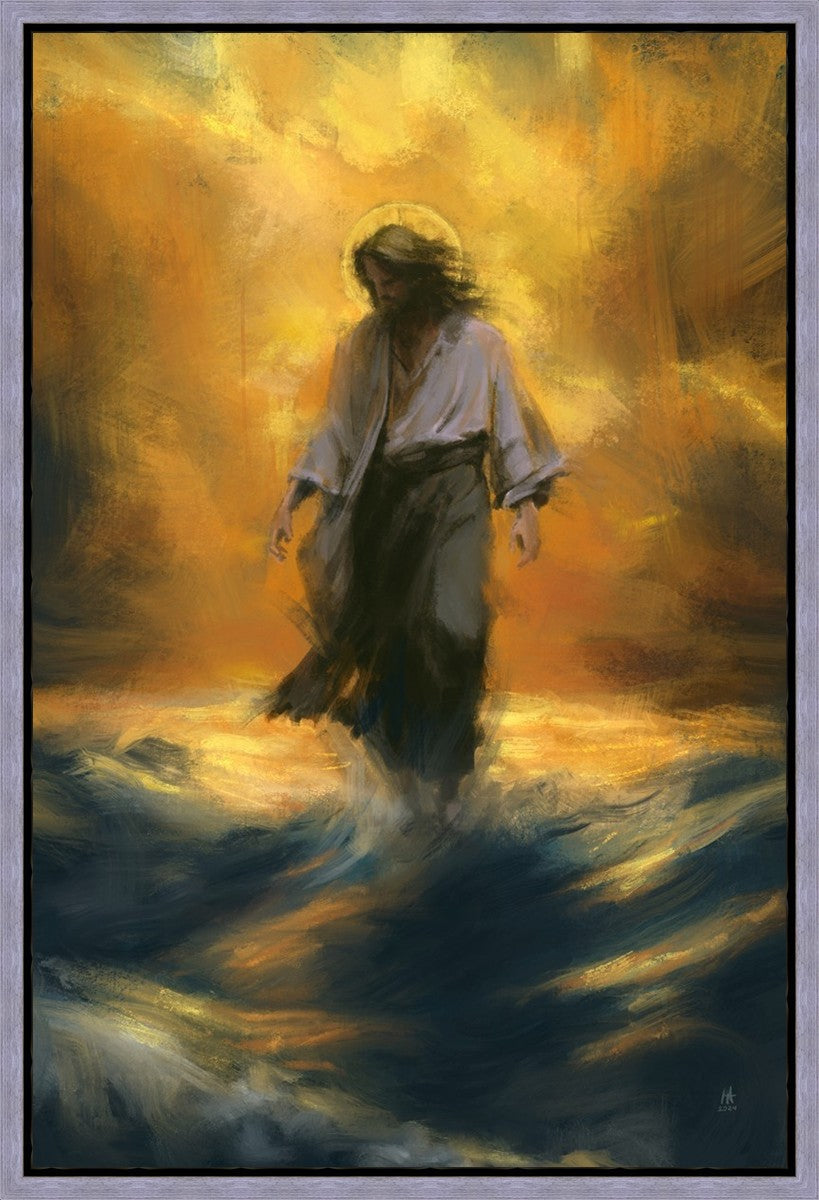 In the depths of a raging tempest, a figure emerges, a beacon of calm amidst the chaos. Inspired by Matthew 14:22-33, I labored to capture the profound contrast between the tempestuous sea and the serene figure of the Savior Jesus Christ. The disciples, adrift in a storm of fear and doubt, mirror our own human struggles. As Jesus walked towards them, his voice, a clarion call of courage, pierced the tempestuous roar, saying "Take courage! Be not afraid!" Jesus' presence, a beacon of strength and calm, offers a message of hope and reassurance.