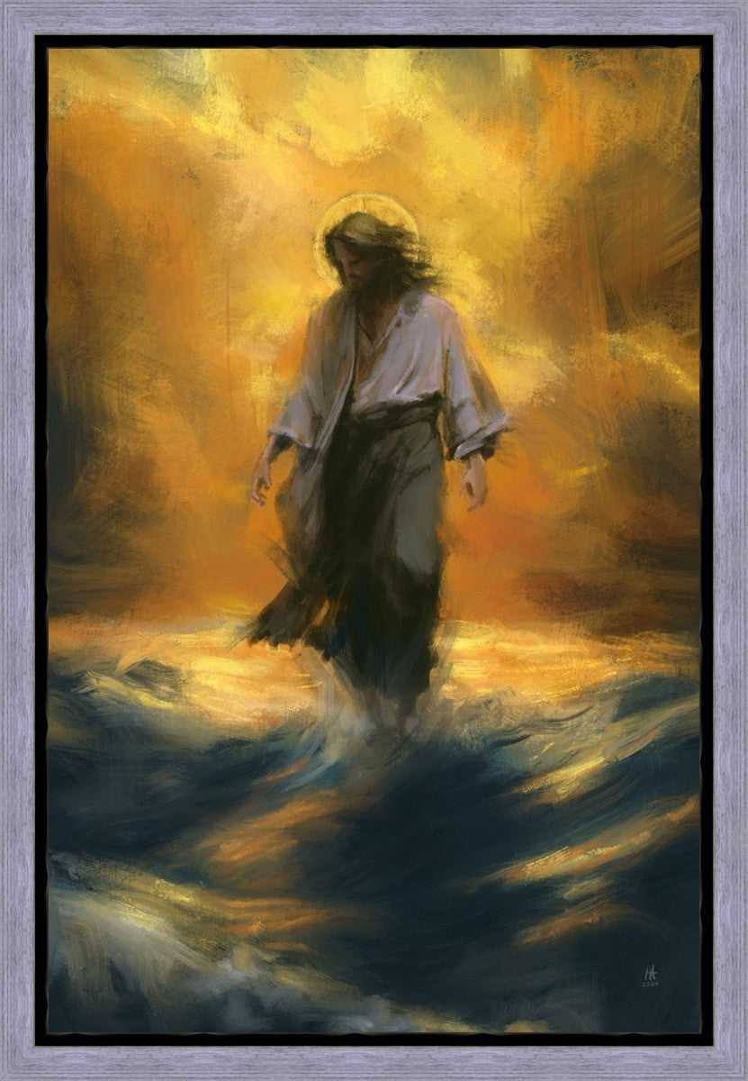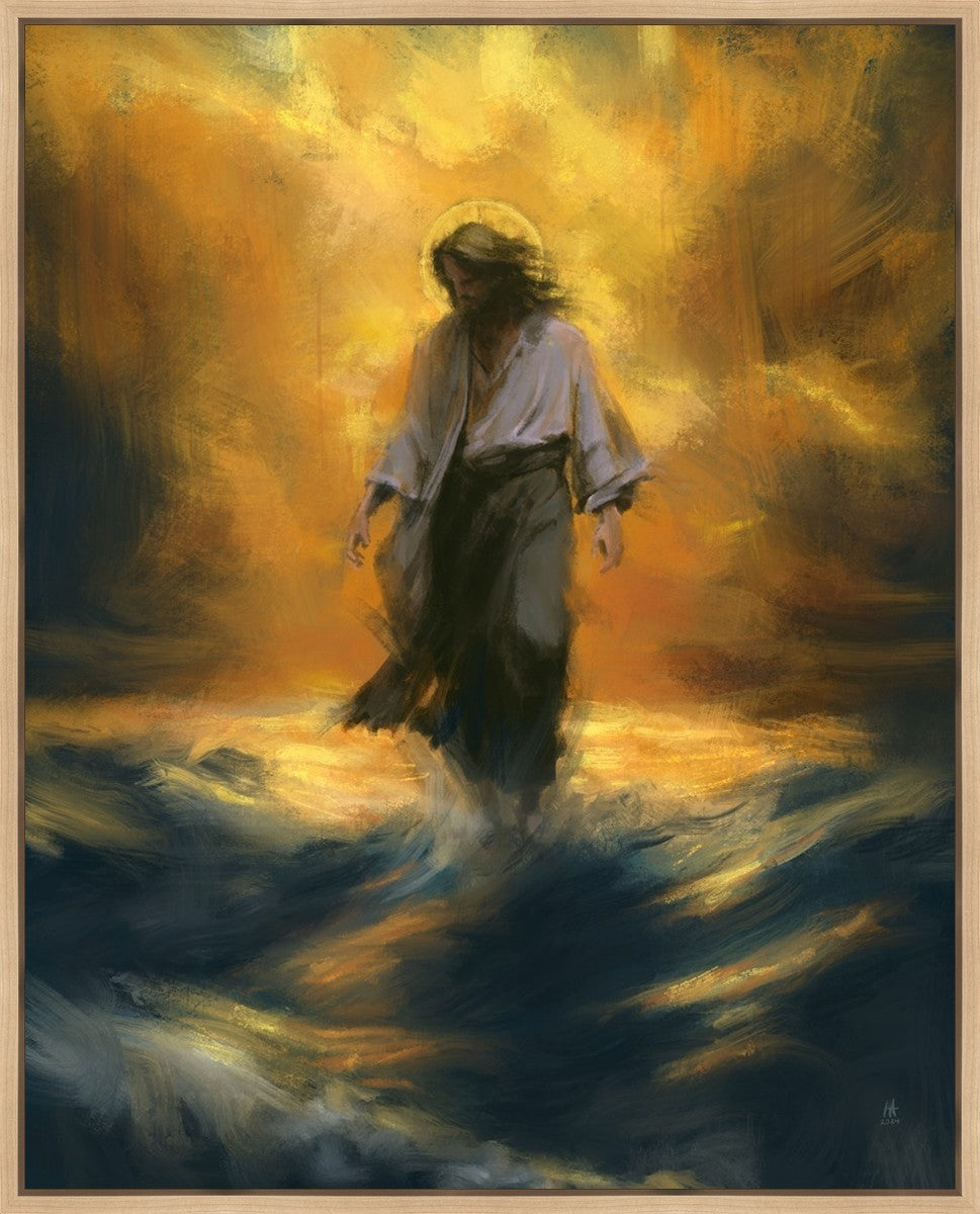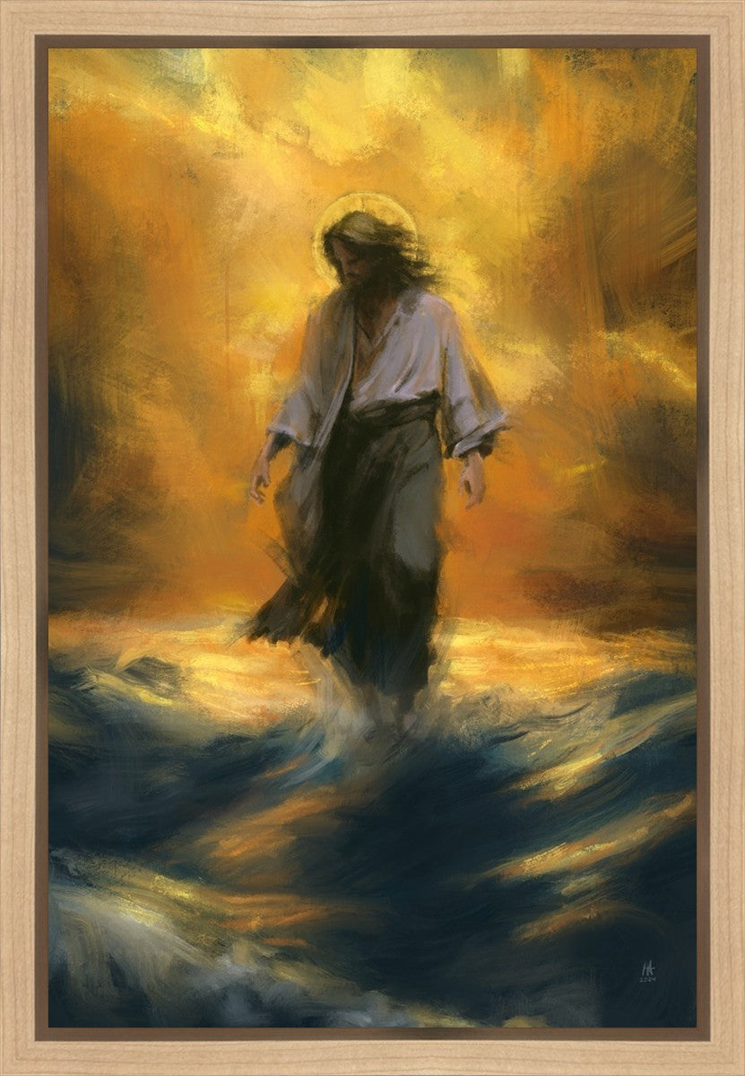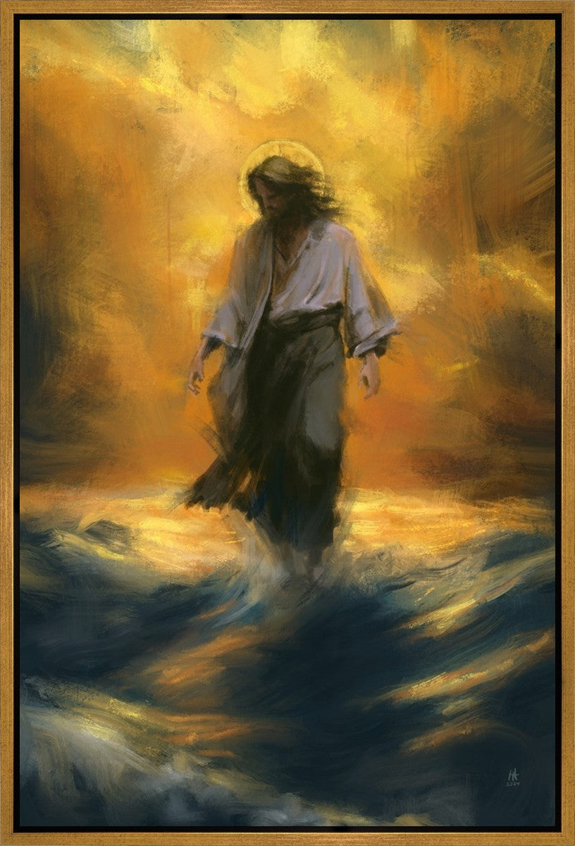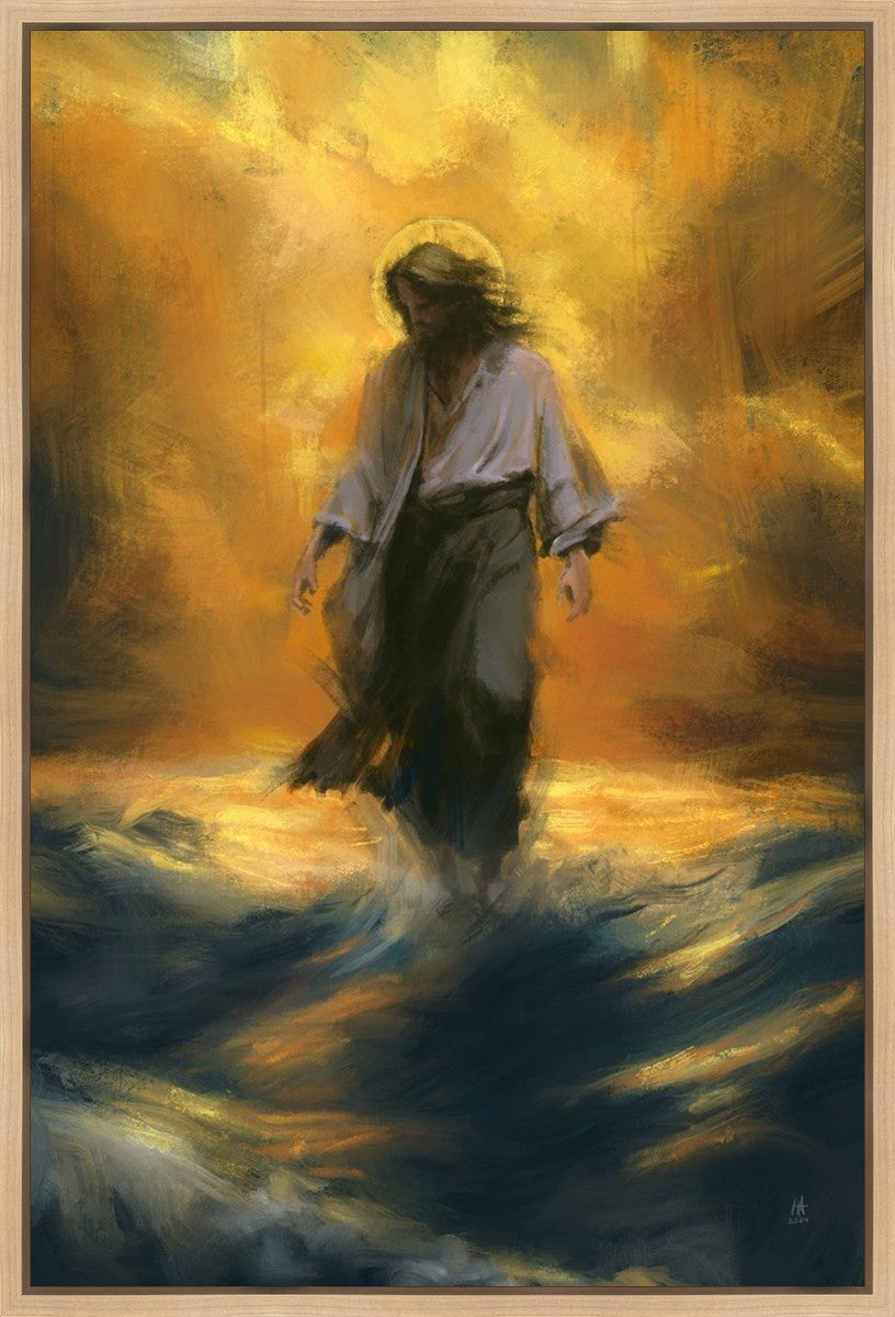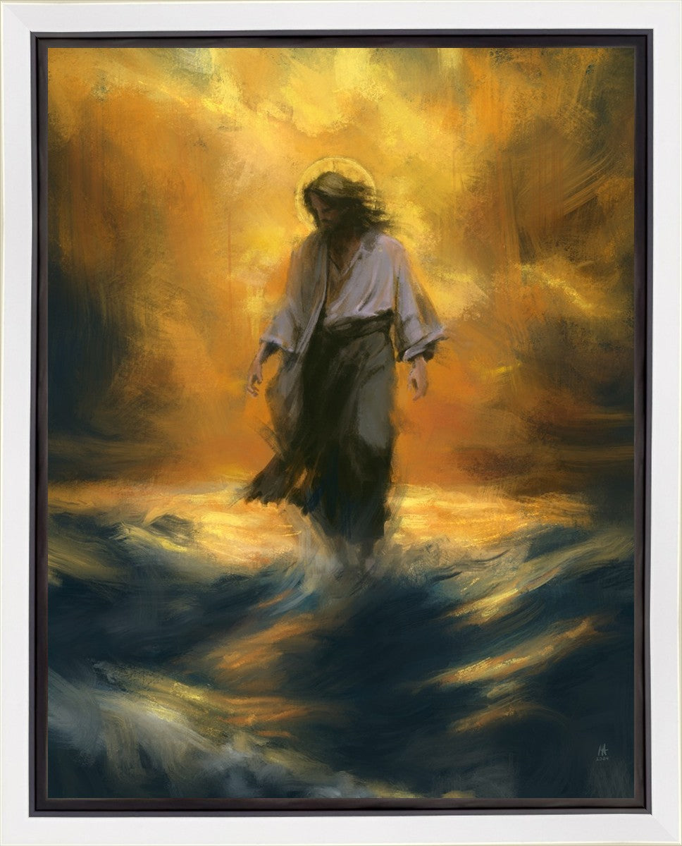 In the depths of a raging tempest, a figure emerges, a beacon of calm amidst the chaos. Inspired by Matthew 14:22-33, I labored to capture the profound contrast between the tempestuous sea and the serene figure of the Savior Jesus Christ. The disciples, adrift in a storm of fear and doubt, mirror our own human struggles. As Jesus walked towards them, his voice, a clarion call of courage, pierced the tempestuous roar, saying "Take courage! Be not afraid!" Jesus' presence, a beacon of strength and calm, offers a message of hope and reassurance.