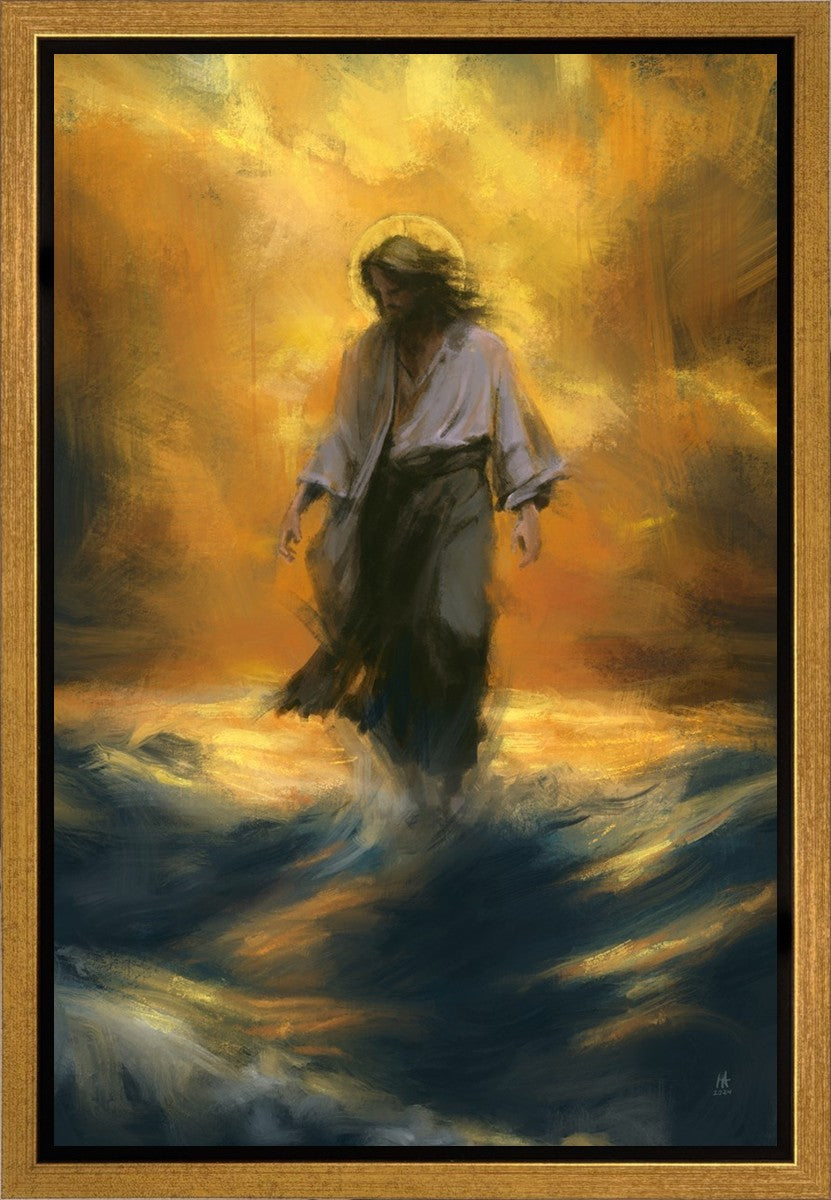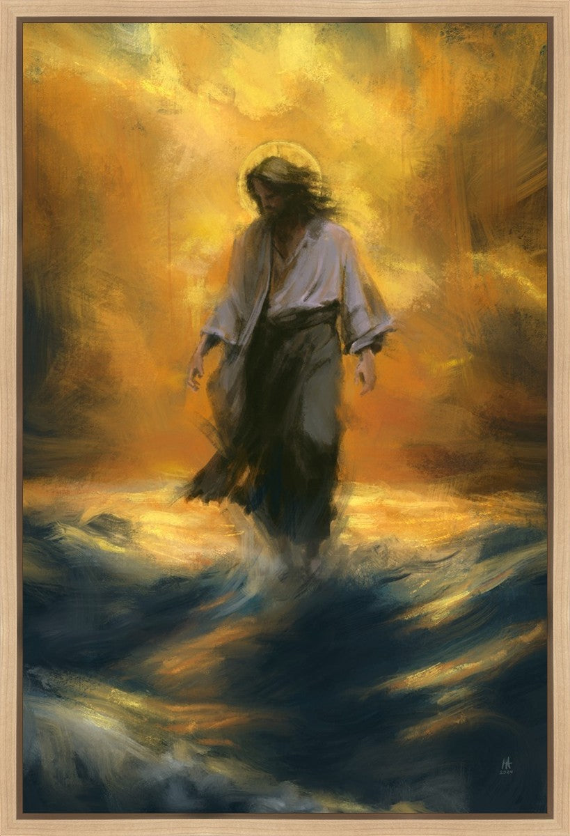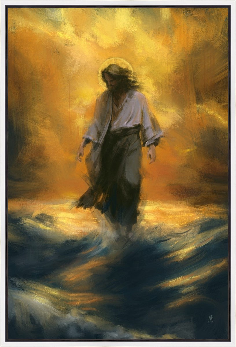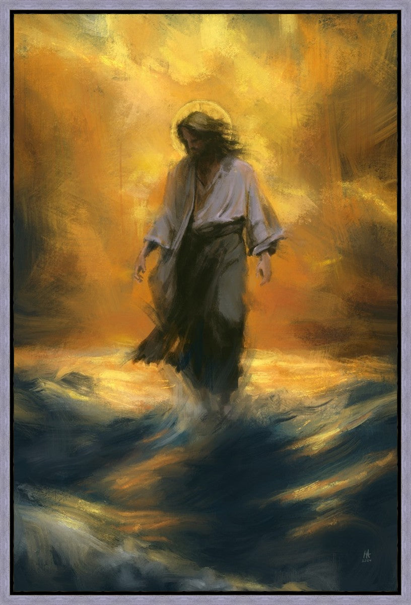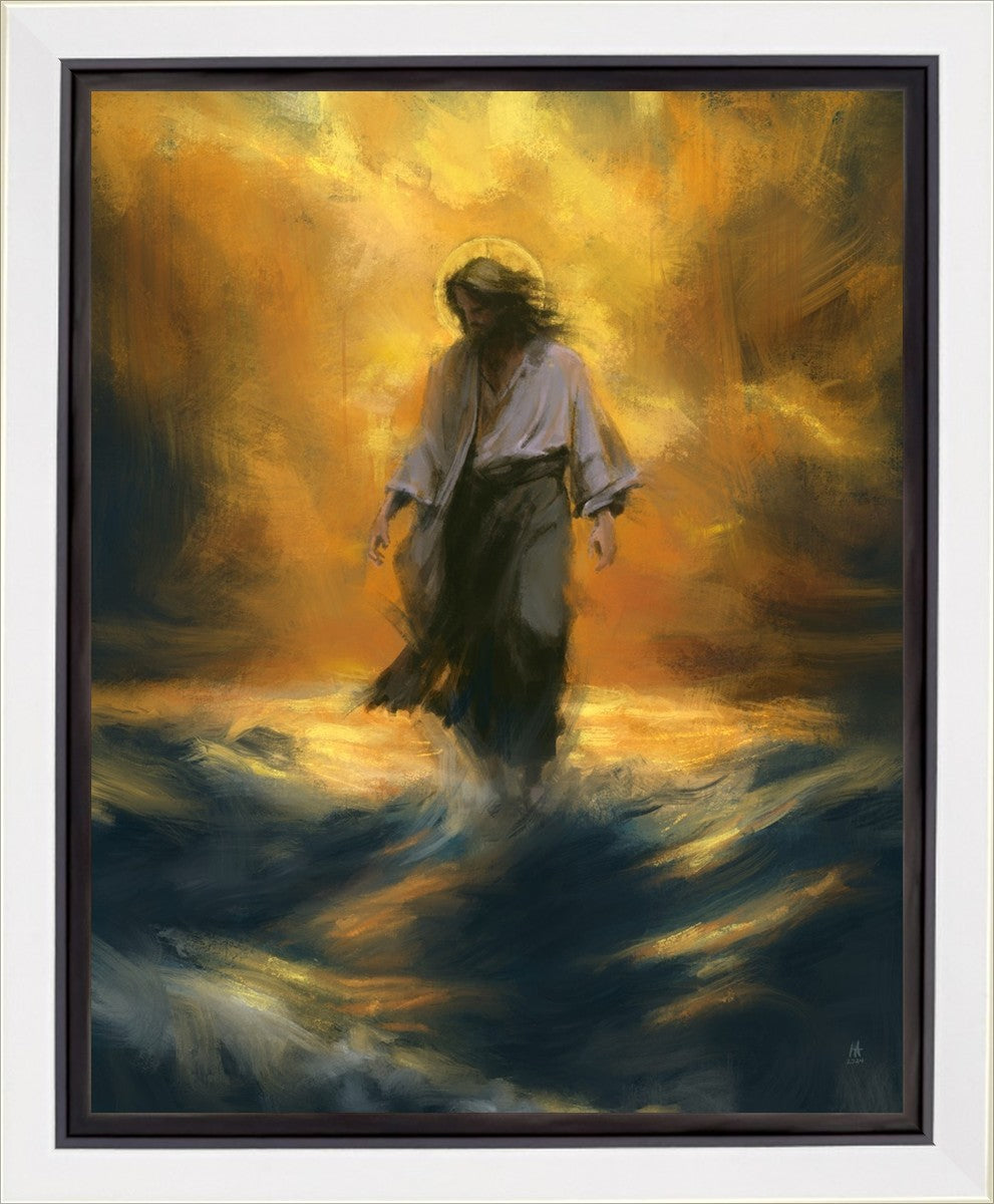 In the depths of a raging tempest, a figure emerges, a beacon of calm amidst the chaos. Inspired by Matthew 14:22-33, I labored to capture the profound contrast between the tempestuous sea and the serene figure of the Savior Jesus Christ. The disciples, adrift in a storm of fear and doubt, mirror our own human struggles. As Jesus walked towards them, his voice, a clarion call of courage, pierced the tempestuous roar, saying "Take courage! Be not afraid!" Jesus' presence, a beacon of strength and calm, offers a message of hope and reassurance.