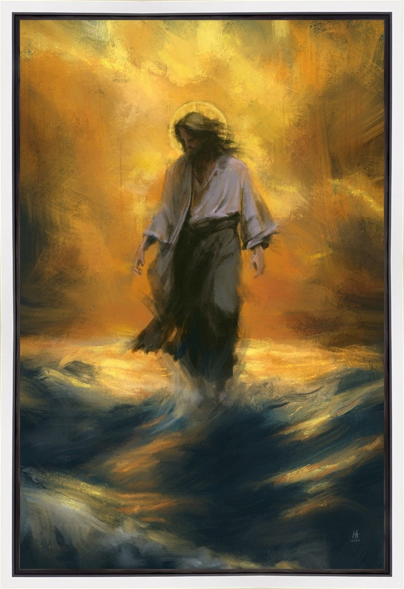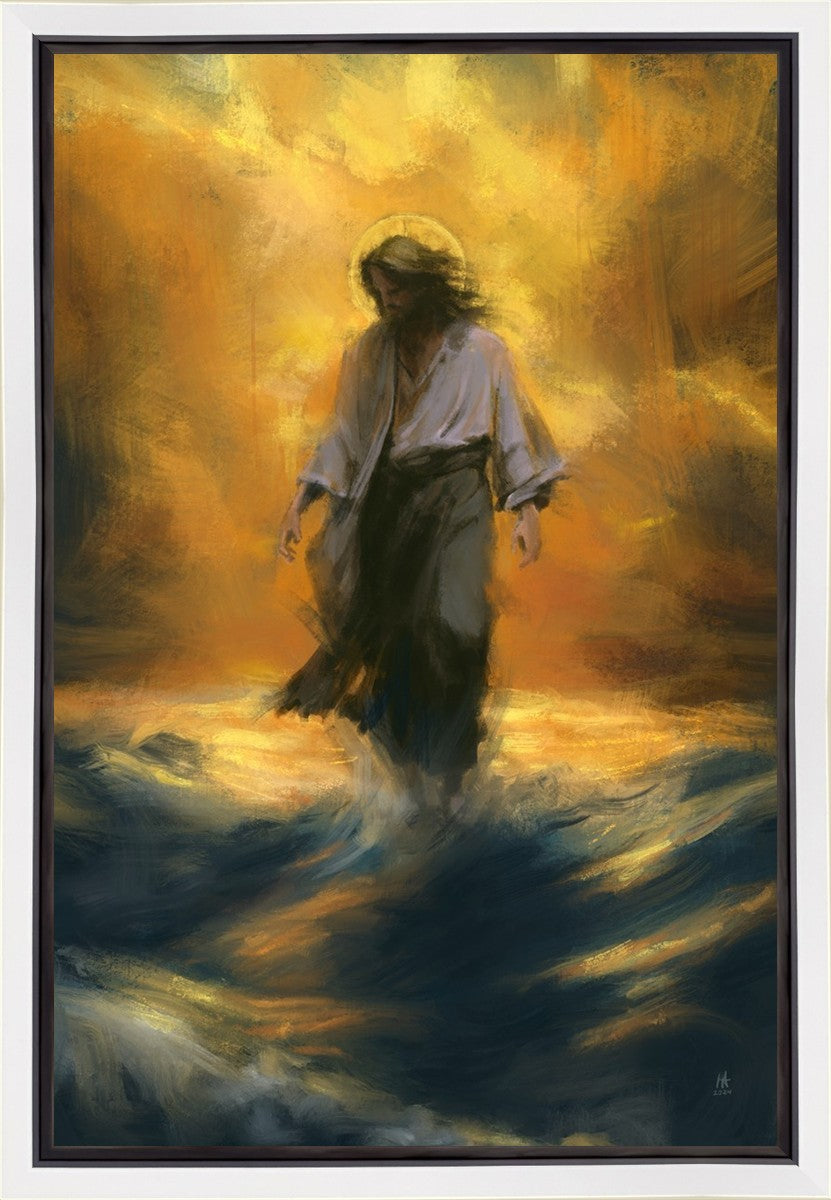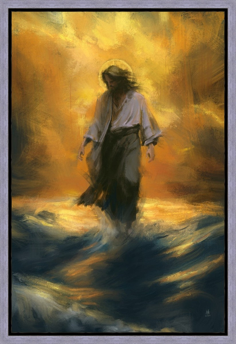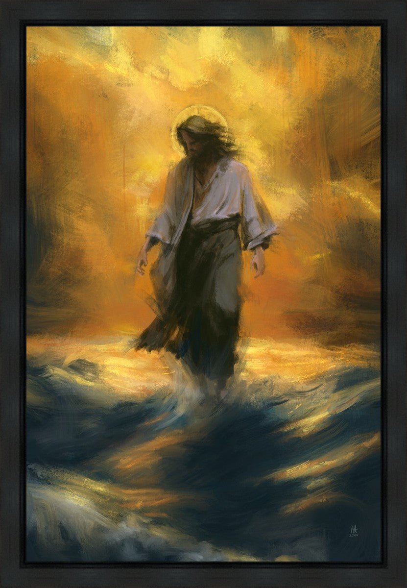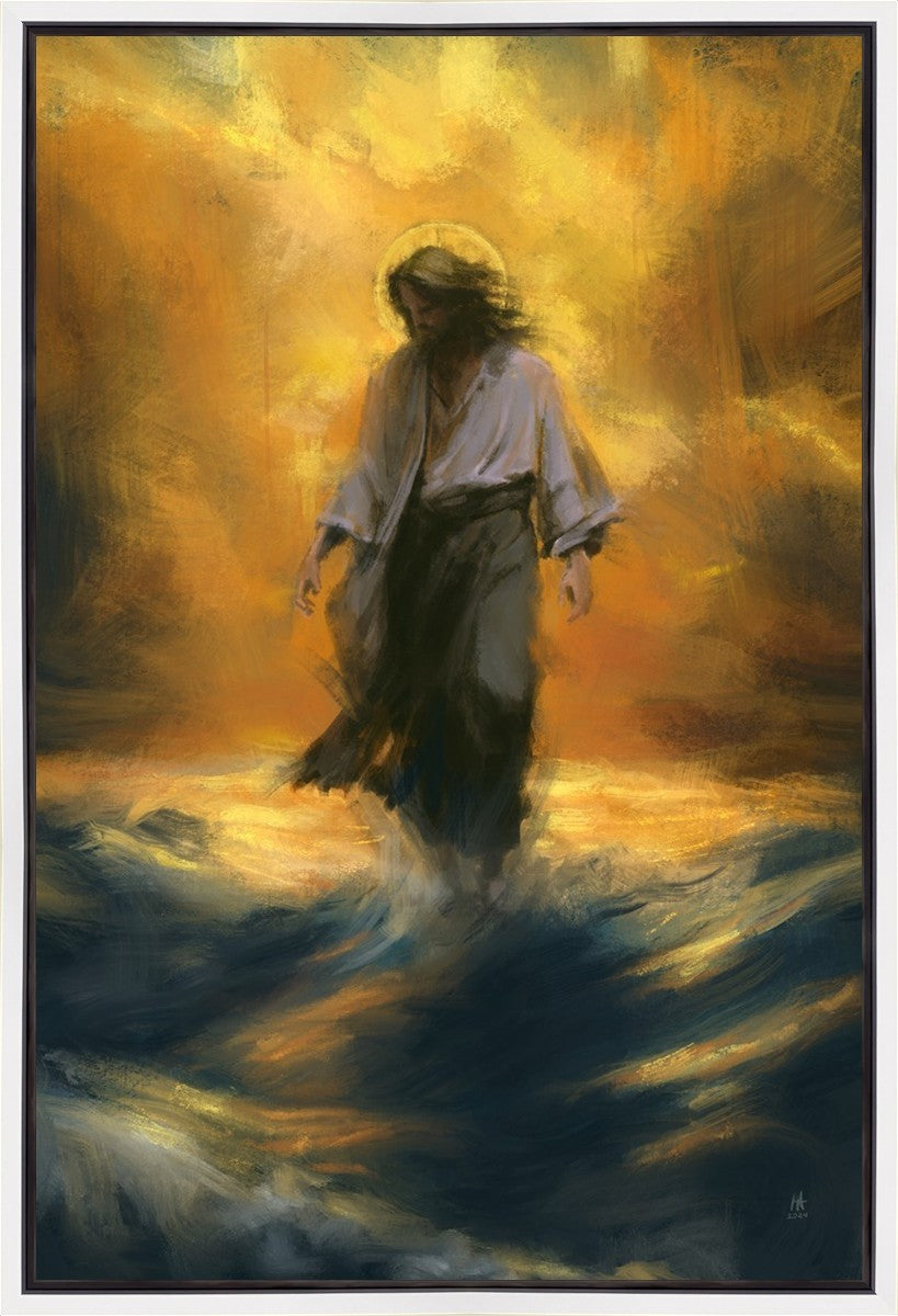 In the depths of a raging tempest, a figure emerges, a beacon of calm amidst the chaos. Inspired by Matthew 14:22-33, I labored to capture the profound contrast between the tempestuous sea and the serene figure of the Savior Jesus Christ. The disciples, adrift in a storm of fear and doubt, mirror our own human struggles. As Jesus walked towards them, his voice, a clarion call of courage, pierced the tempestuous roar, saying "Take courage! Be not afraid!" Jesus' presence, a beacon of strength and calm, offers a message of hope and reassurance.