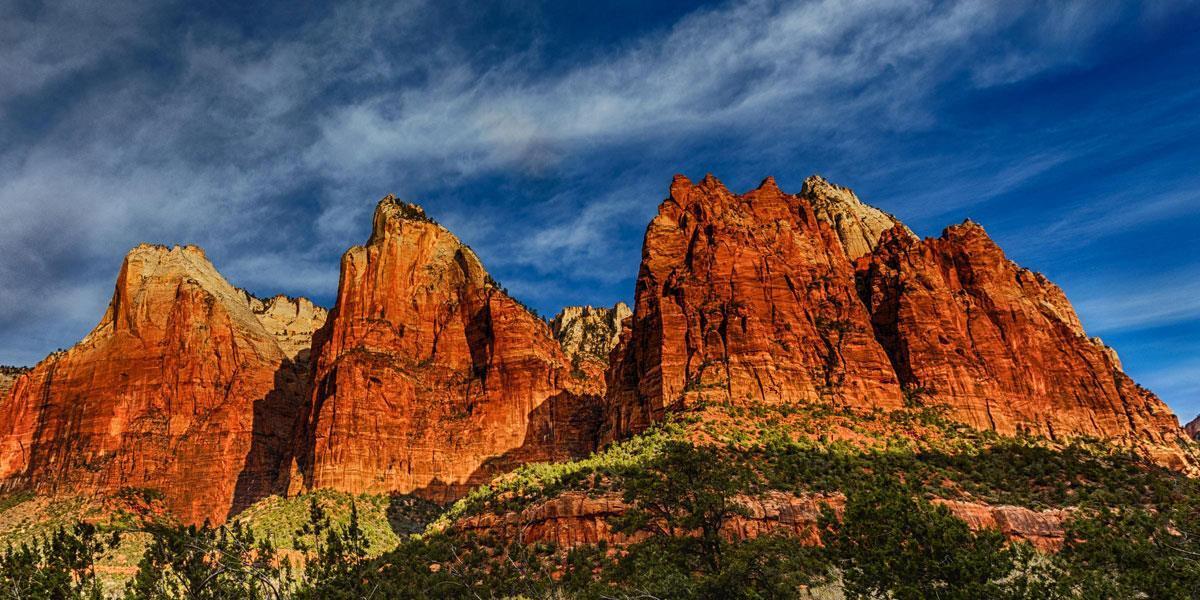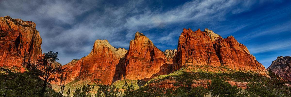 Springtime shot of the Three Patriarchs Of in Zion's National Park.