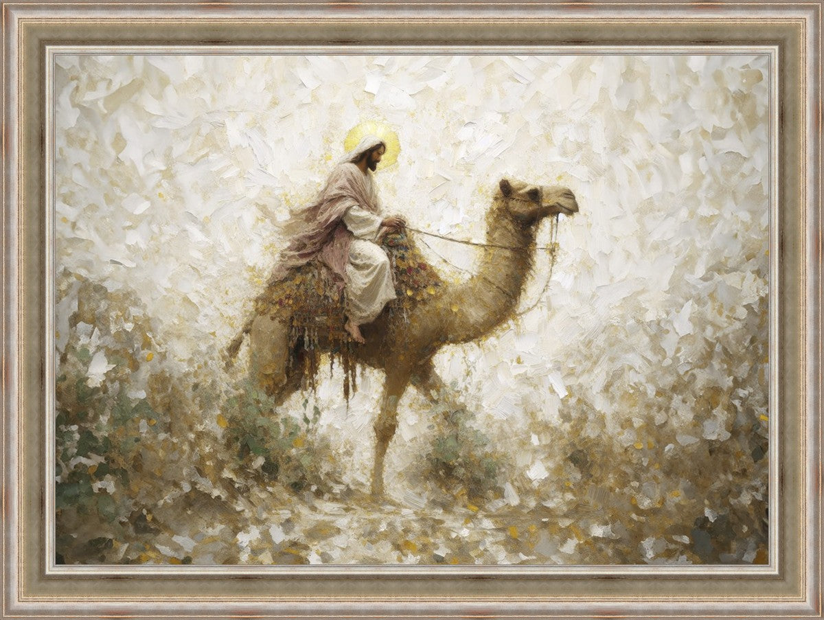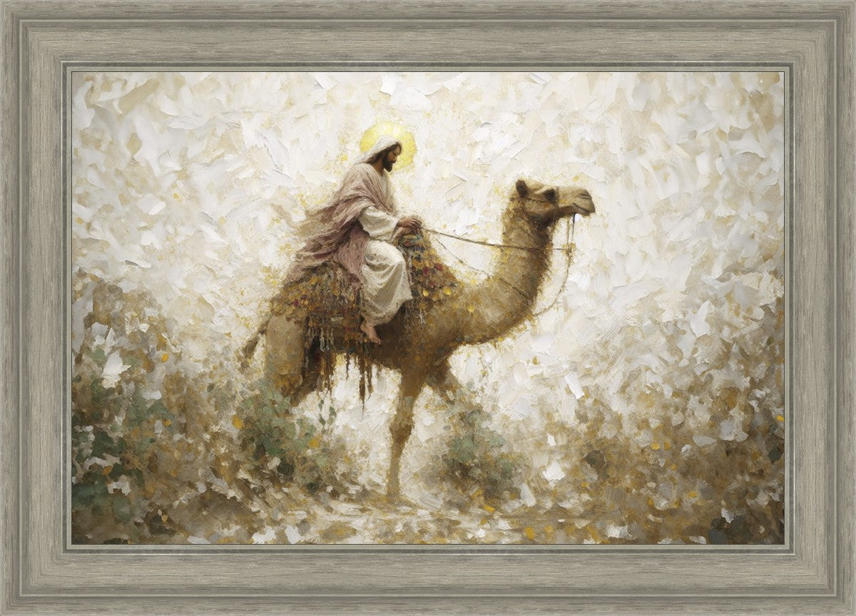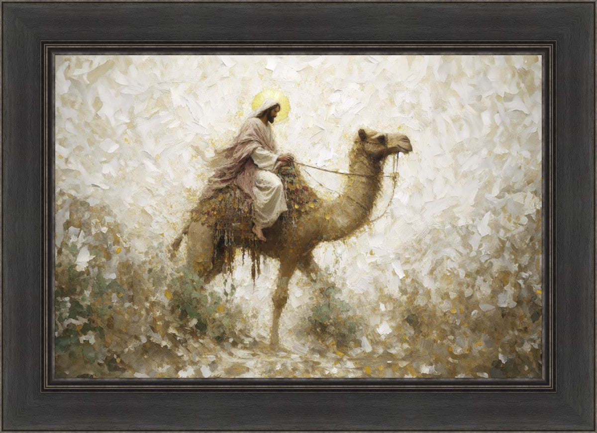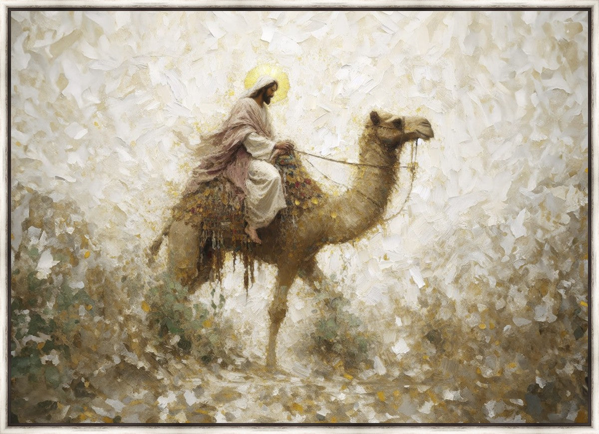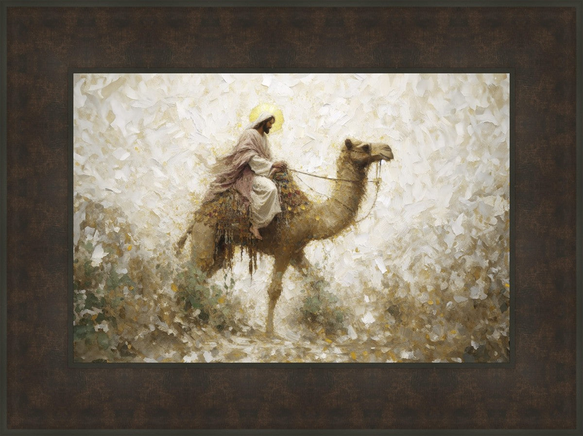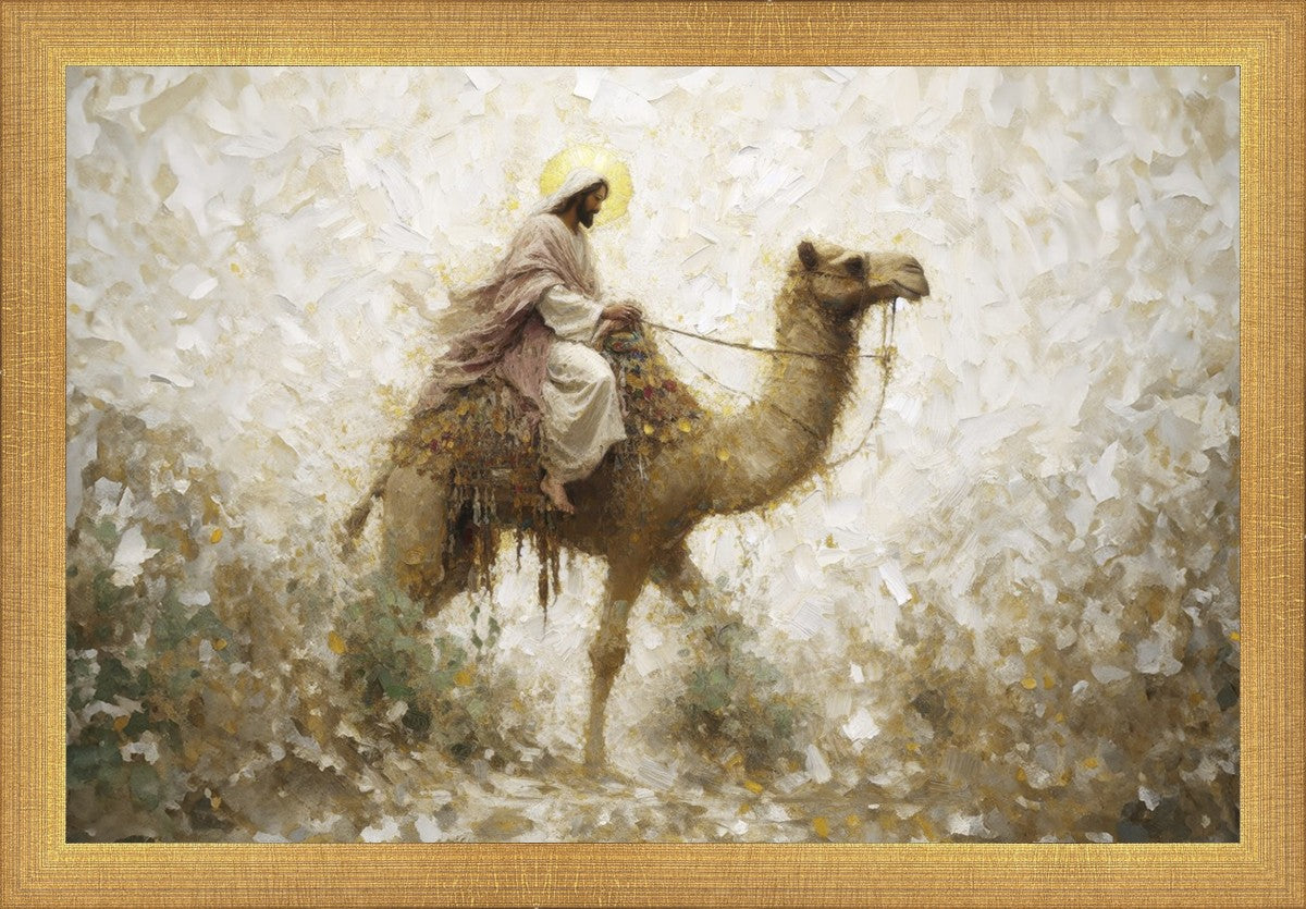 But beyond the powerful teachings and miracles, Jesus also lived a real, everyday life. He walked dusty roads, shared meals with friends, and, who knows? Maybe He even hitched a ride on a camel now and then. This piece imagines one of those simple, in-between moments—a reminder that while Christ was the Son of God, He also experienced the ordinary, just like us.
