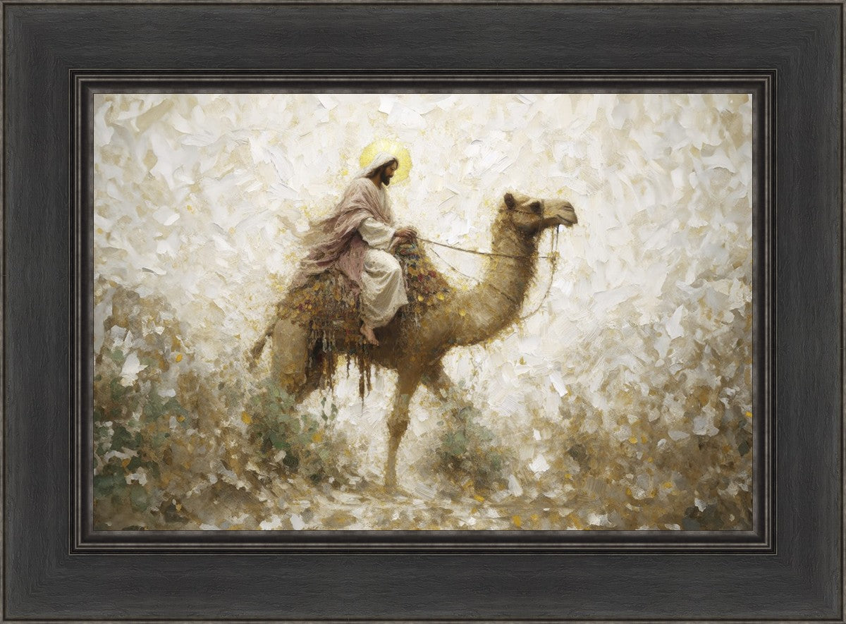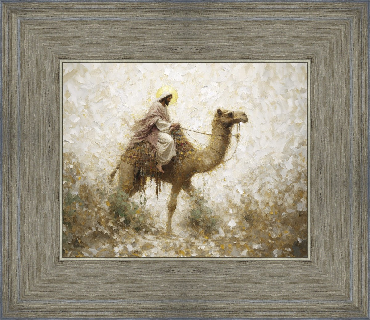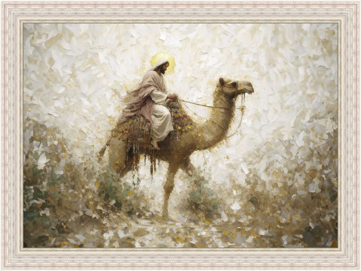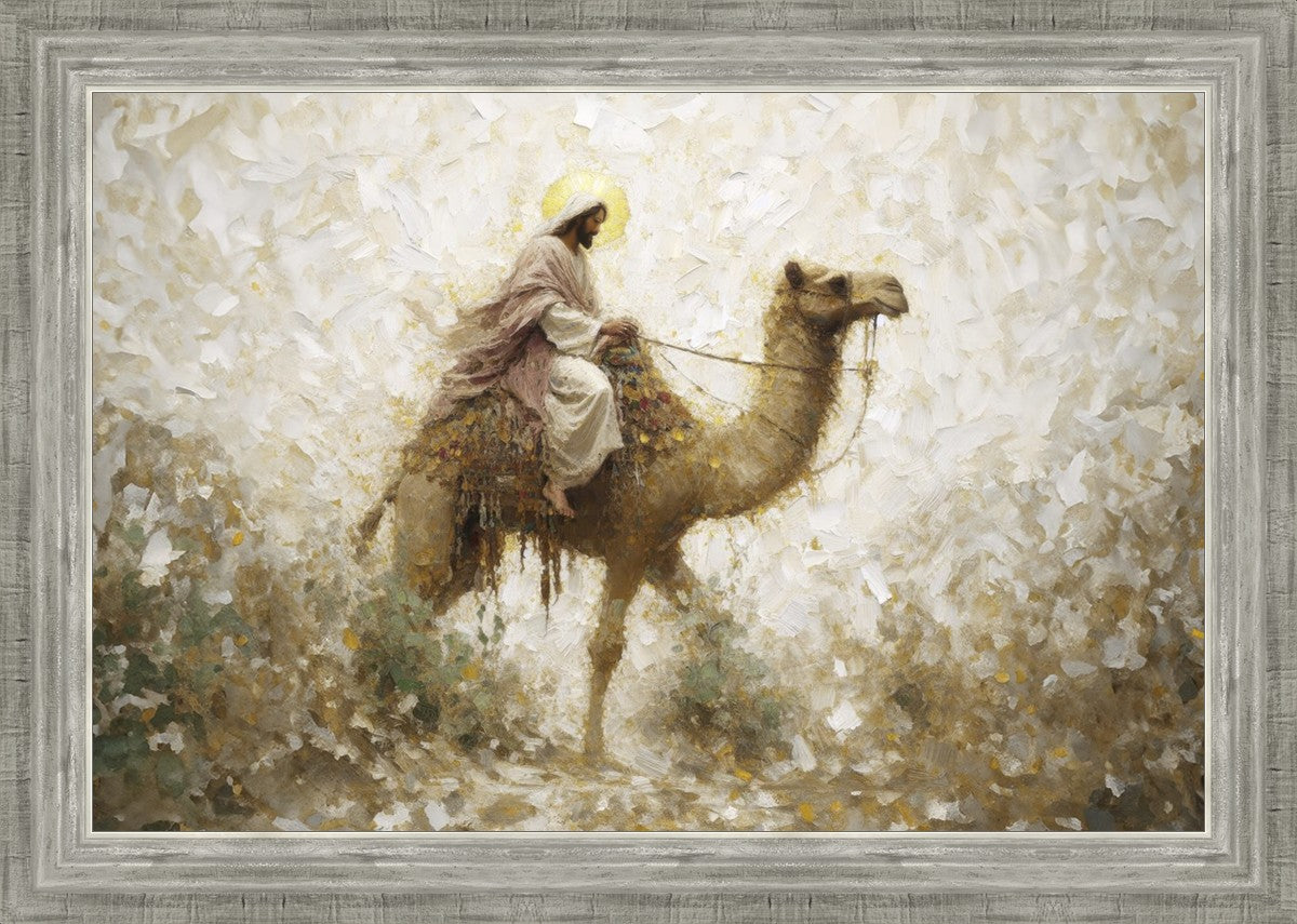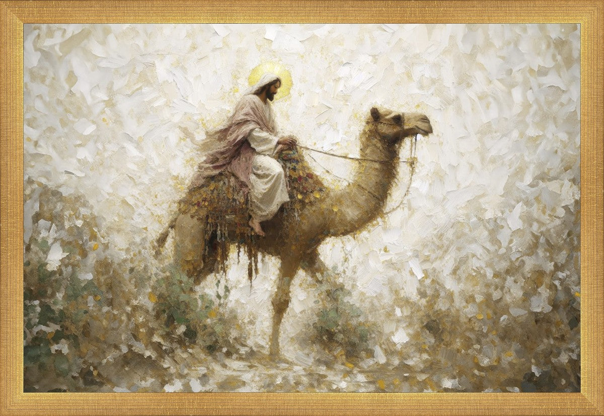 But beyond the powerful teachings and miracles, Jesus also lived a real, everyday life. He walked dusty roads, shared meals with friends, and, who knows? Maybe He even hitched a ride on a camel now and then. This piece imagines one of those simple, in-between moments—a reminder that while Christ was the Son of God, He also experienced the ordinary, just like us.