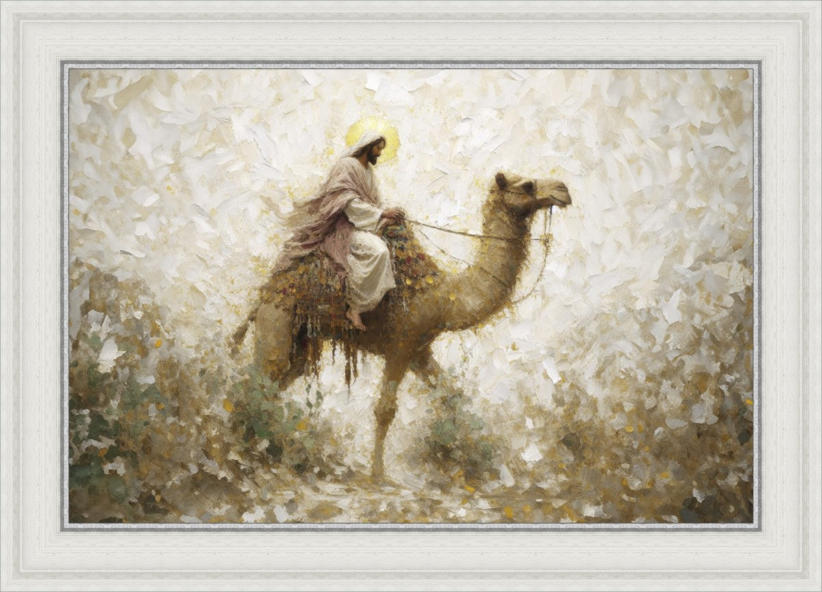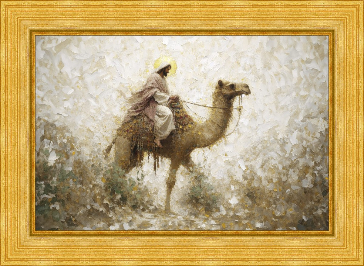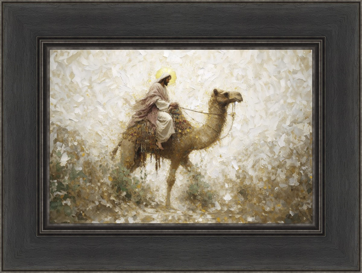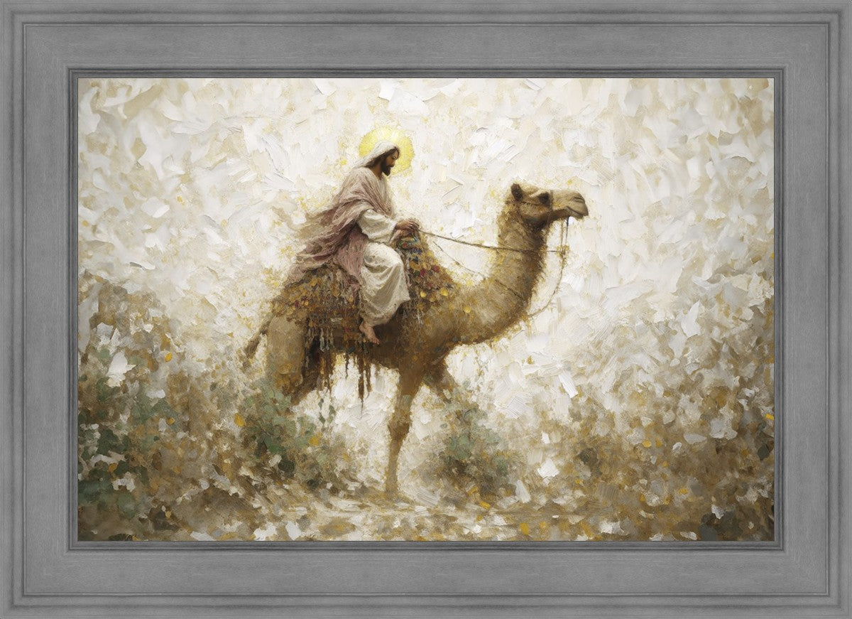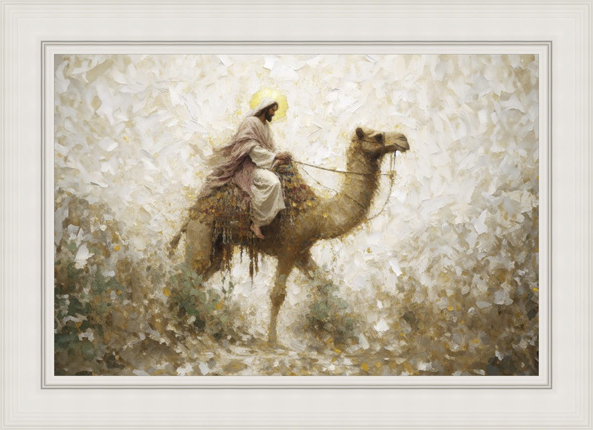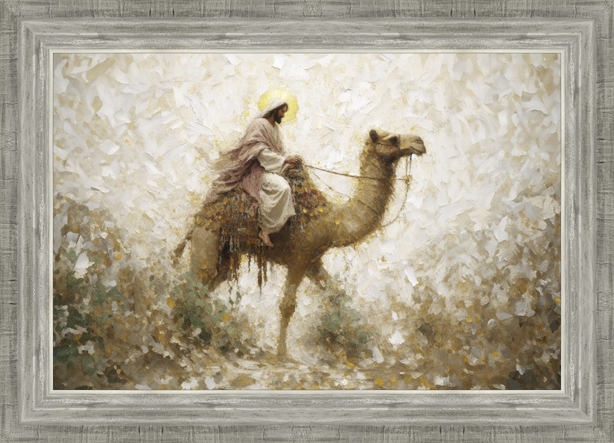 But beyond the powerful teachings and miracles, Jesus also lived a real, everyday life. He walked dusty roads, shared meals with friends, and, who knows? Maybe He even hitched a ride on a camel now and then. This piece imagines one of those simple, in-between moments—a reminder that while Christ was the Son of God, He also experienced the ordinary, just like us.