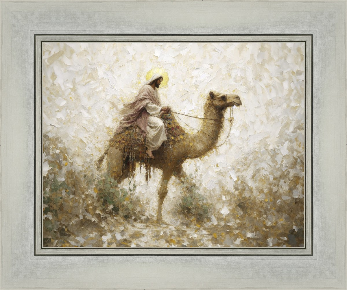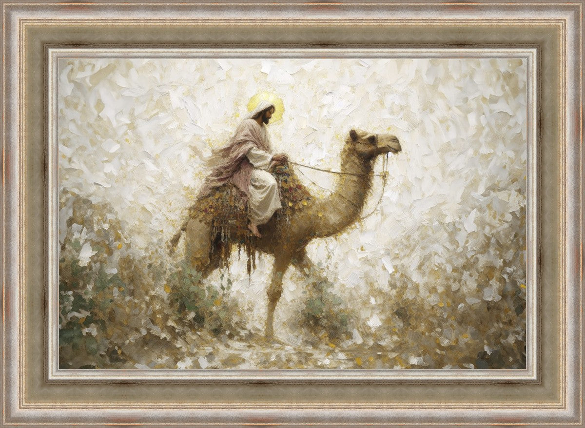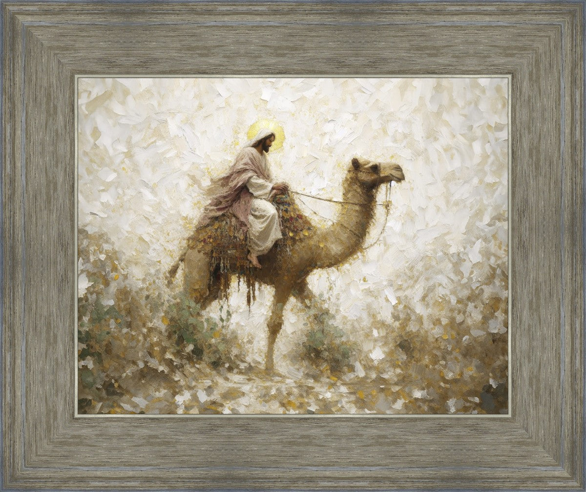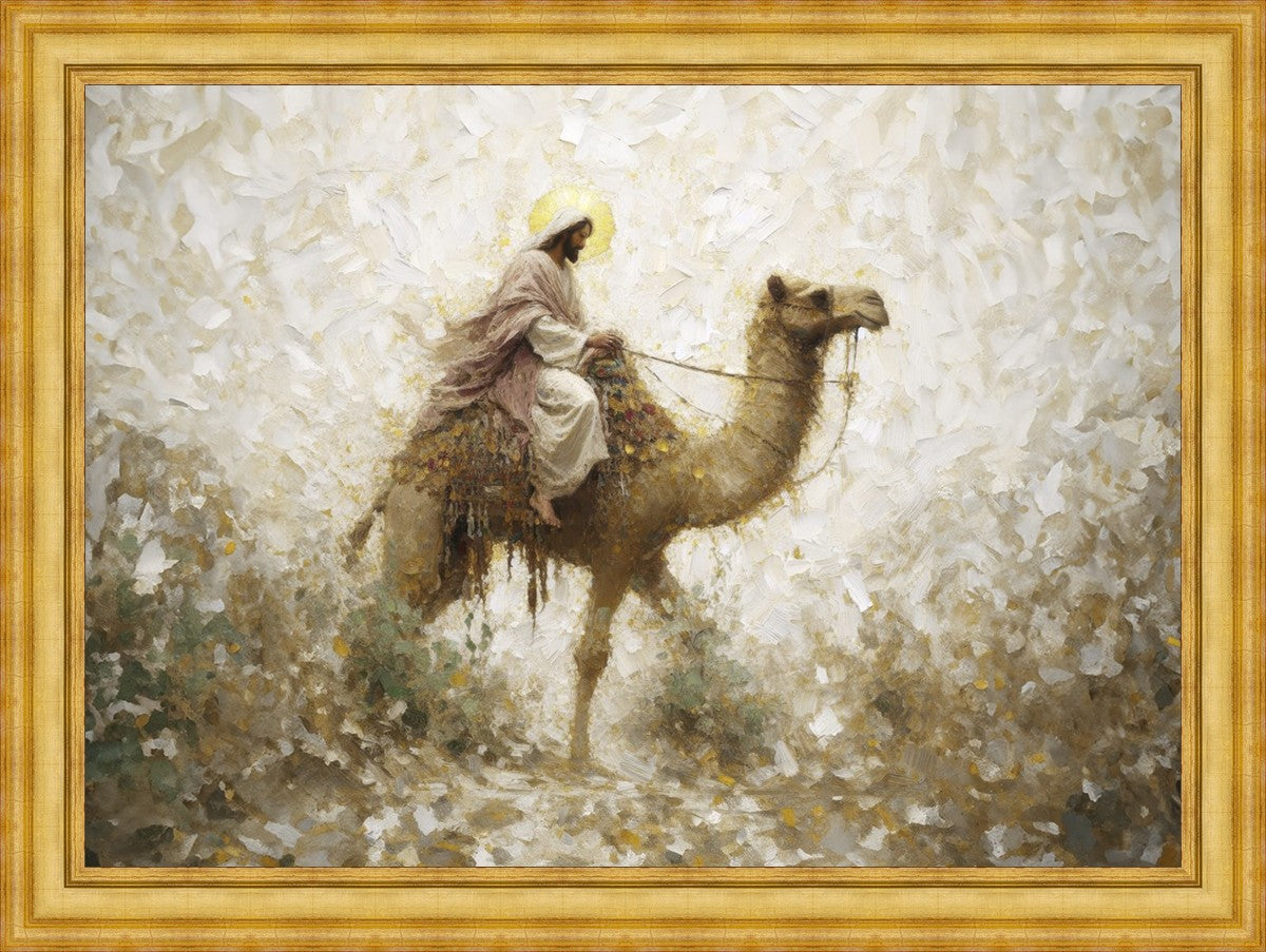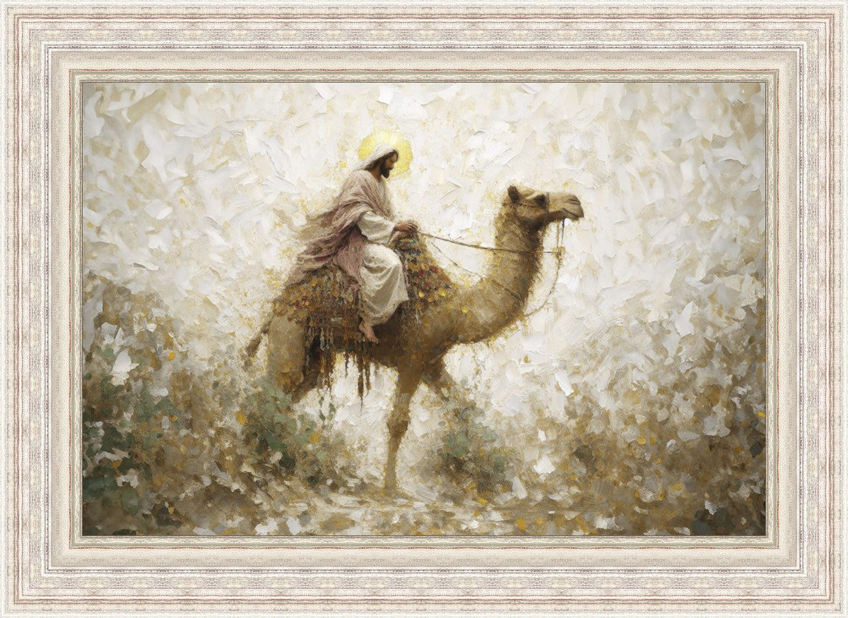 But beyond the powerful teachings and miracles, Jesus also lived a real, everyday life. He walked dusty roads, shared meals with friends, and, who knows? Maybe He even hitched a ride on a camel now and then. This piece imagines one of those simple, in-between moments—a reminder that while Christ was the Son of God, He also experienced the ordinary, just like us.