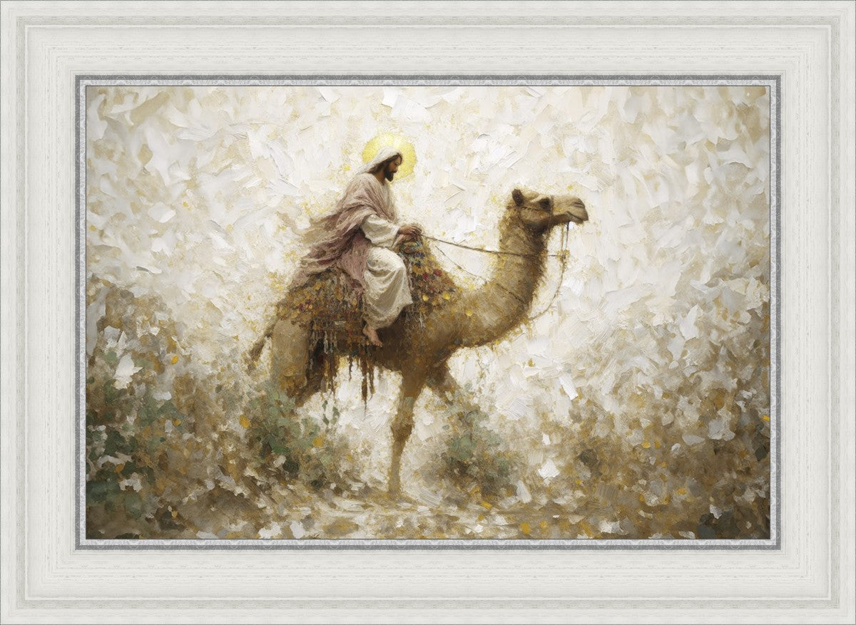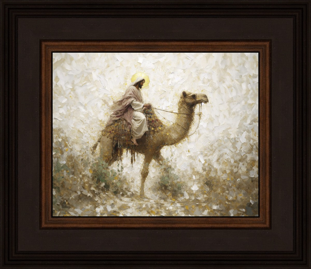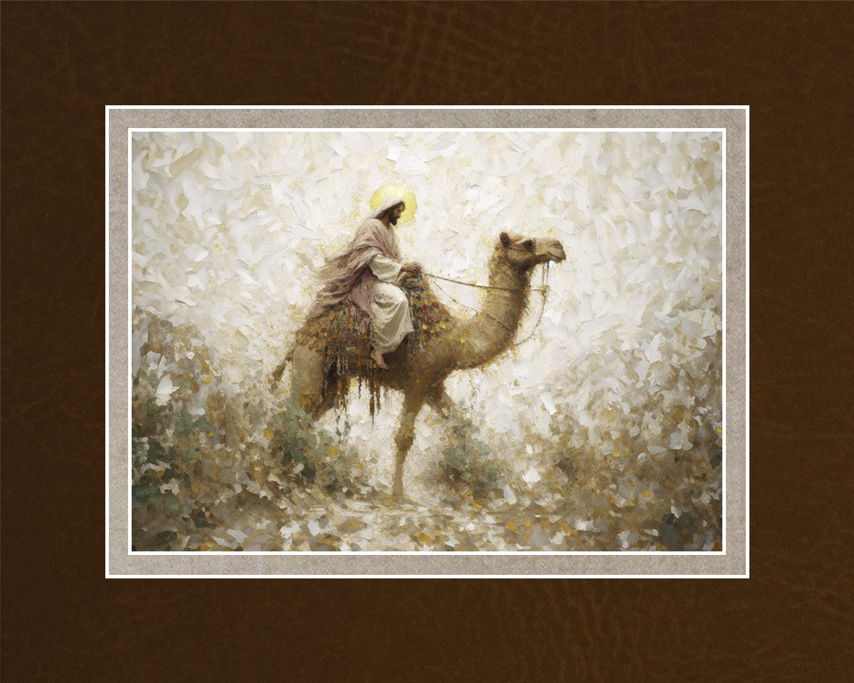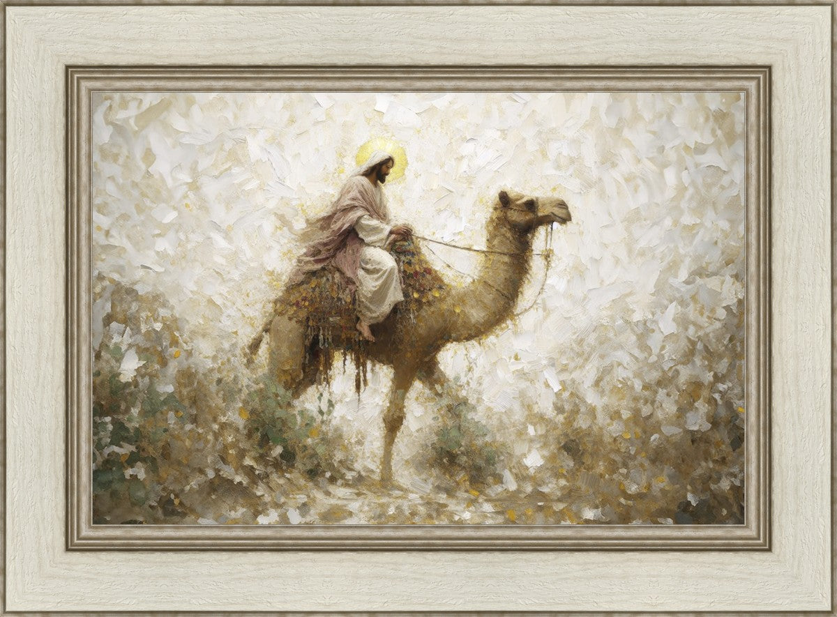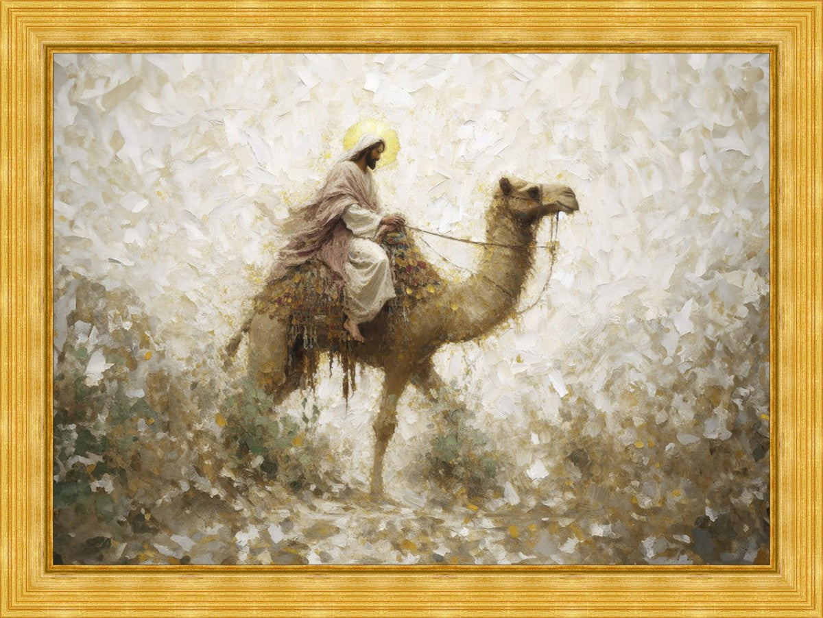 But beyond the powerful teachings and miracles, Jesus also lived a real, everyday life. He walked dusty roads, shared meals with friends, and, who knows? Maybe He even hitched a ride on a camel now and then. This piece imagines one of those simple, in-between moments—a reminder that while Christ was the Son of God, He also experienced the ordinary, just like us.