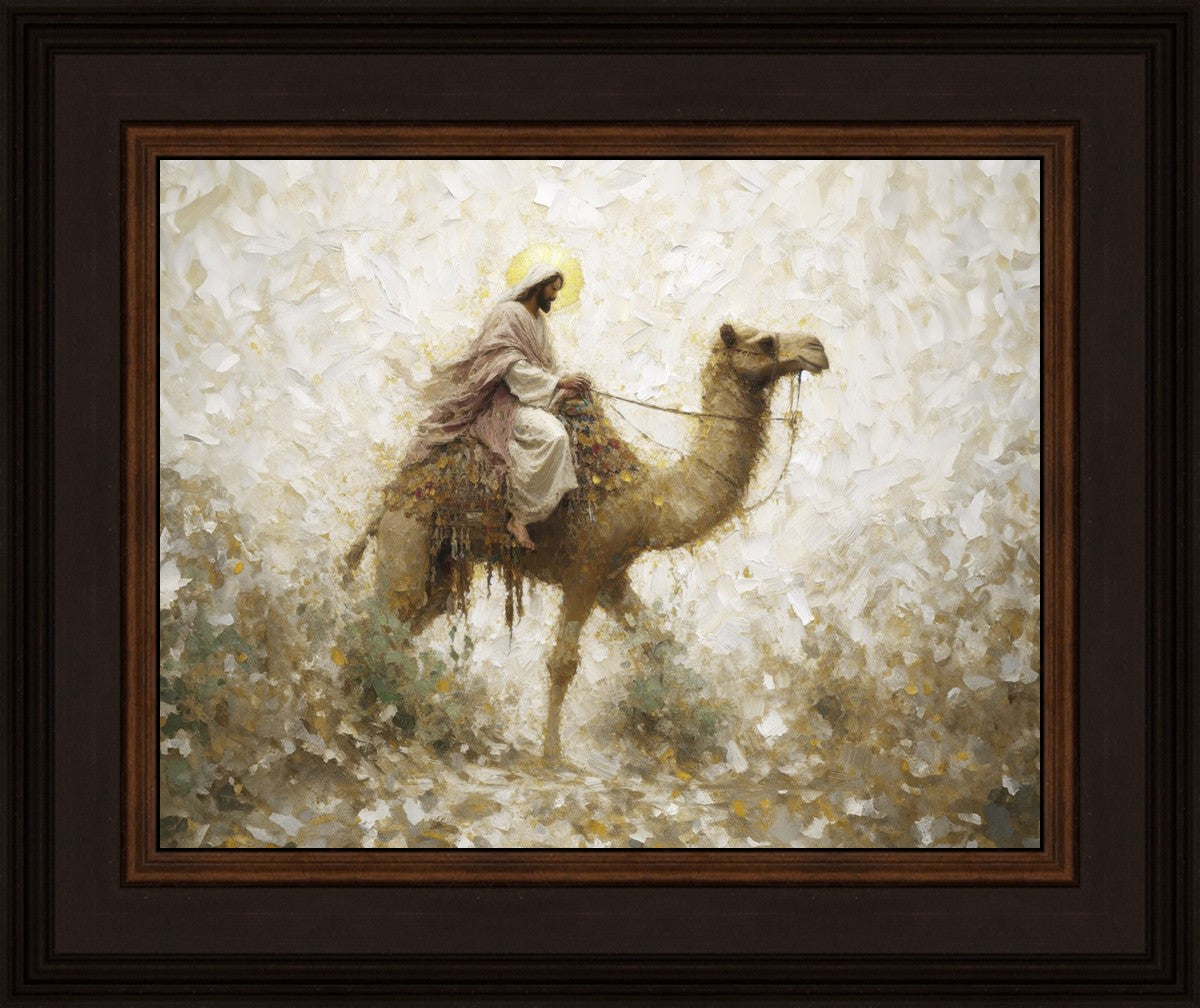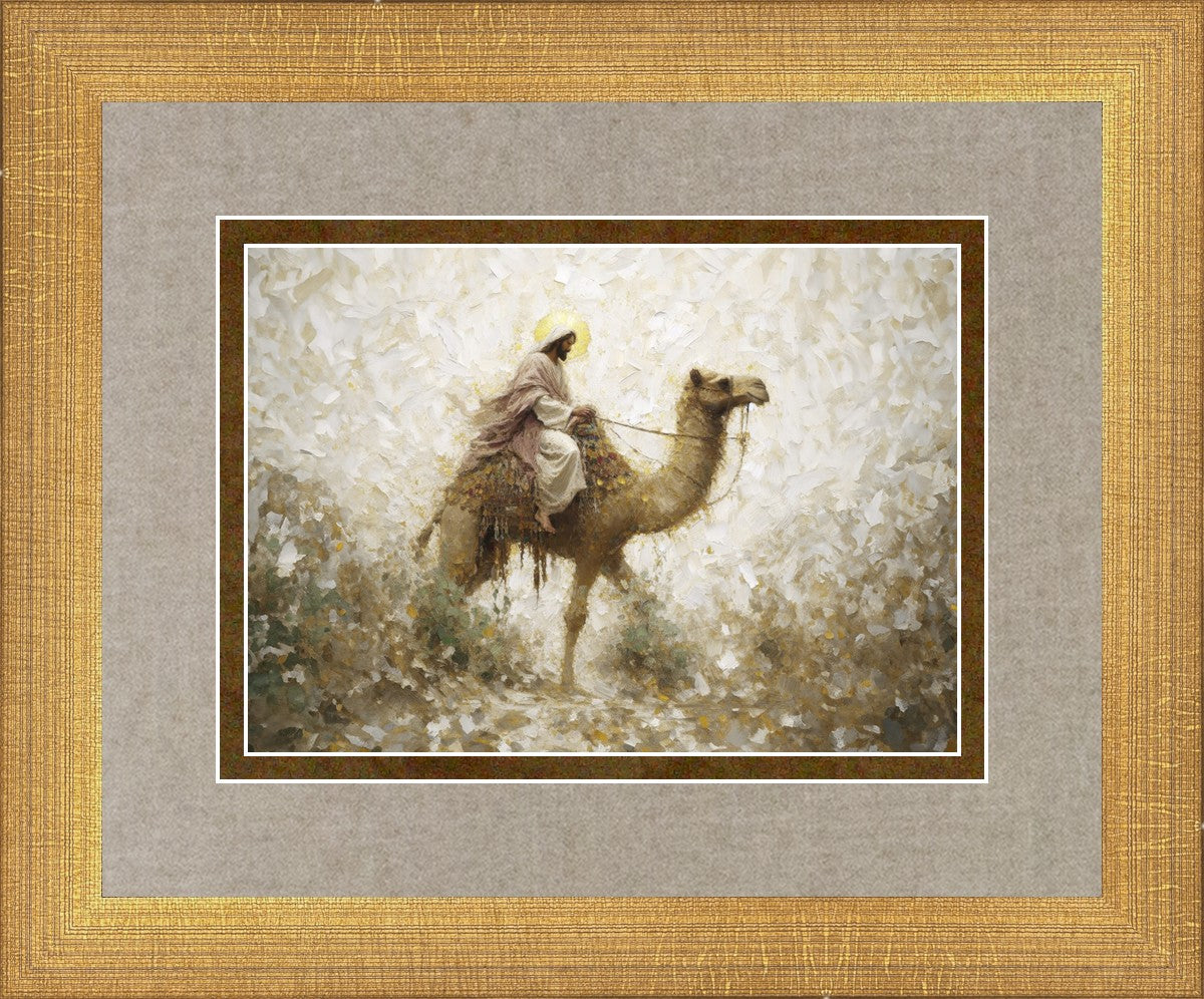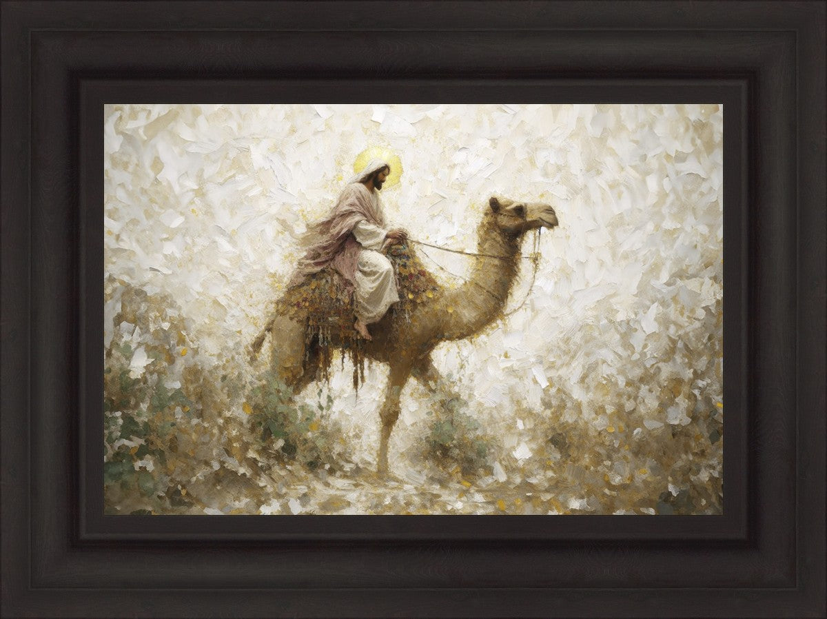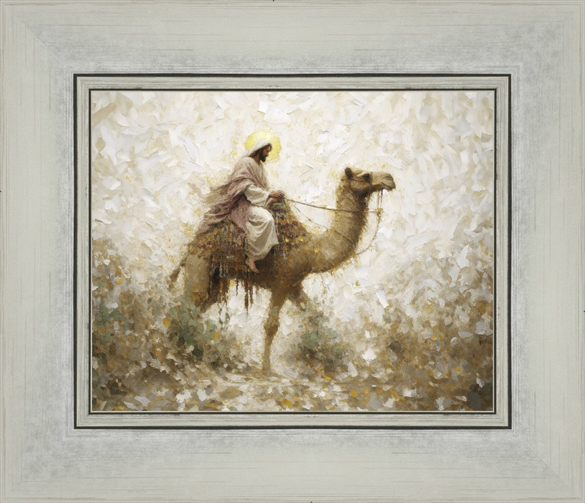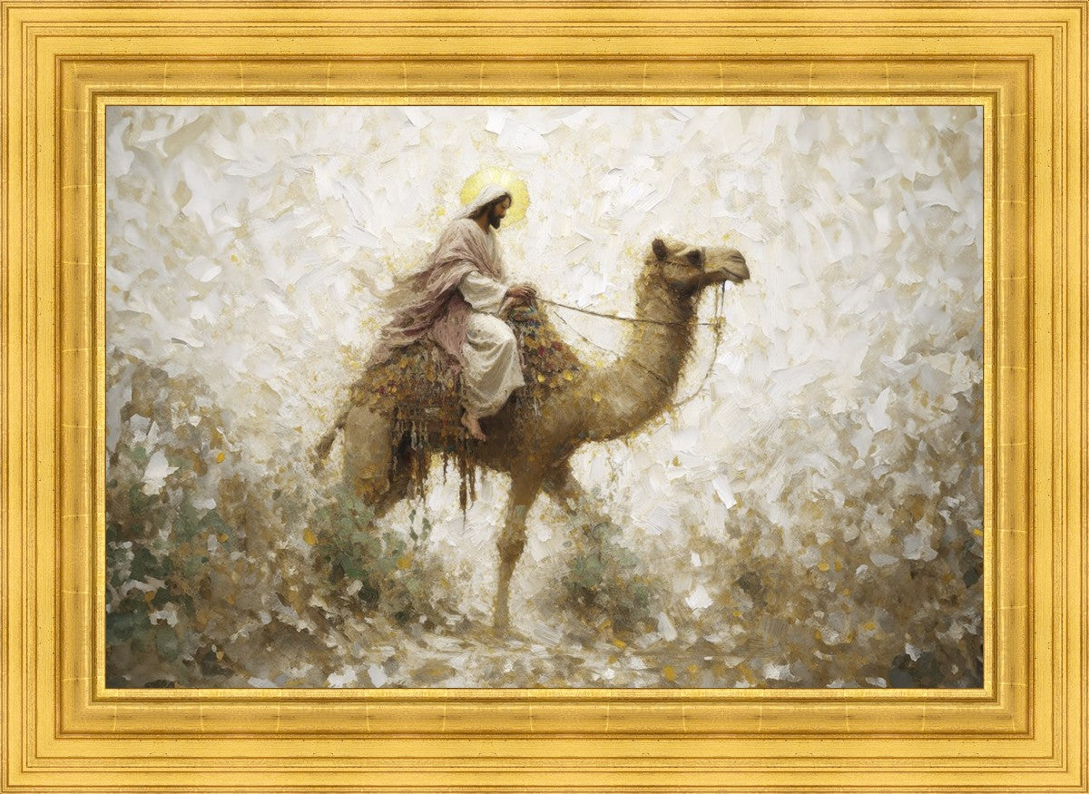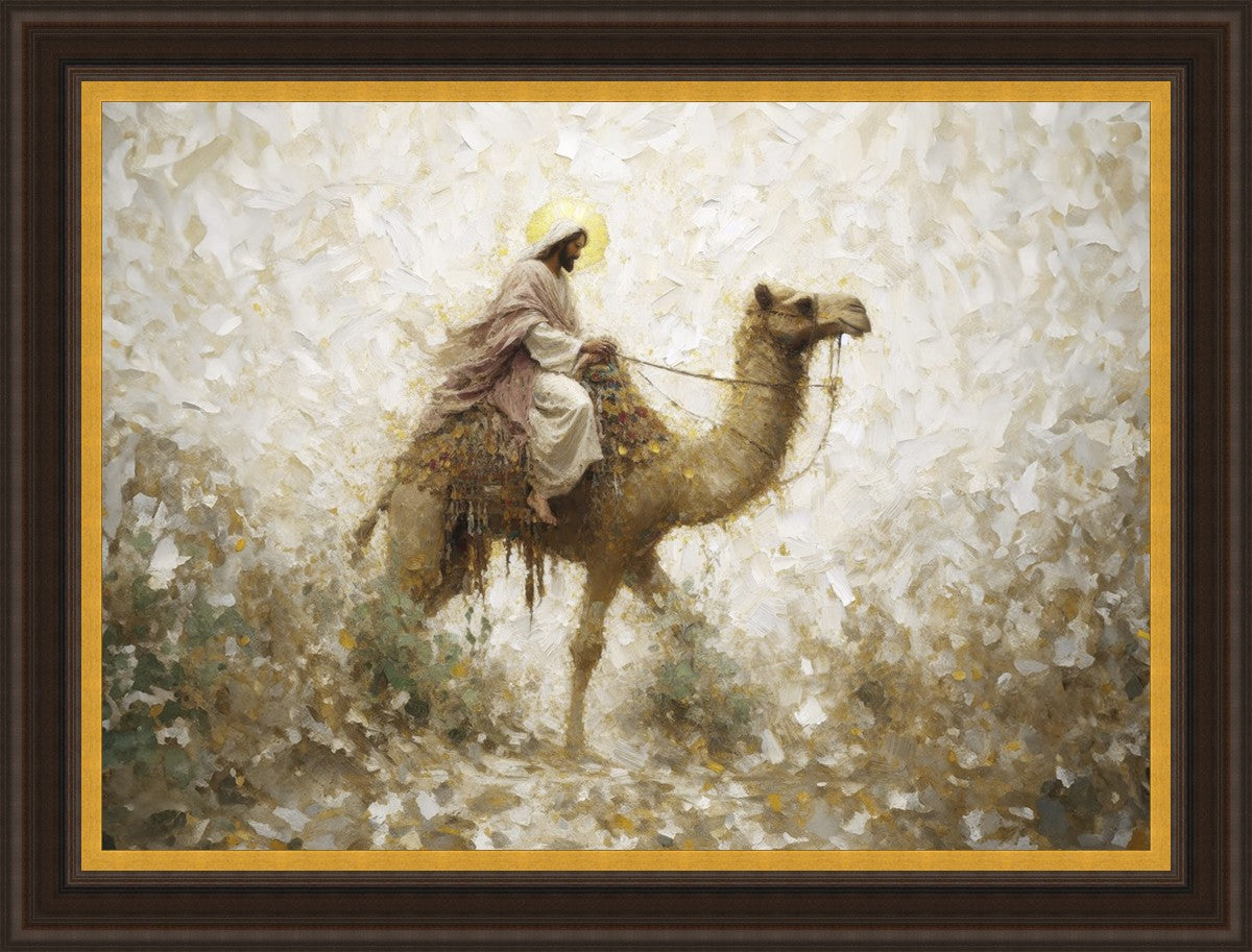 But beyond the powerful teachings and miracles, Jesus also lived a real, everyday life. He walked dusty roads, shared meals with friends, and, who knows? Maybe He even hitched a ride on a camel now and then. This piece imagines one of those simple, in-between moments—a reminder that while Christ was the Son of God, He also experienced the ordinary, just like us.