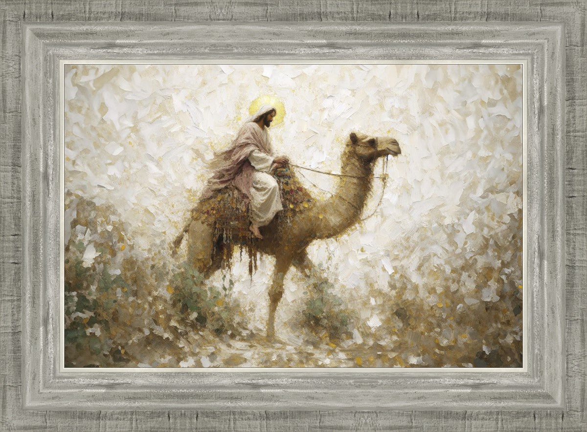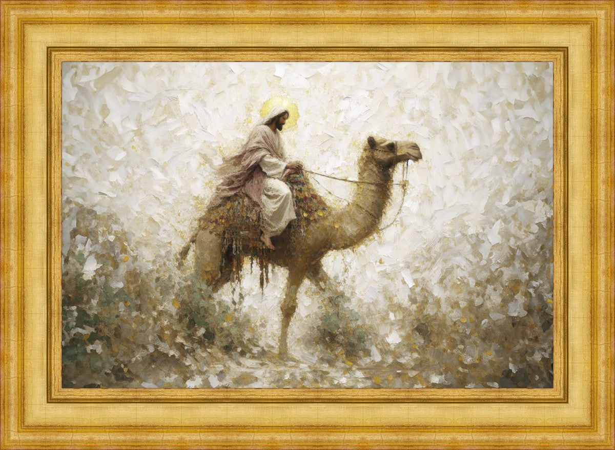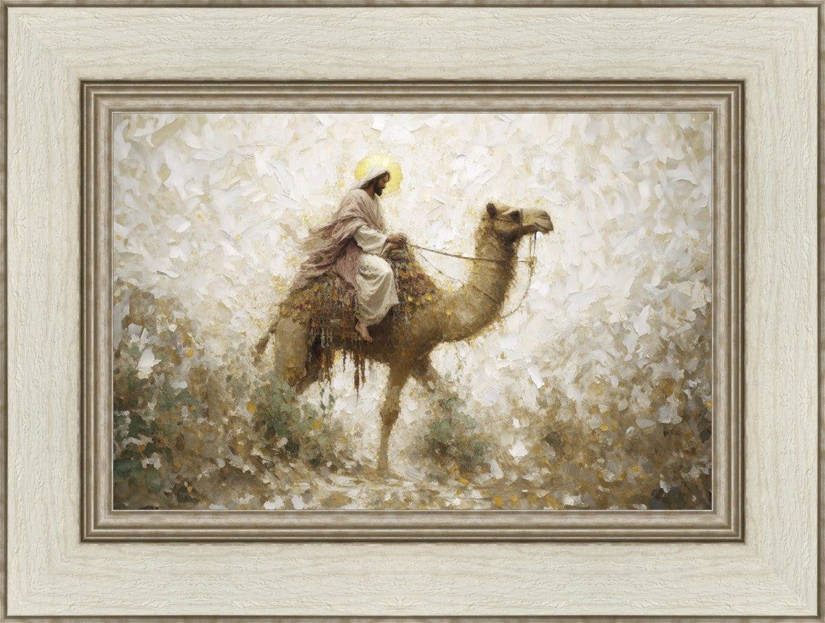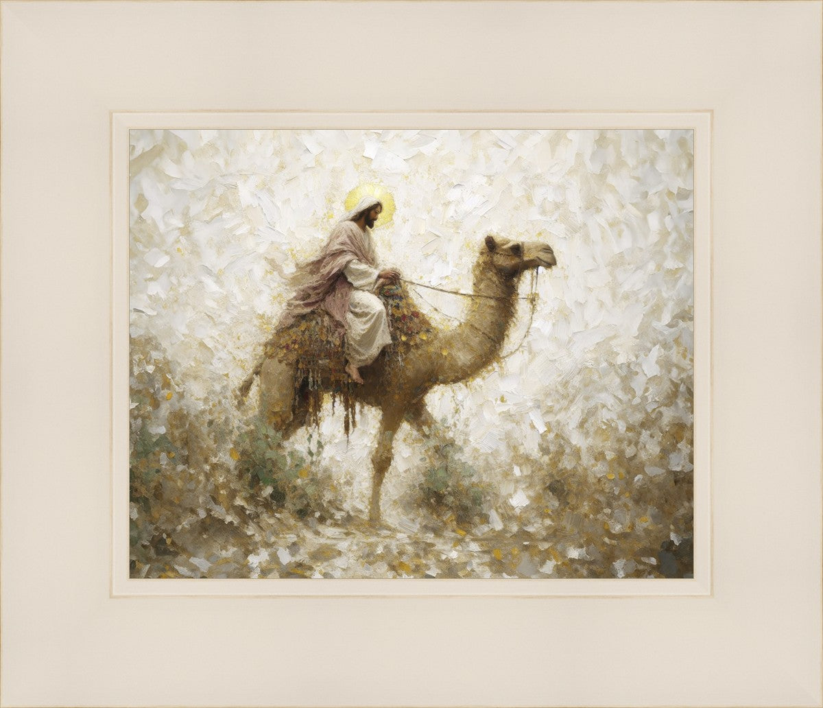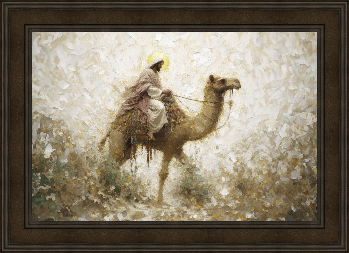 But beyond the powerful teachings and miracles, Jesus also lived a real, everyday life. He walked dusty roads, shared meals with friends, and, who knows? Maybe He even hitched a ride on a camel now and then. This piece imagines one of those simple, in-between moments—a reminder that while Christ was the Son of God, He also experienced the ordinary, just like us.