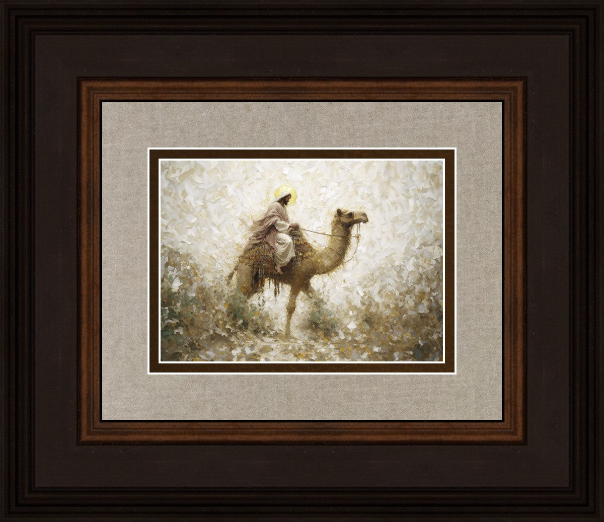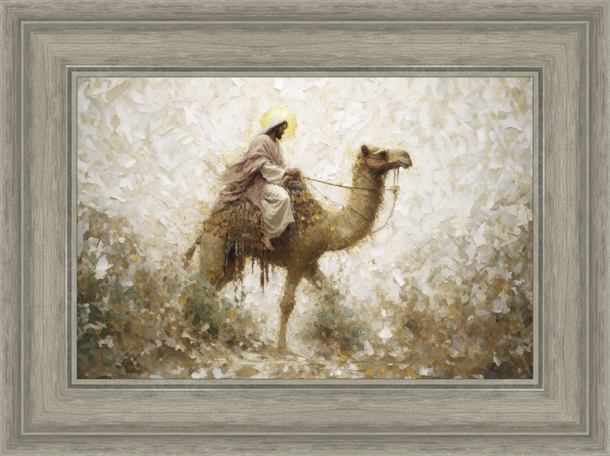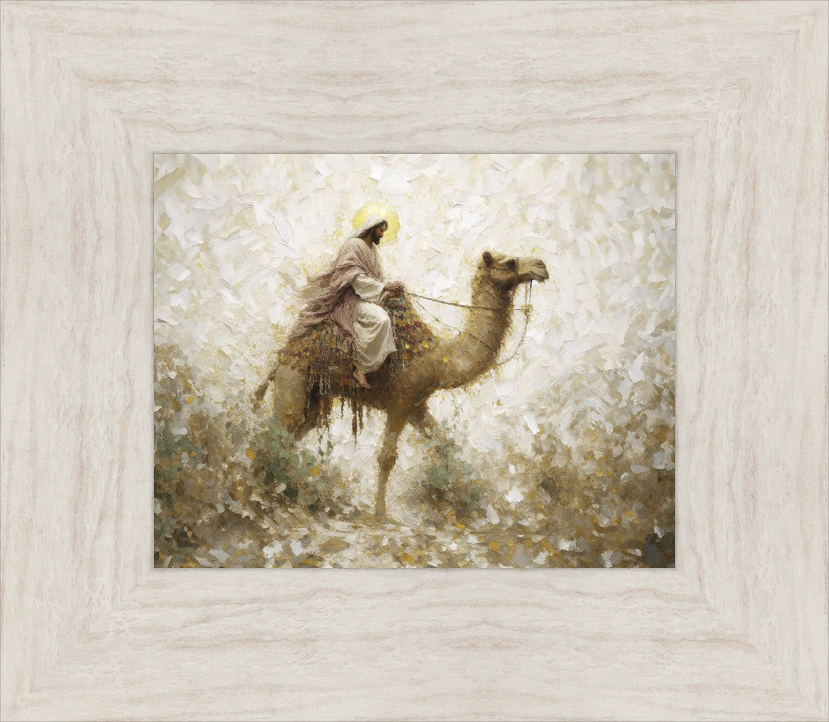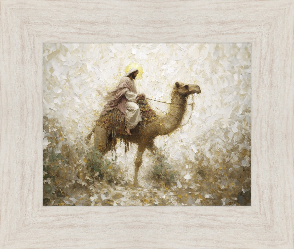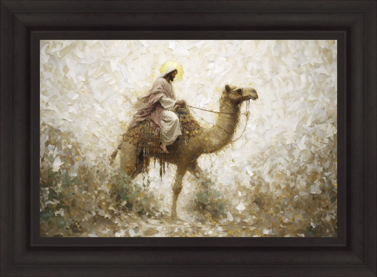 But beyond the powerful teachings and miracles, Jesus also lived a real, everyday life. He walked dusty roads, shared meals with friends, and, who knows? Maybe He even hitched a ride on a camel now and then. This piece imagines one of those simple, in-between moments—a reminder that while Christ was the Son of God, He also experienced the ordinary, just like us.