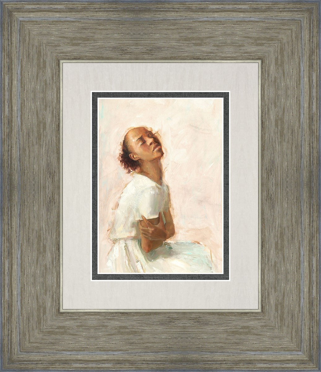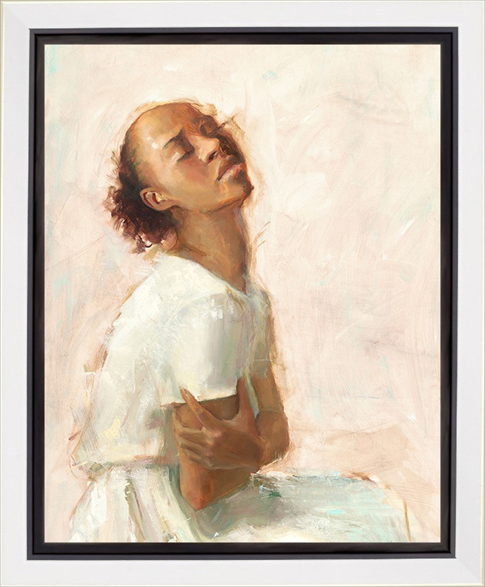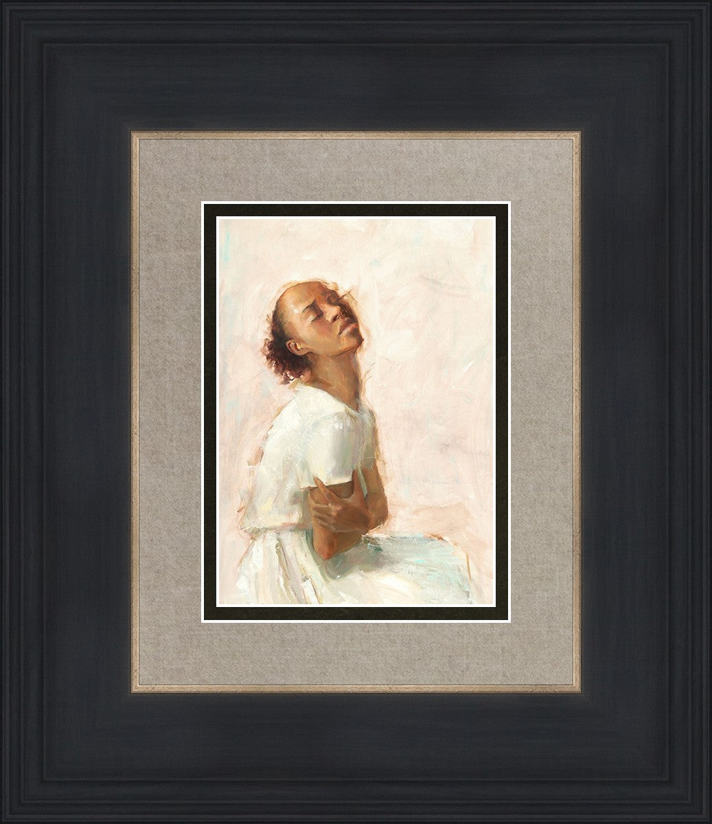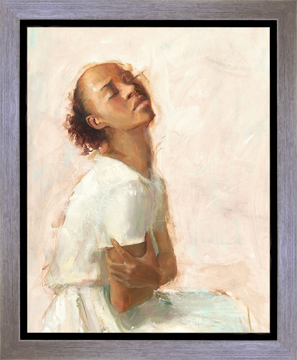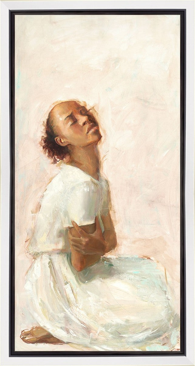 This painting came about while I was struggling to feel adequate. I wanted to be a better person to be closer to my parents in heaven. My inadequacies were acutely painful and paralyzing. I often felt that I was drifting further from heaven, tossed in the sea of my own ineptitude. I set out to make a painting to process this experience. This painting was my prayer to realize a closer relationship with Heavenly Parents and to become more like them. Over time, I felt closer to them and the sharpness of the pain dulled. This relief found its way into the facial expression of the subject. Originally the painting was about the struggle and pain of this experience but I decided to keep a more peaceful face. It mirrored my experience of gaining calm and quiet in the process of drawing closer to Heavenly Mother and Father. Though I still feel inadequate some days, a closer relationship with my Heavenly Parents has taken immobilizing self-doubt and turned it into a more productive and healthy discipleship.