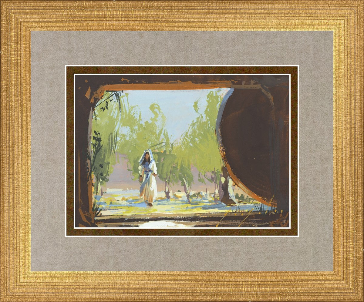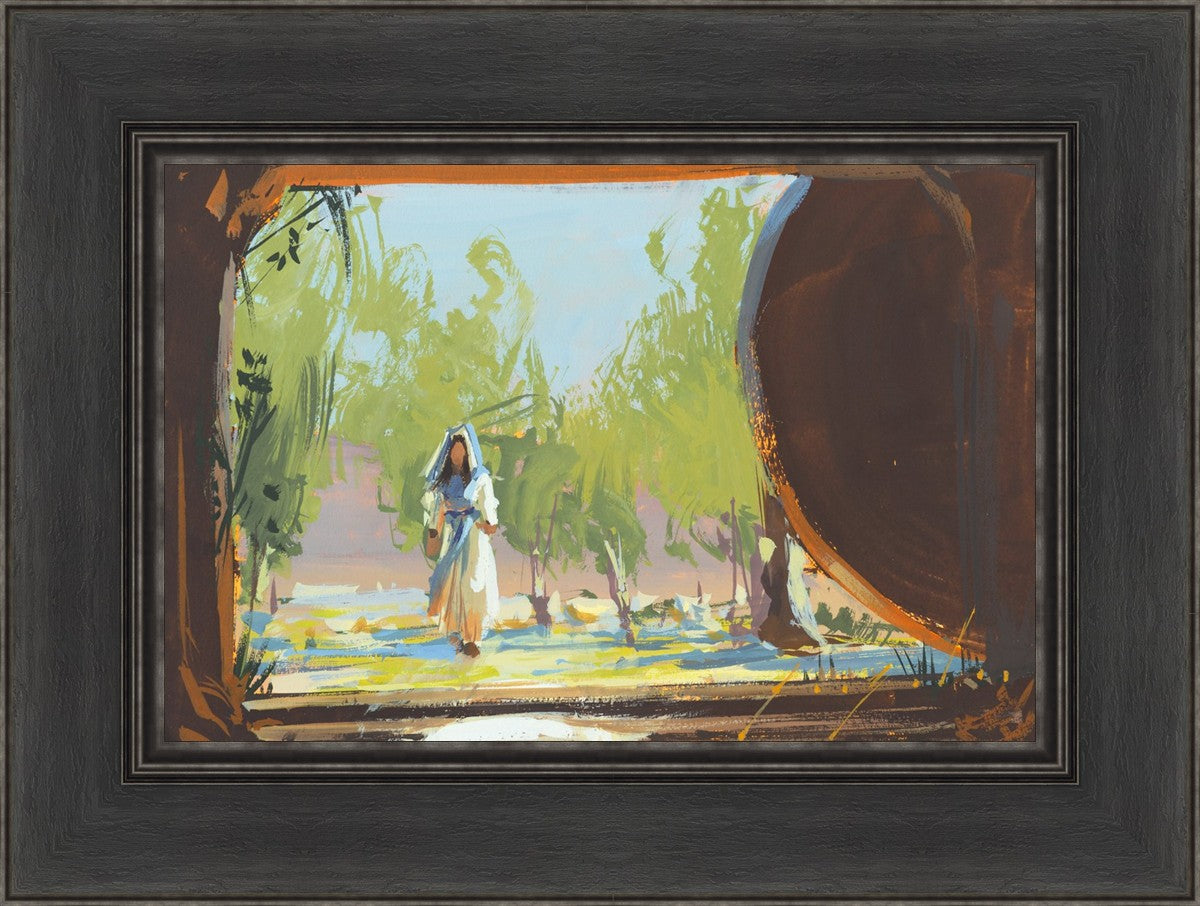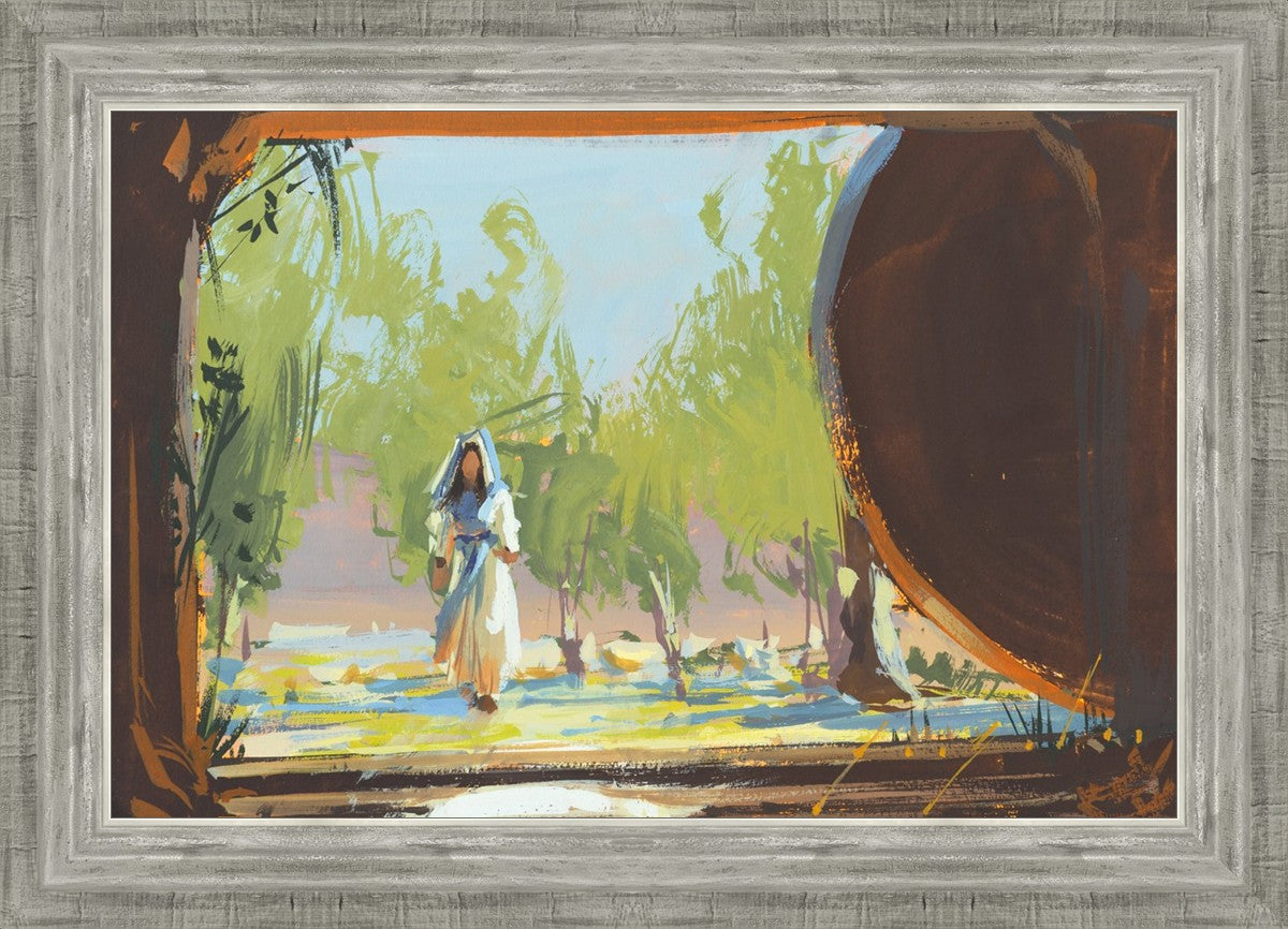 This is when Mary Magdalene approached the empty tomb where Christ was buried and where she found his body not there. This is moments before she knew that. She sees the stone rolled away and perhaps is starting to feel some anxiety that something is wrong. This story is so beautiful. As far as we know, she was the first to see the risen Lord.