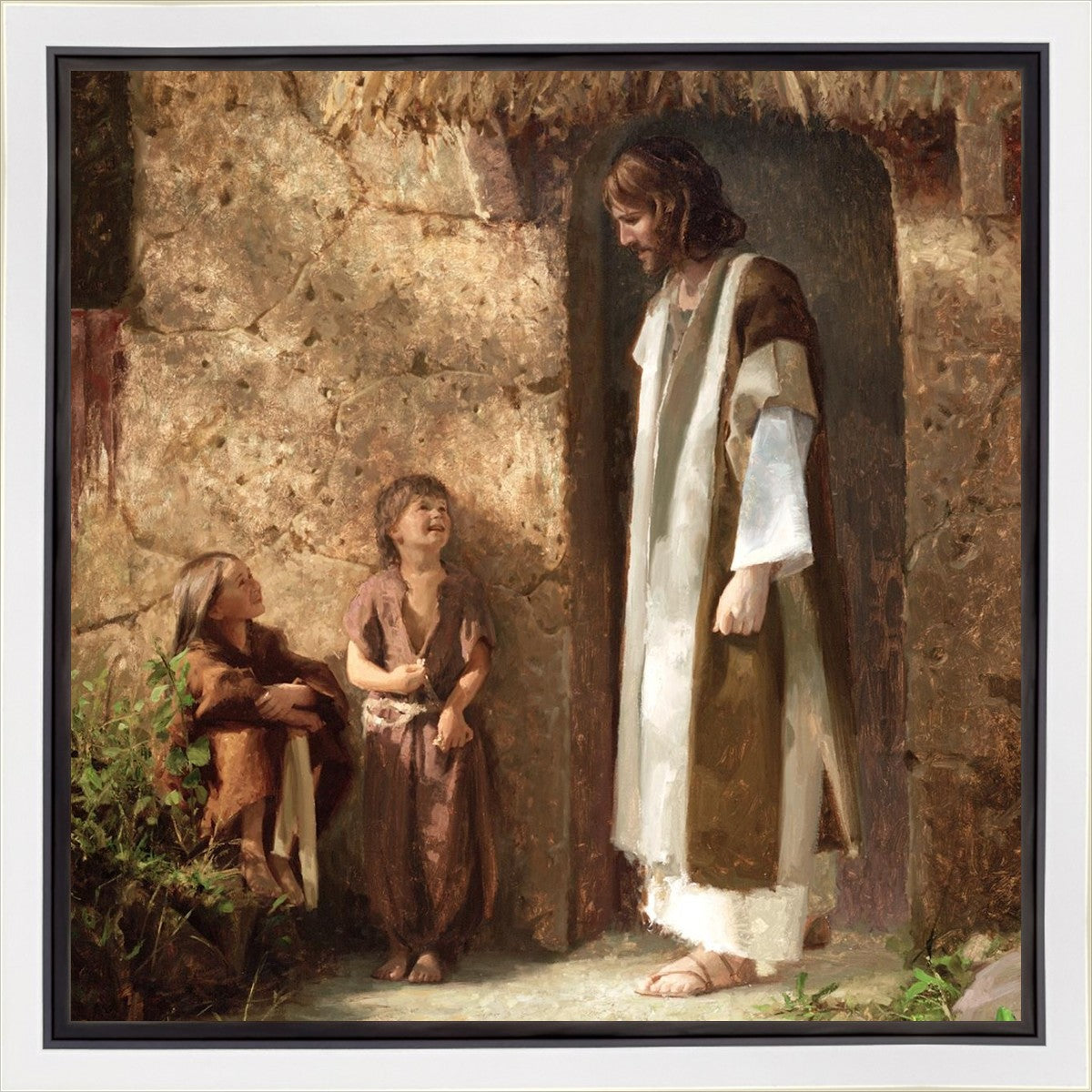 I purchased this portrait not realizing how beauiful it actually is until I opened the package that was delivered. Among several other paintings and artistic prints I have this portrait mounted on the wall in the room that I sleep in. The frame adds an exquisite touch to the painting. The contrast and comparison of natural browns with incoming light is beautiful and cannot be captured accurately unless seeing this painting up close. Teaching children in both religious and secular settings for much of my life this painting captures a truth that I have always recognized. It is children who recognize the presense and spirit of the Savior more than anyone else, and this painting illustrates that truth. I have purchased many pieces of artwork for my home over the years, and this is probably one of my most beautiful representations of the Savior and Children. Thank you for such a lovely and careful attention to detail that this painting represents. One of the best art investments I've made thus far it truly is worth much more than what is being asked as a purchase price.