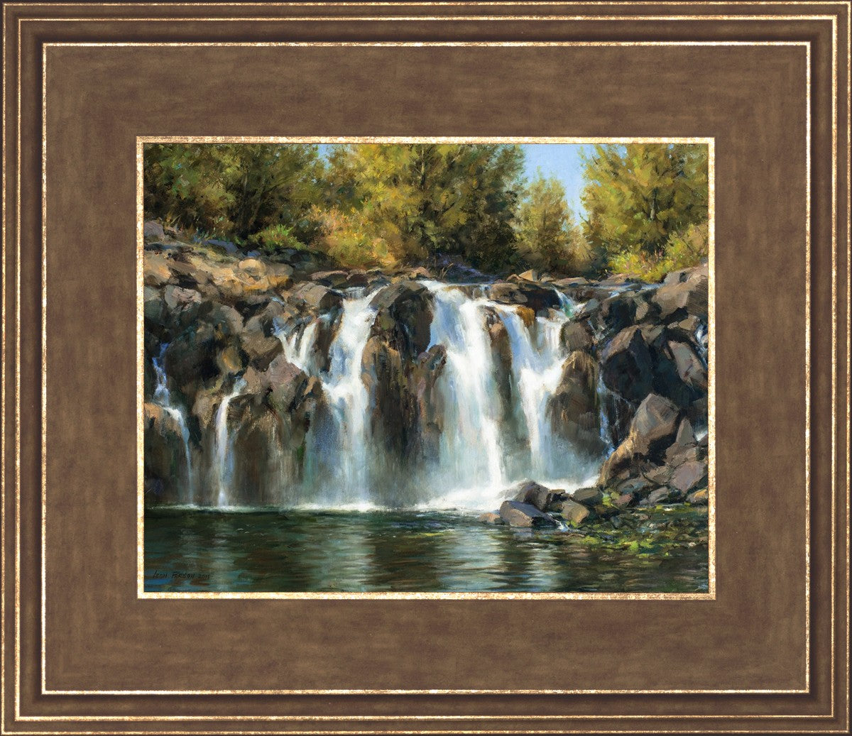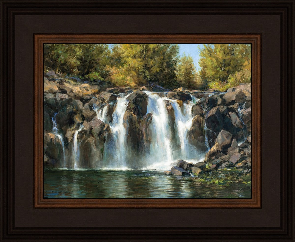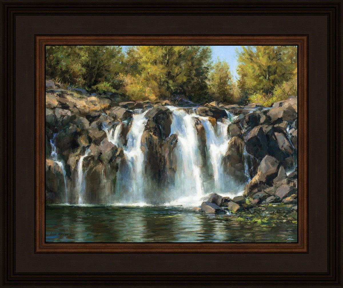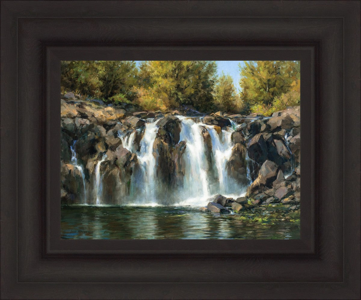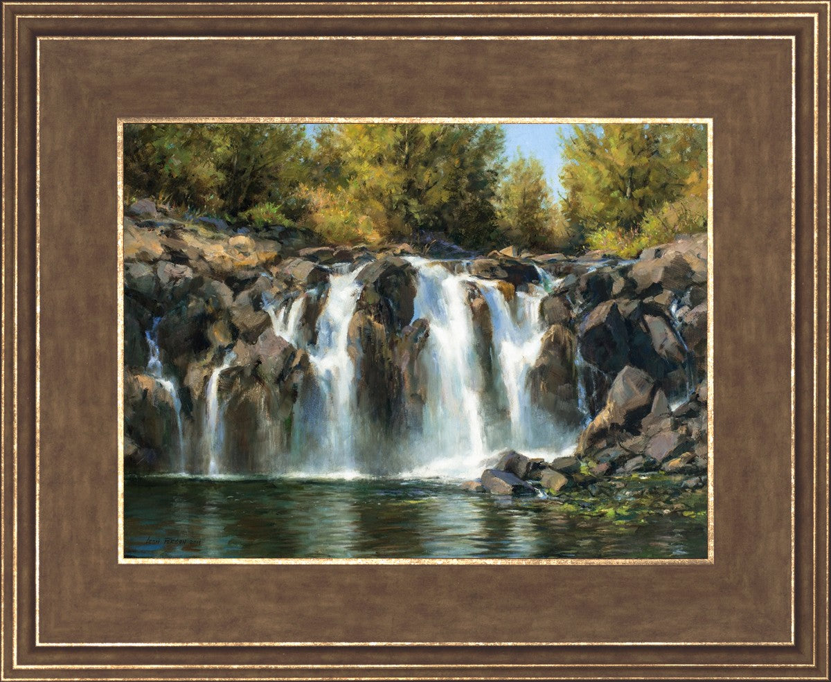 Waterfalls to me are both paradoxical and magical at the same time. I love the mesmerizing continuous, movement as if alive – yet it truth it is falling, pounding water. The waterfall is called Monkey Rock and is found just north of Teton Idaho and flows from there into the Teton River. This painting was started as a demo in my BYUI landscape class using a 9”x12” plein air painting as a basis then finished later at home in my studio.