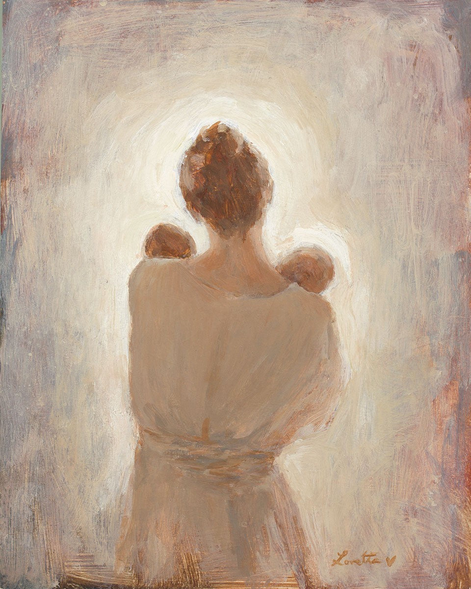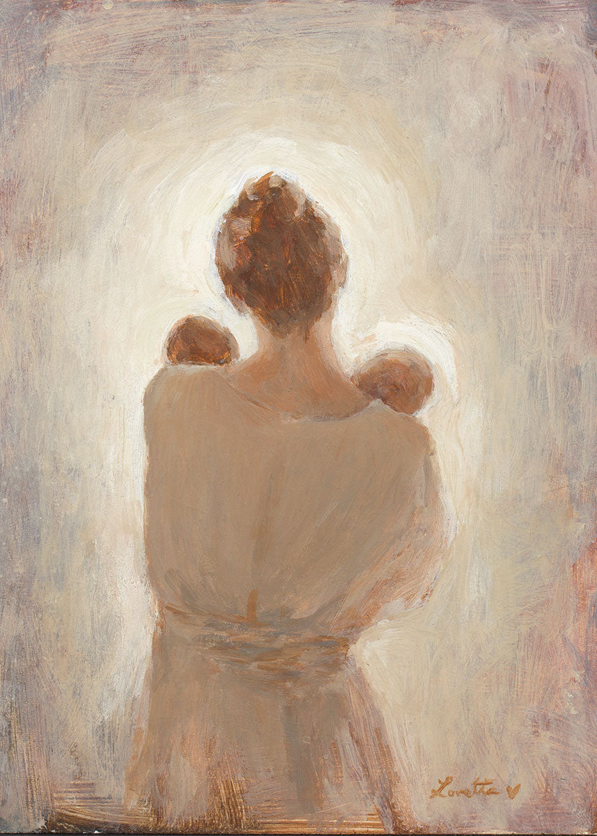 Lovetta Reyes-Cairo is an artist and mother working from her home studio in Utah. Her work often includes the human figure and explores ideas of motherhood, spirituality, and love.