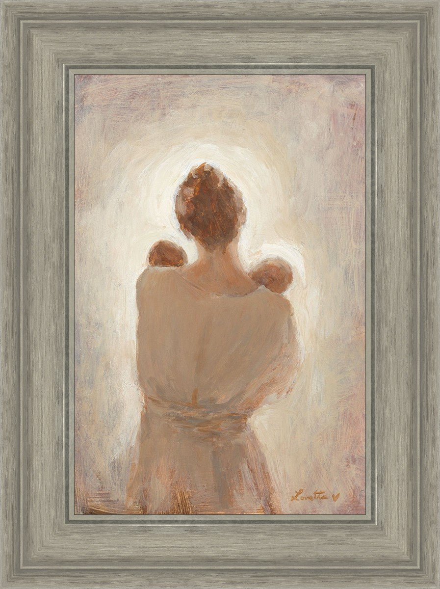 Two Little Loves" by Lovetta Reyes Cairo is a heartwarming painting portraying a mother holding her newborn twins against a soft pink background. This captivating artwork captures the beauty of motherhood and the bond between parent and child, making it perfect for nurseries and spaces celebrating the joy of new life. Immerse yourself in the tender embrace depicted in this artwork, ideal for those seeking inspiration and comfort in the journey of parenthood.