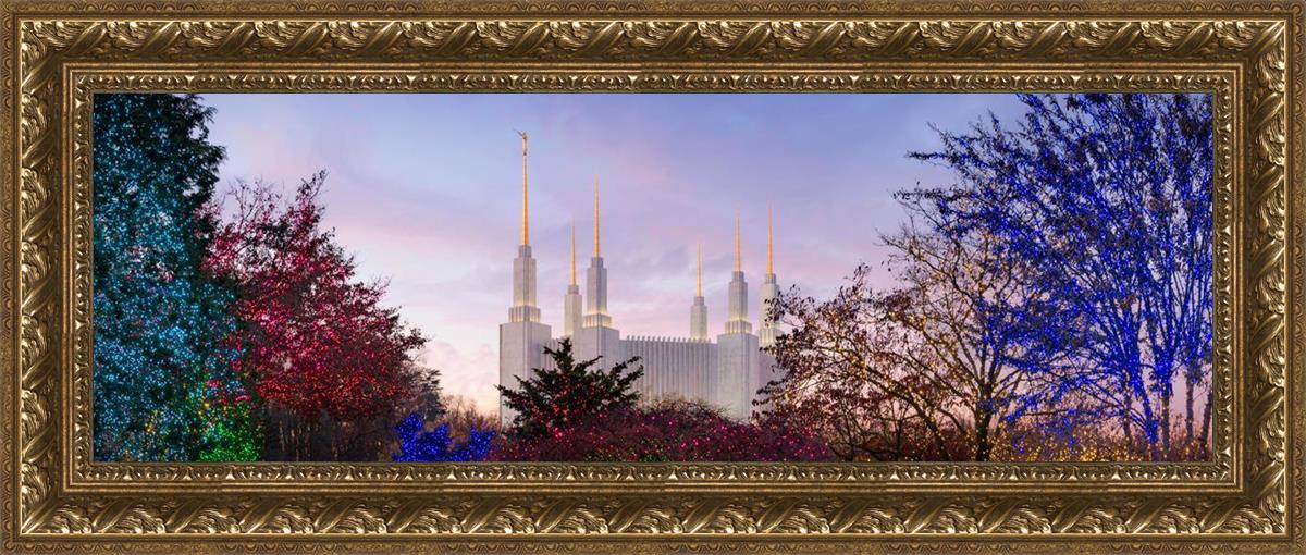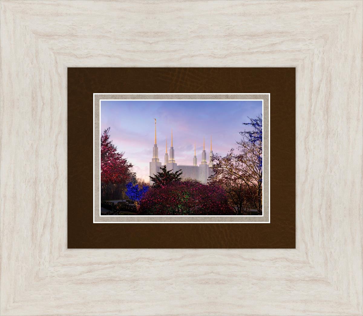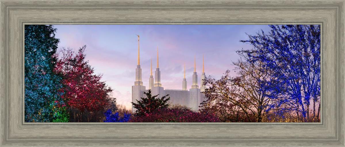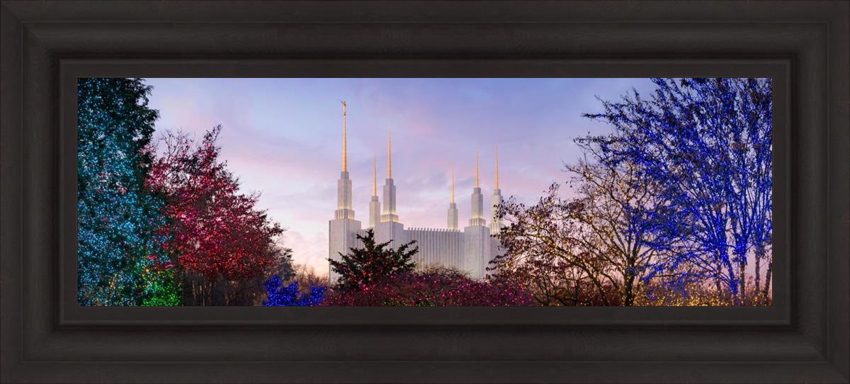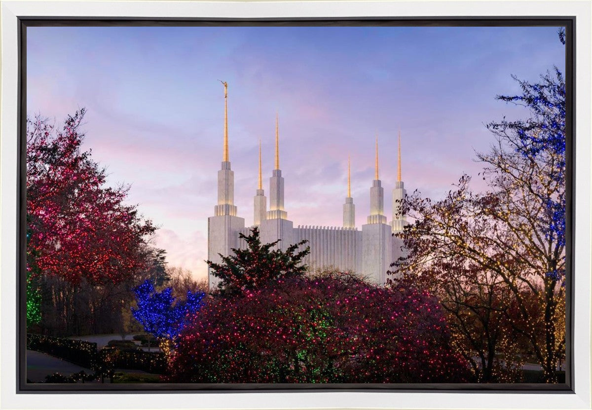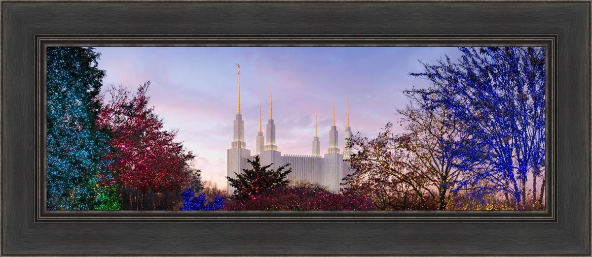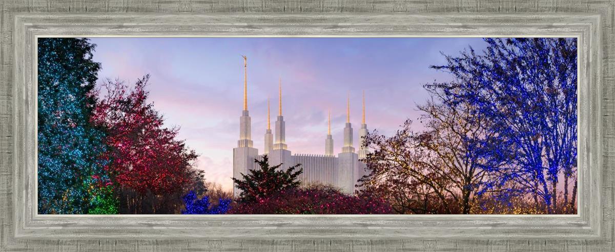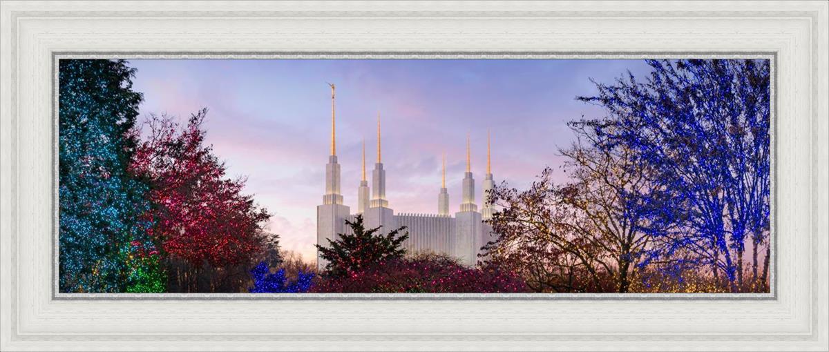 Morning sunrise with the Christmas lights at the Washington DC Temple.