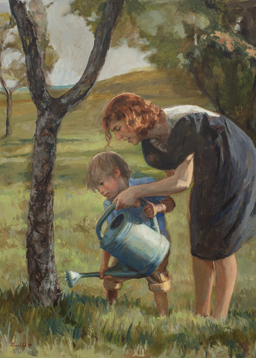 Lovetta Reyes-Cairo is an artist and mother working from her home studio in Utah. Her work often includes the human figure and explores ideas of motherhood, spirituality, and love.