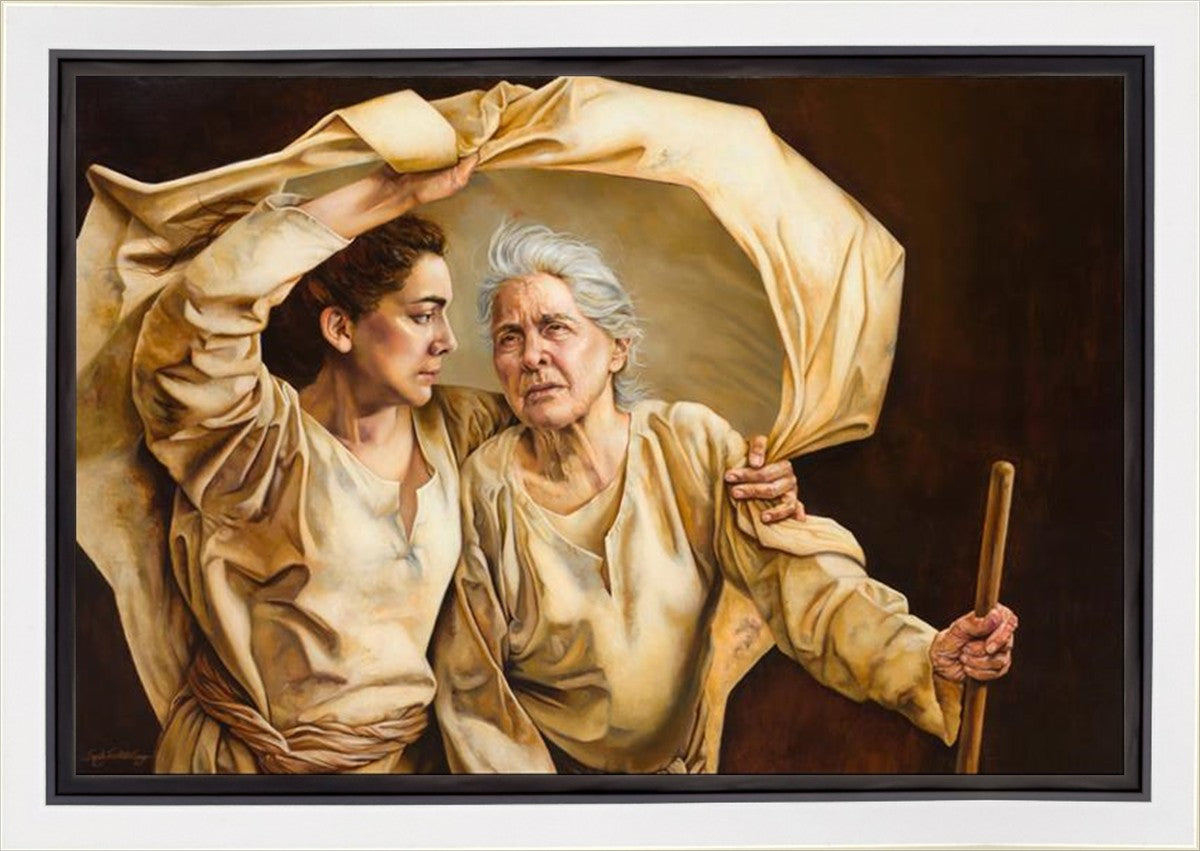 A preeminent realist painter, Sandy – as do all great masters – carries on the traditions and canons of classical art ideology practiced from the Renaissance down through 19th century. Her paintings and drawings demonstrate her virtuosity, a manifestation of unparalleled technical excellence, which result in great works of lasting beauty. Sandy’s unsurpassed knowledge of anatomy, color theory and design, facilitate her portrayal of the human condition – in all its complexities – with breathtaking elegance and mastery. Sandy’s feels privileged to paint her testimony through her love of the scriptures, and passion for religious figurative painting.